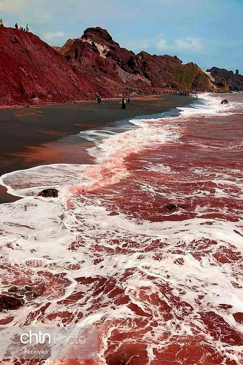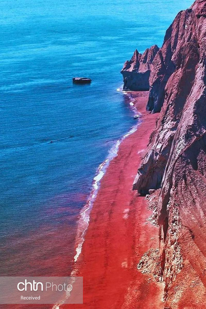 رنگ خاک این ساحل قرمز رنگ است به صورتی که موج های ساحل رخ رنگ دیده می شوند به همین دلیل به ساحل سرخ شناخته می شود.در واقع دلیل رنگ سرخ خاک های این منطقه عنصر اکسید آهن است که ۷۰ درصد خاک این منطقه را شامل می شود و باعث قرمز شدن خاک شده است.جزیره هرمز به عنوان یکی از بزرگترین معادن خاک سرخ دنیا شناخته می شود که تخمین زده شده است.