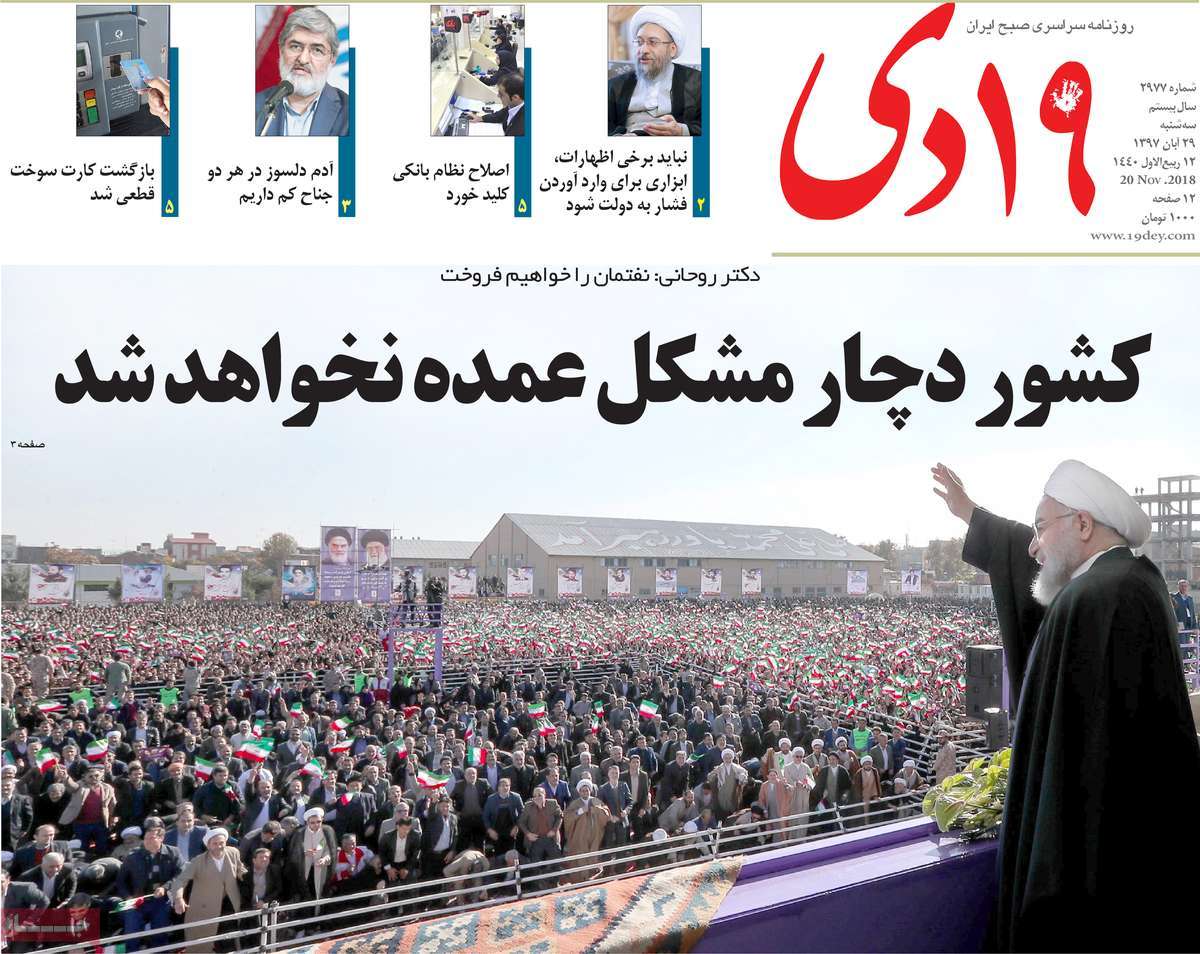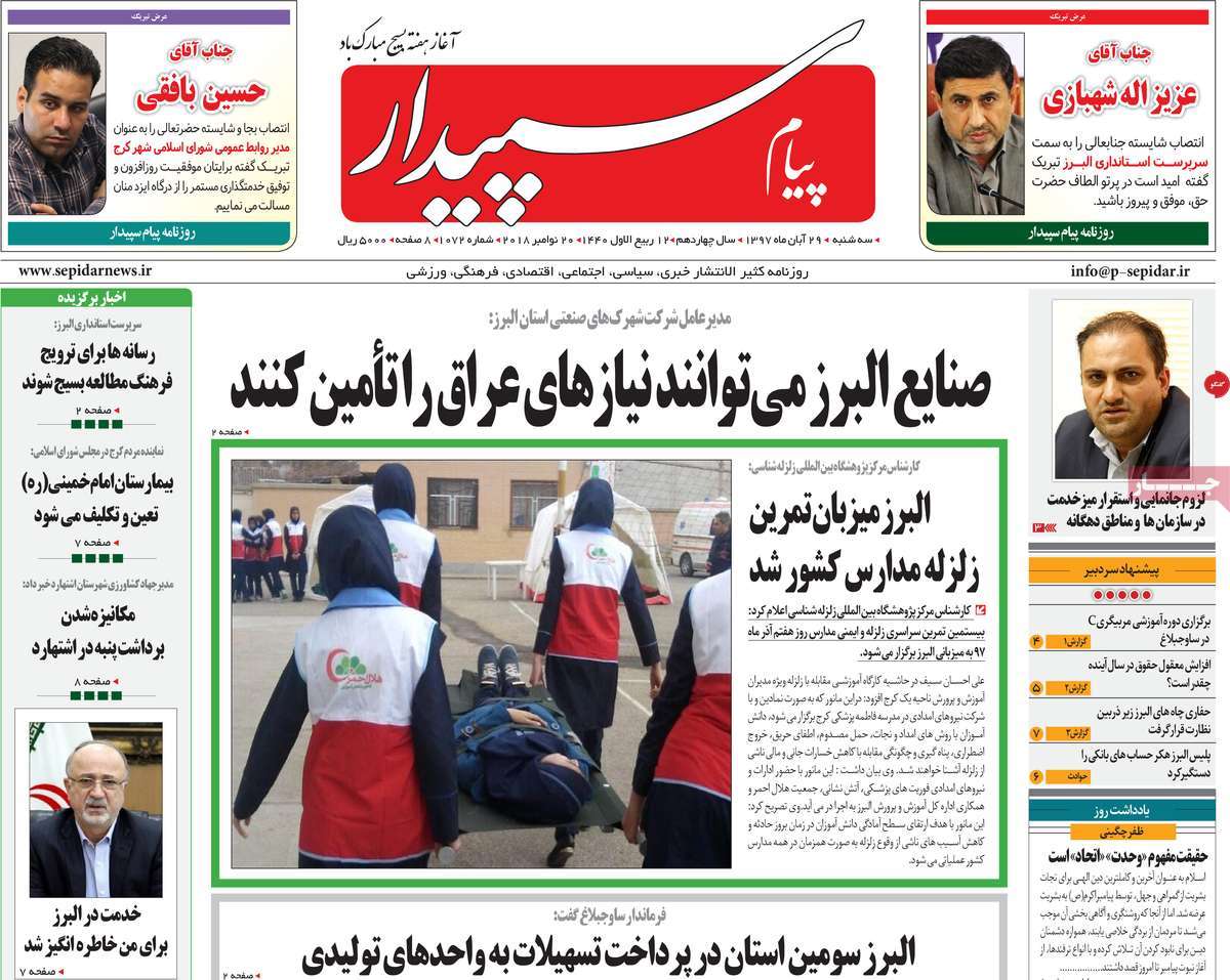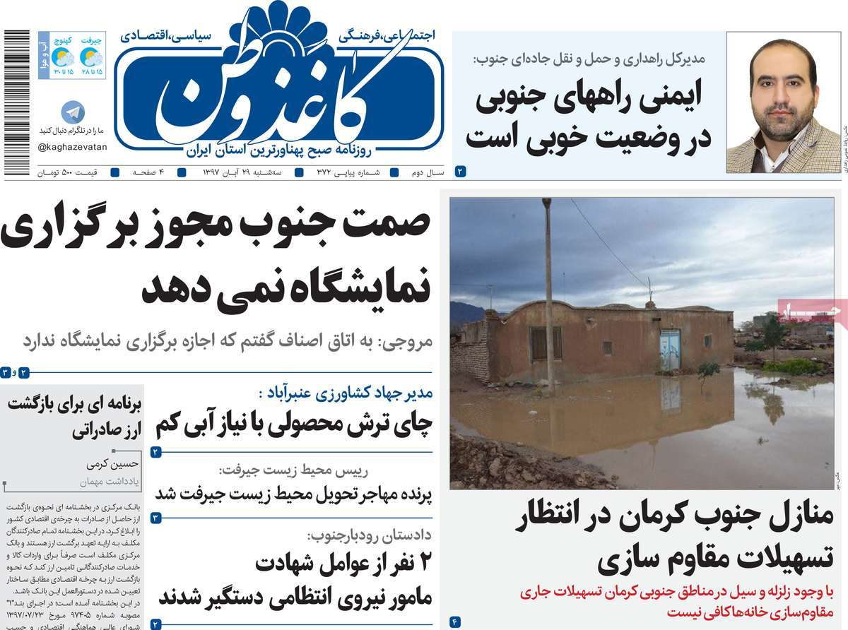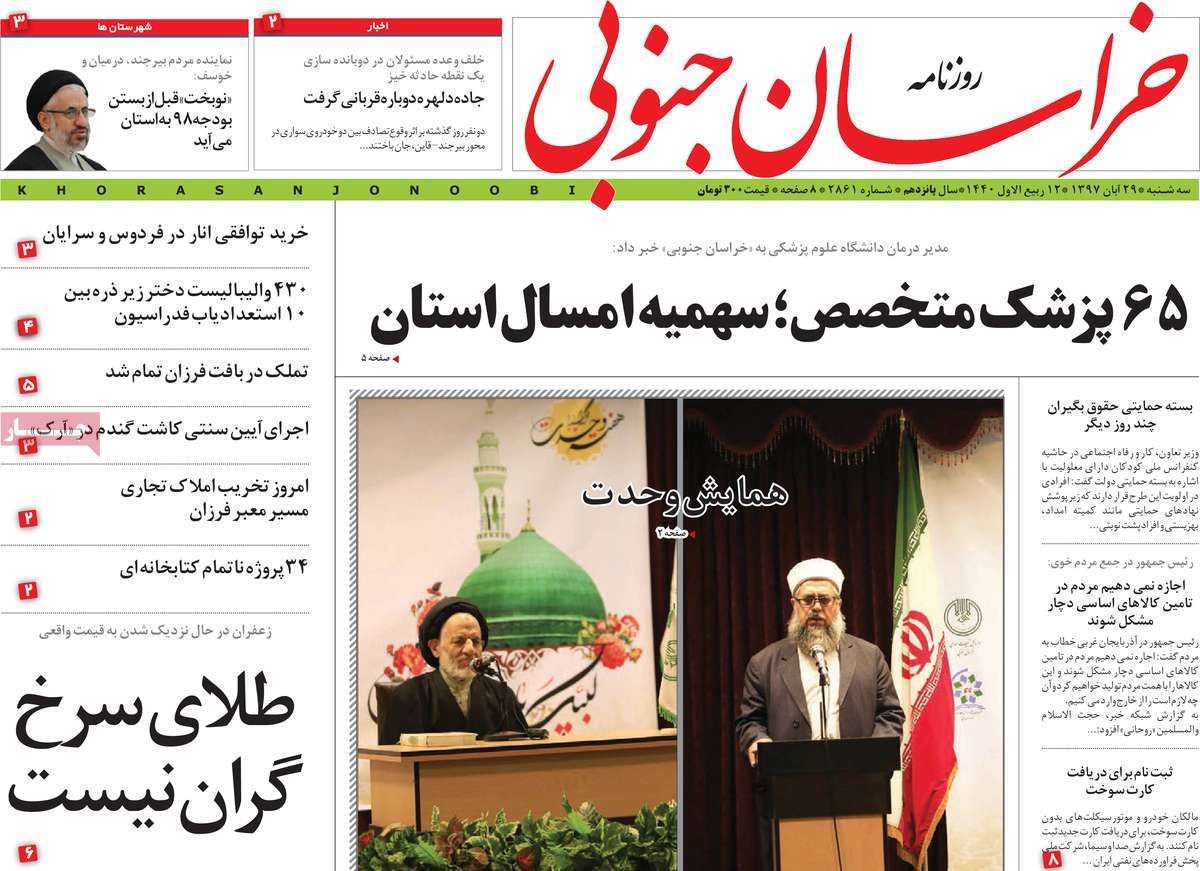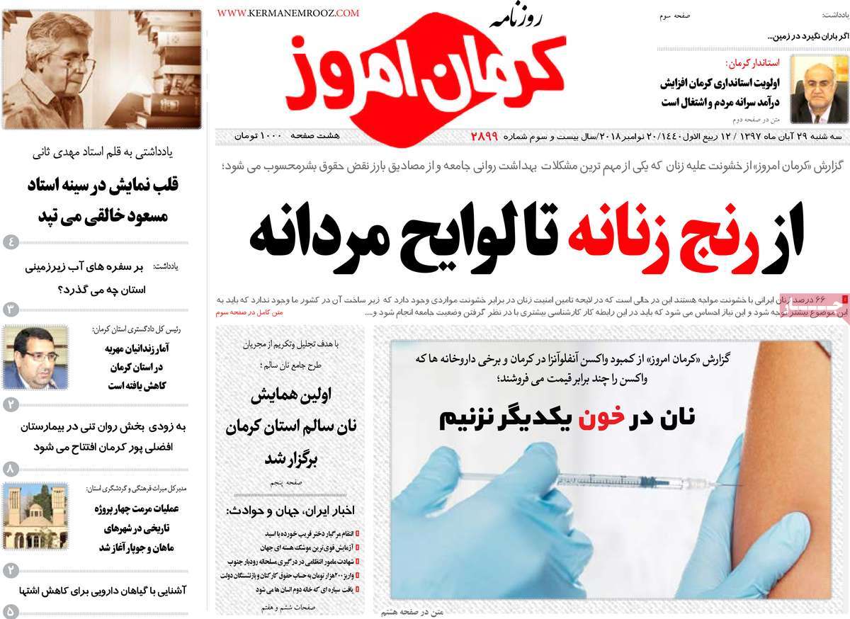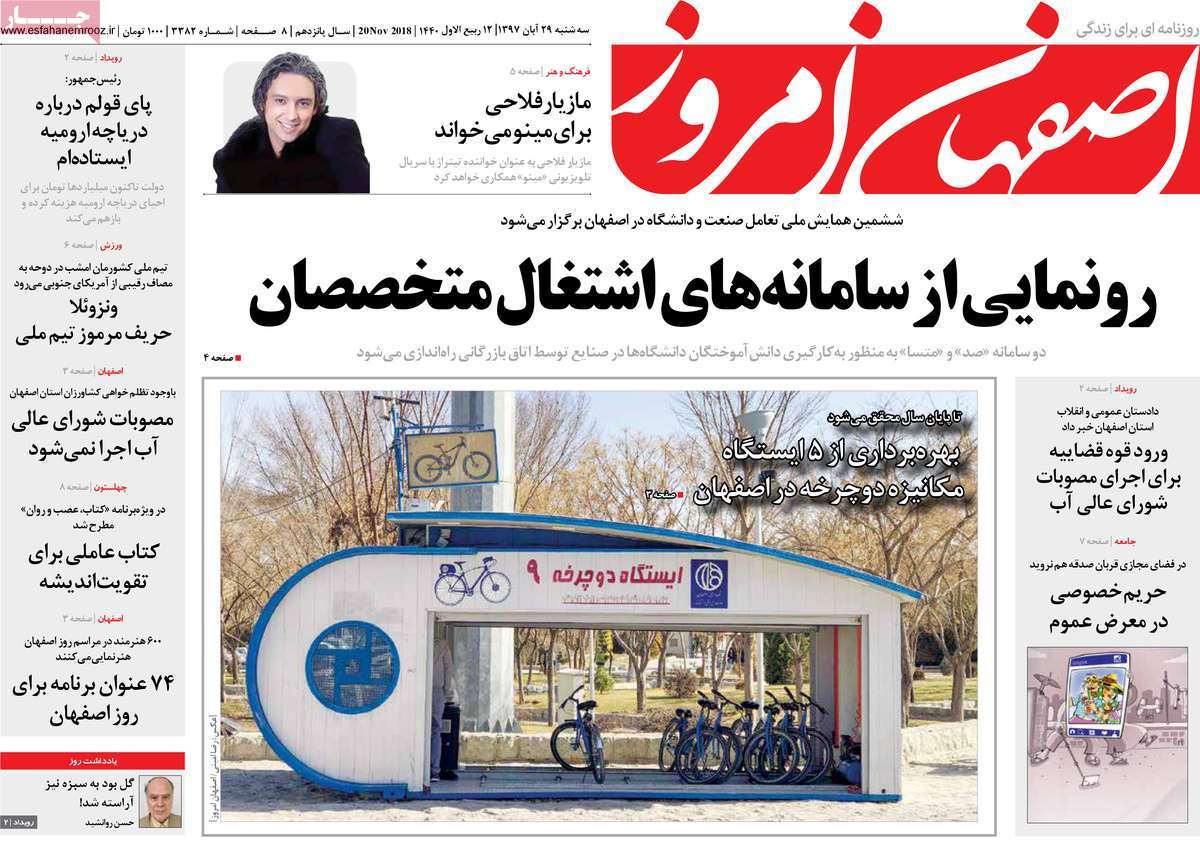 صفحه اول روزنامه های کشوری و استانی؛ سه شنبه 29 آبان ماه 1397 /تصاویر