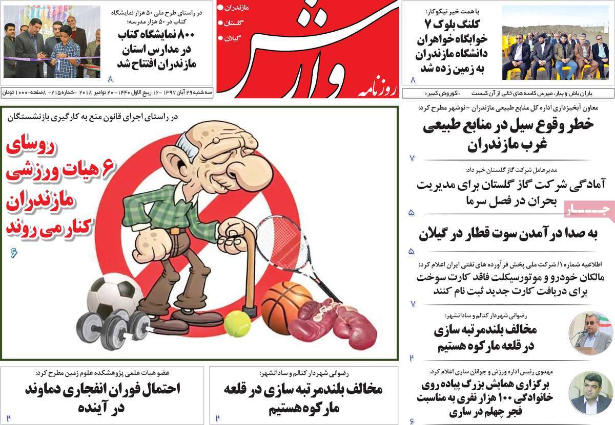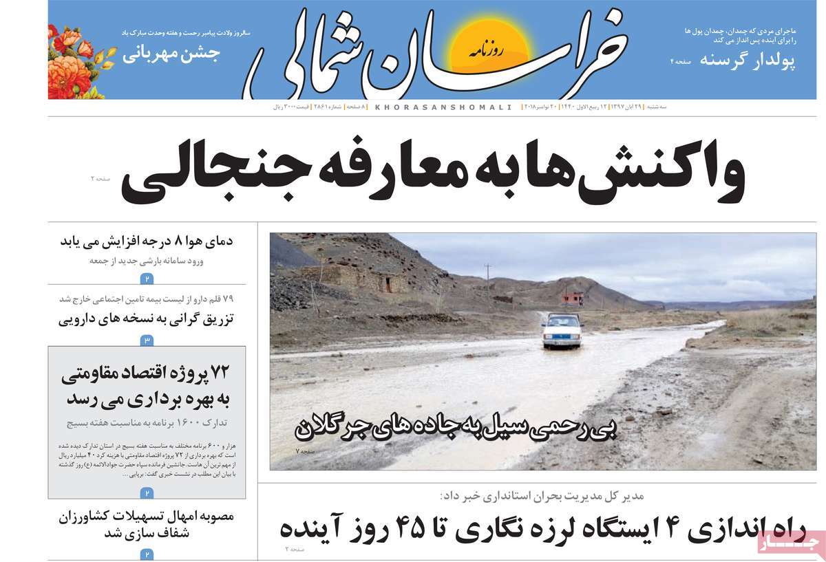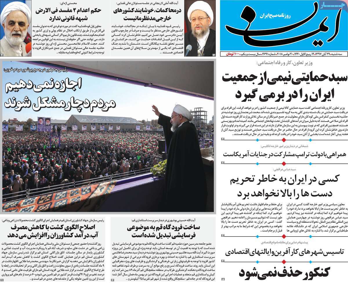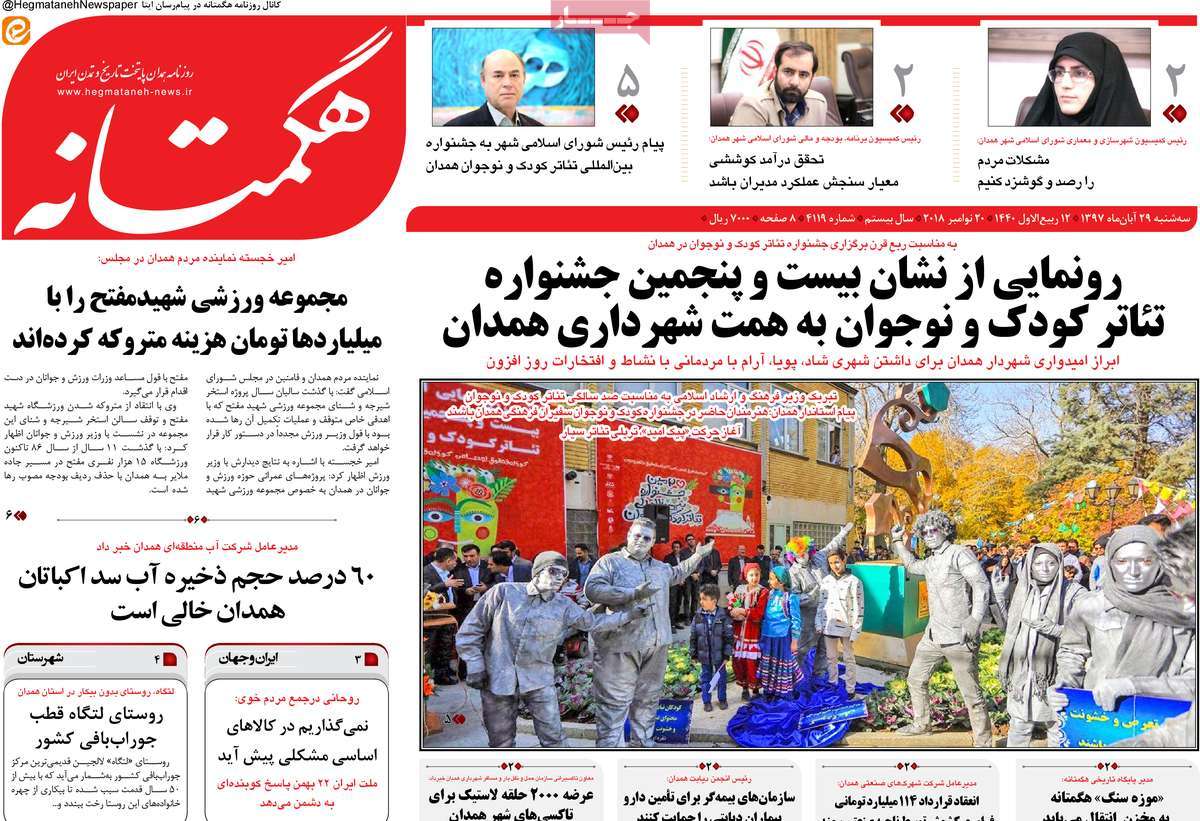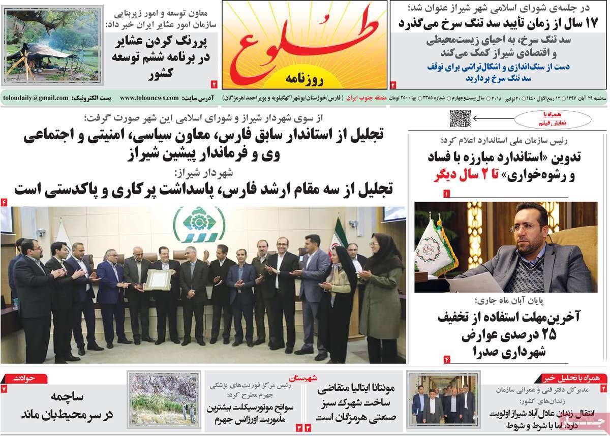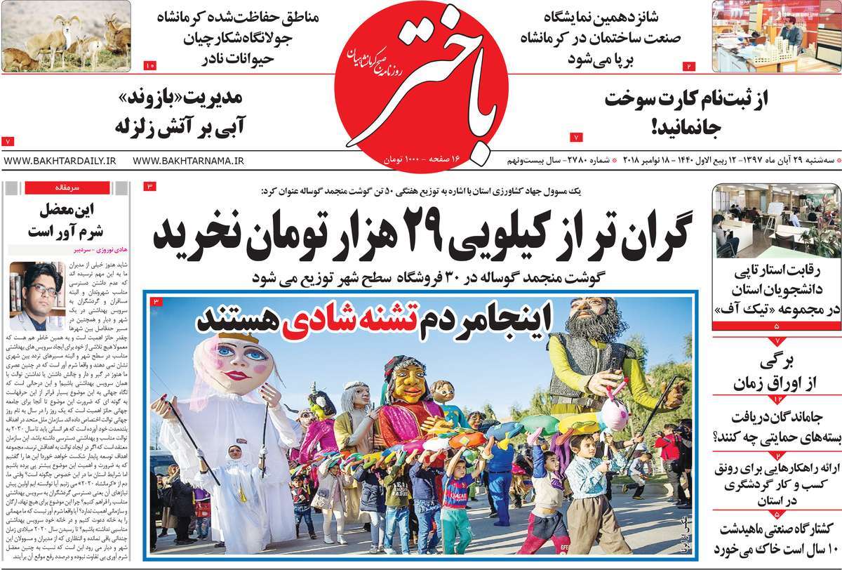صفحه اول روزنامه های کشوری و استانی؛ سه شنبه 29 آبان ماه 1397 /تصاویر