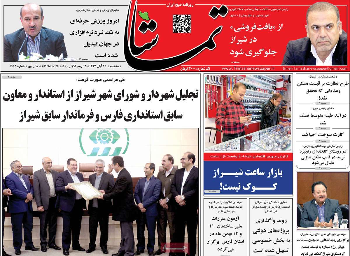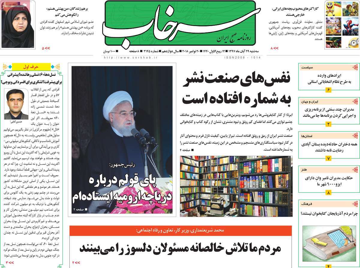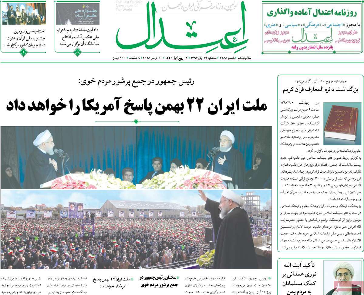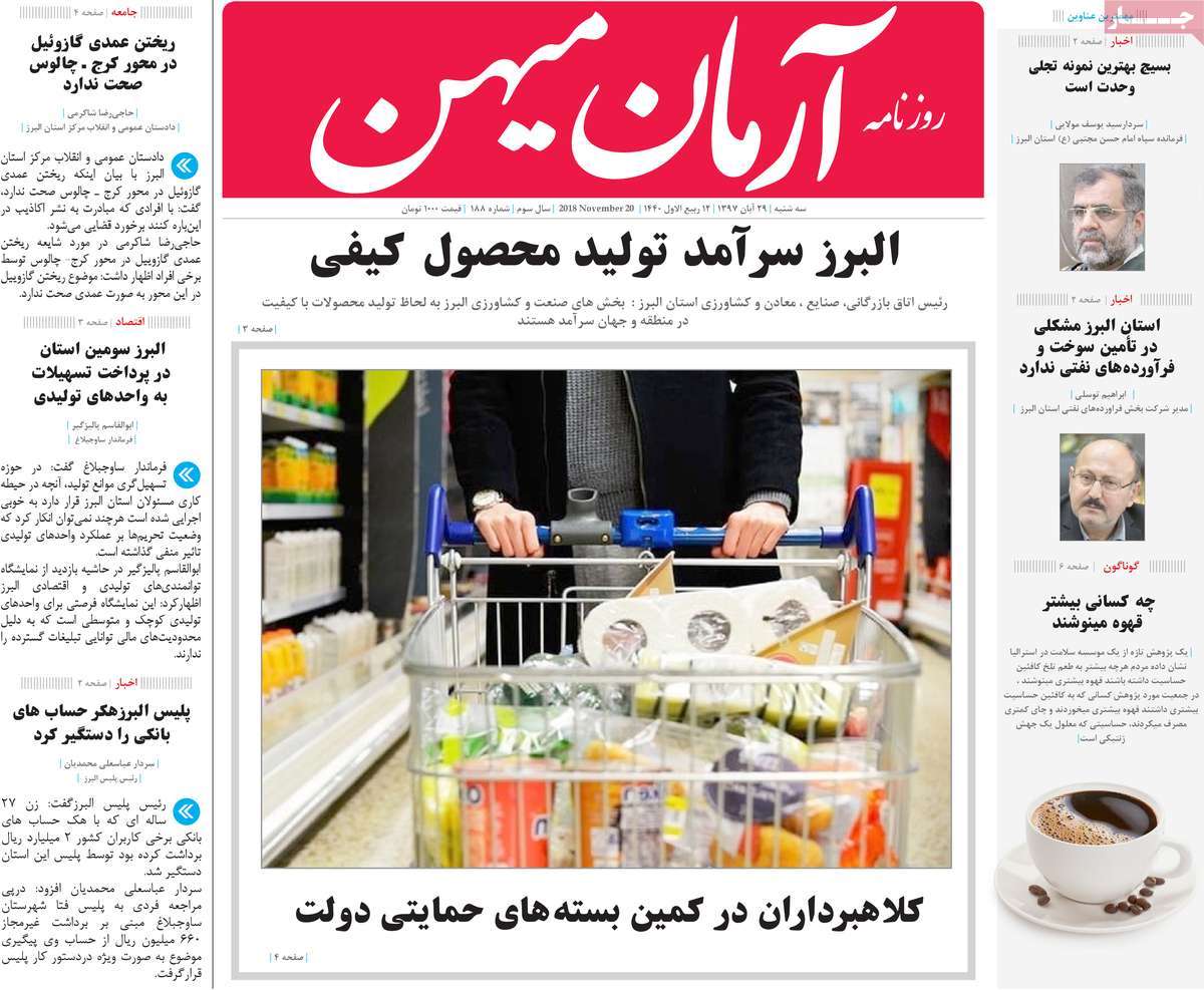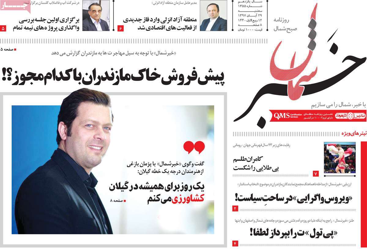 صفحه اول روزنامه های کشوری و استانی؛ سه شنبه 29 آبان ماه 1397 /تصاویر