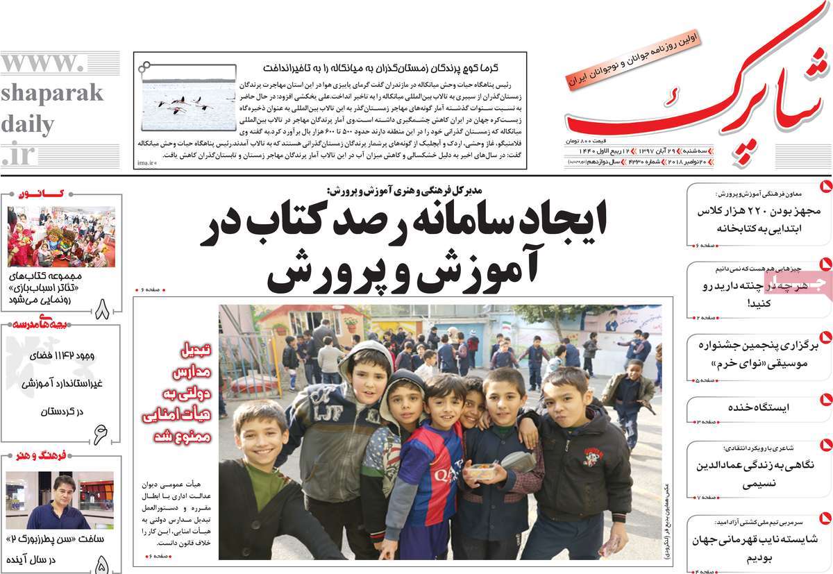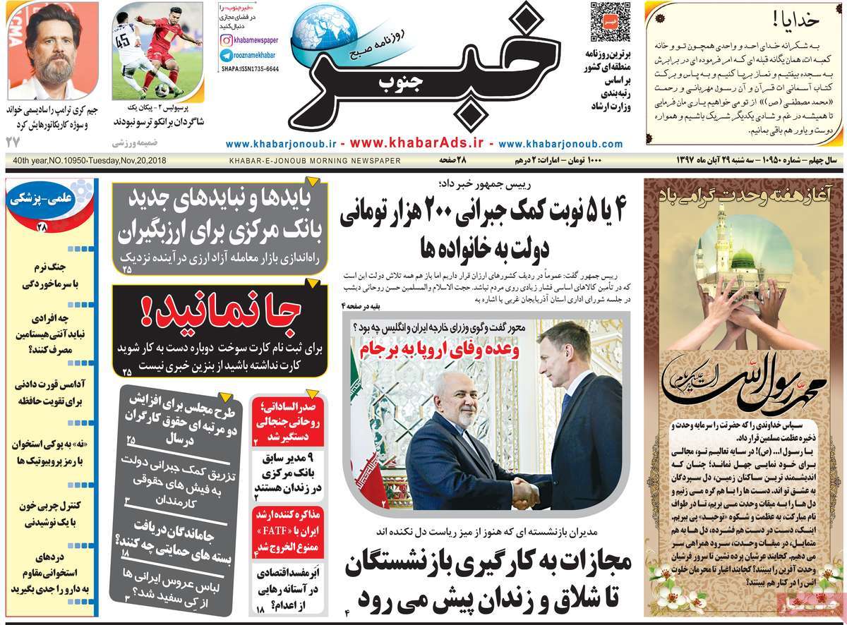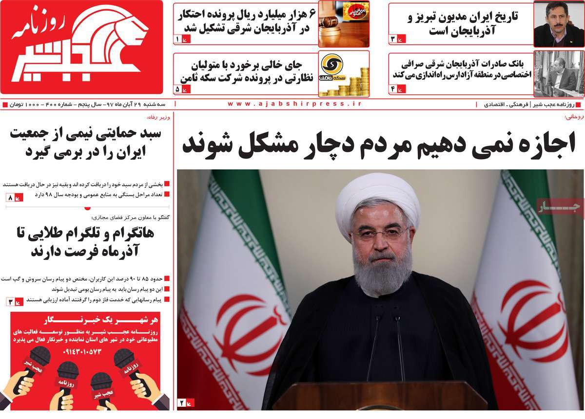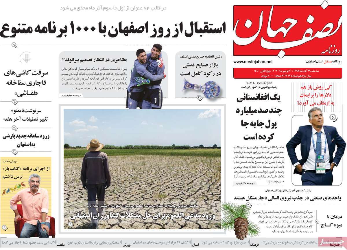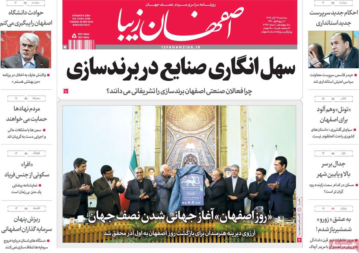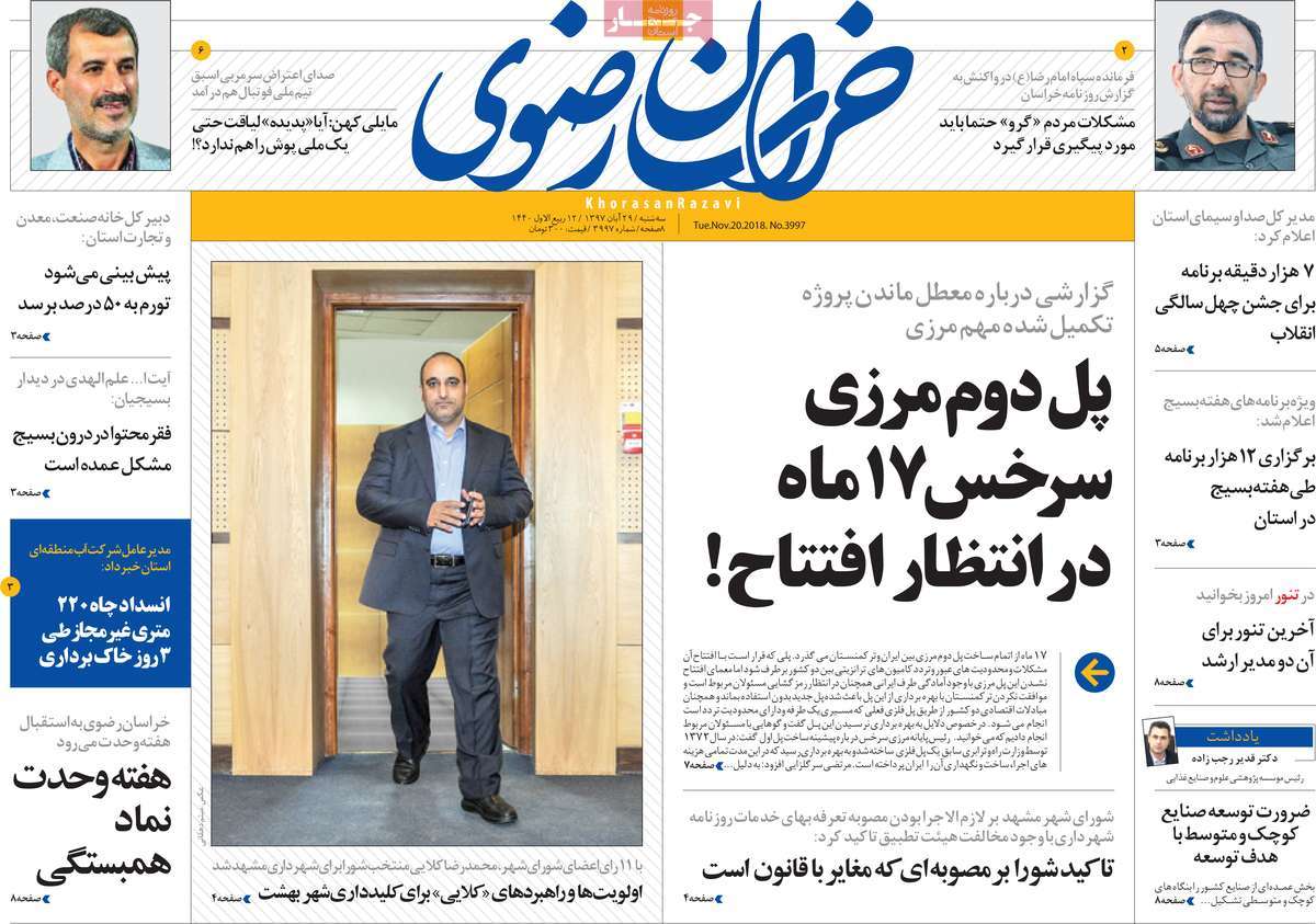 صفحه اول روزنامه های کشوری و استانی؛ سه شنبه 29 آبان ماه 1397 /تصاویر