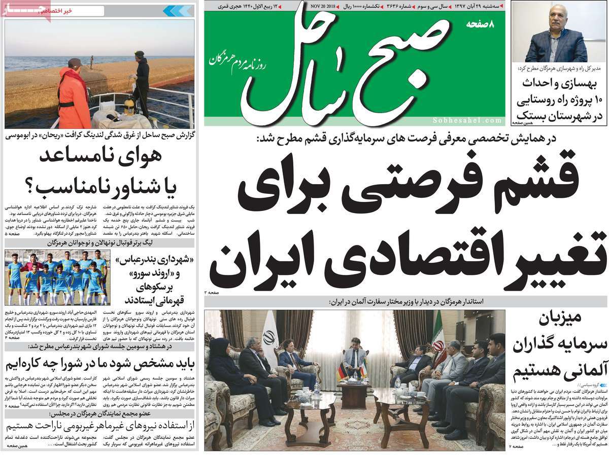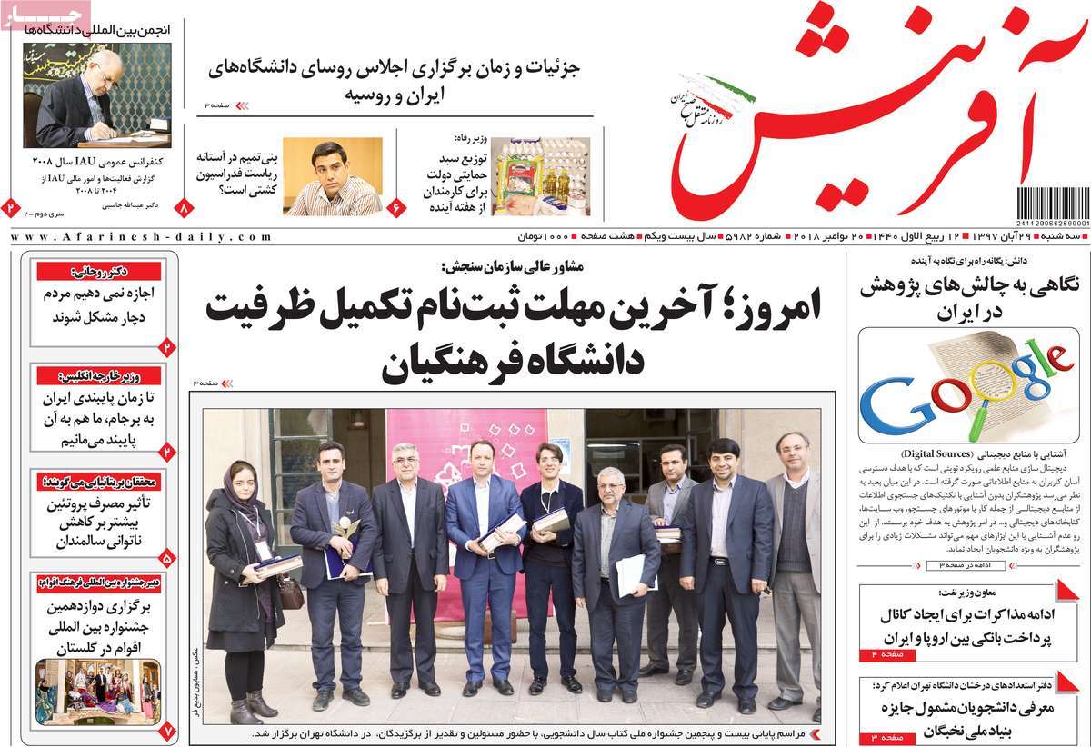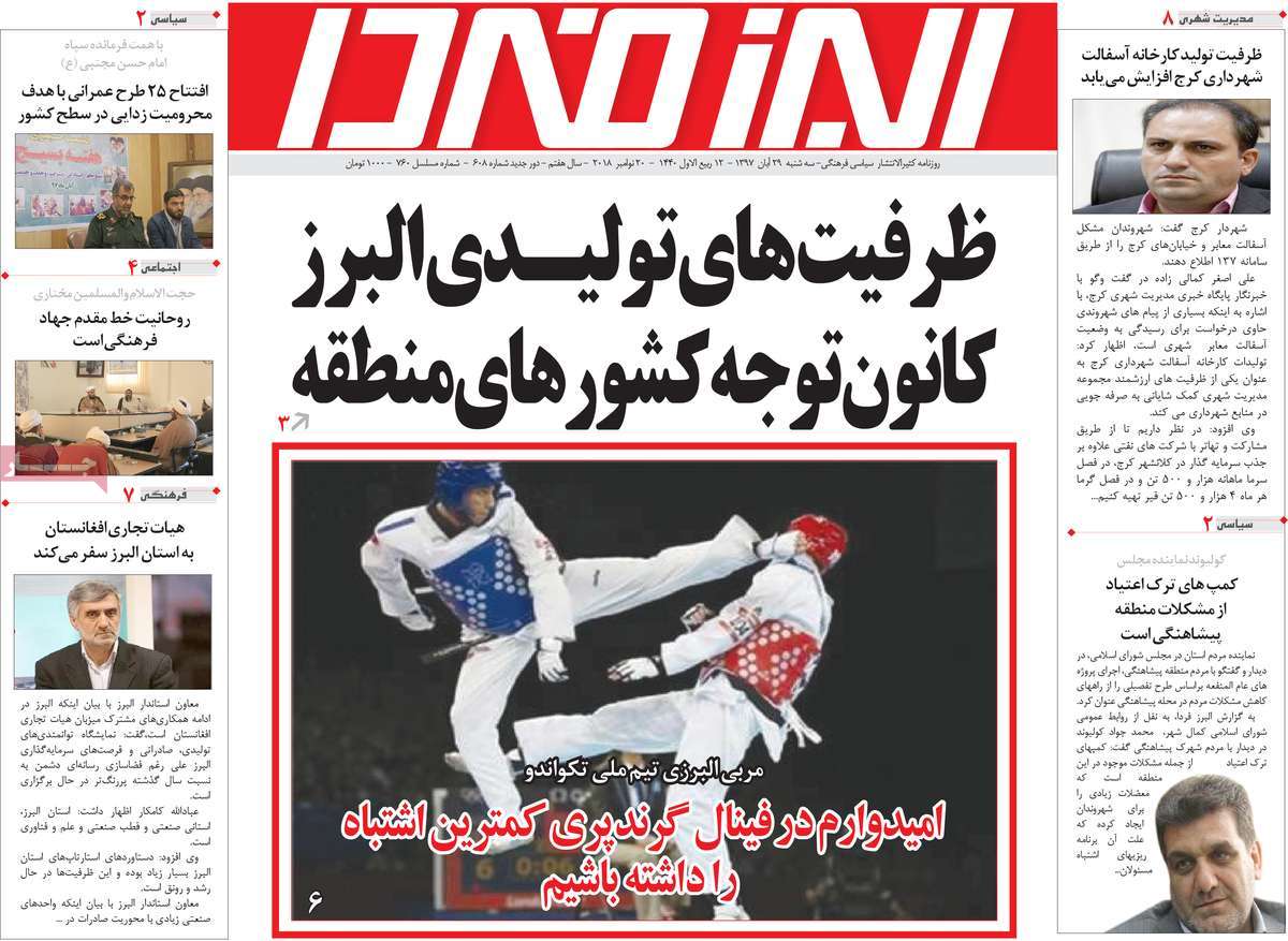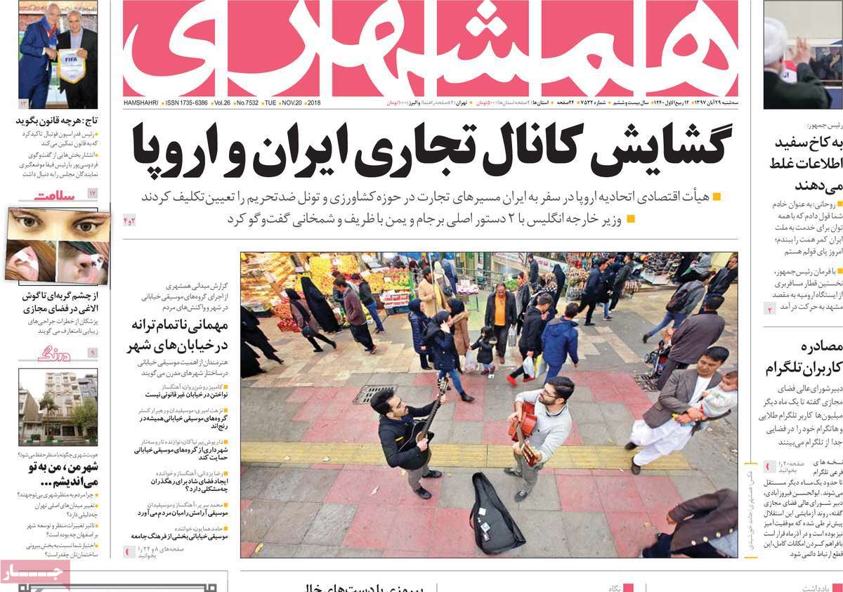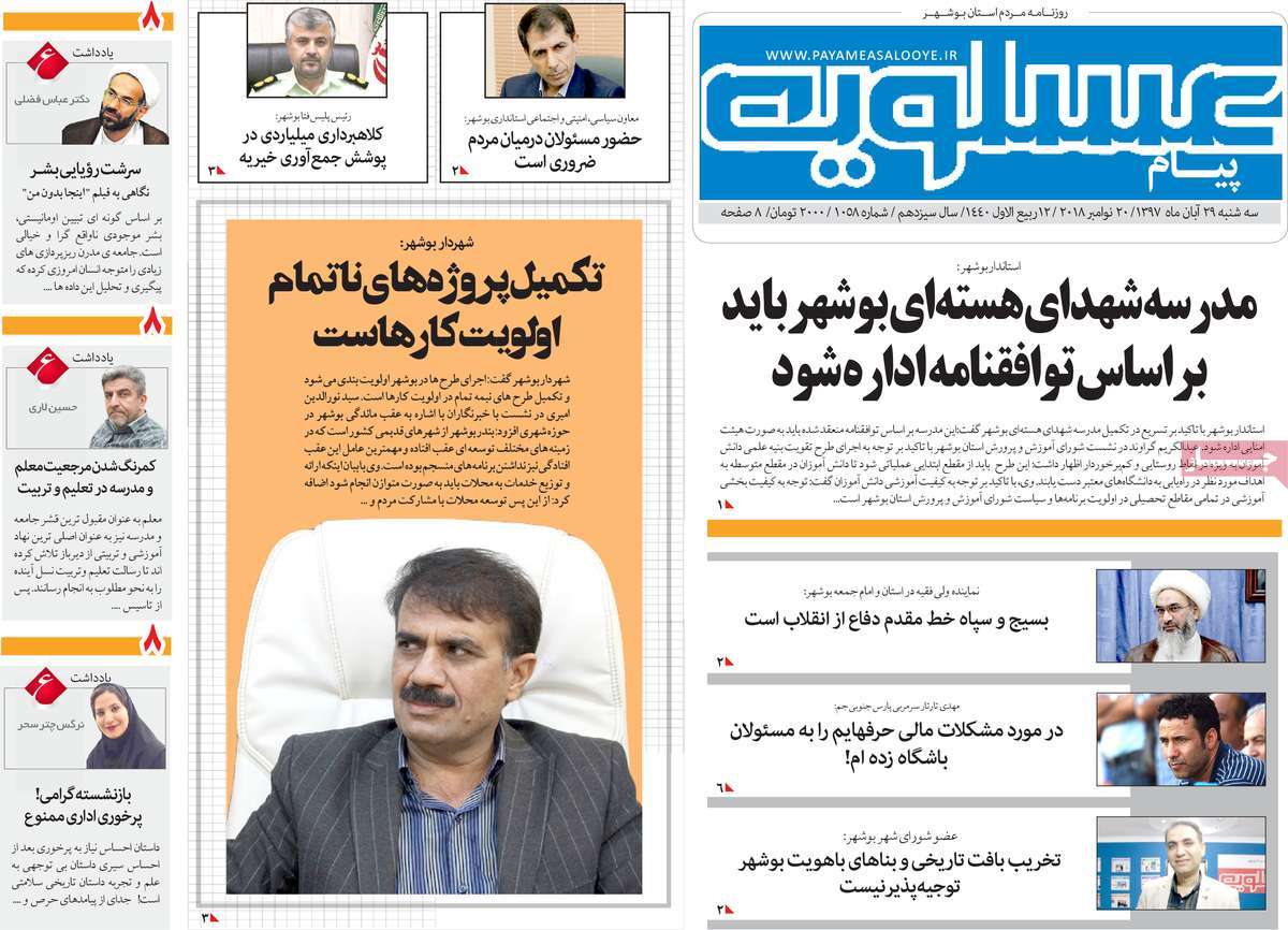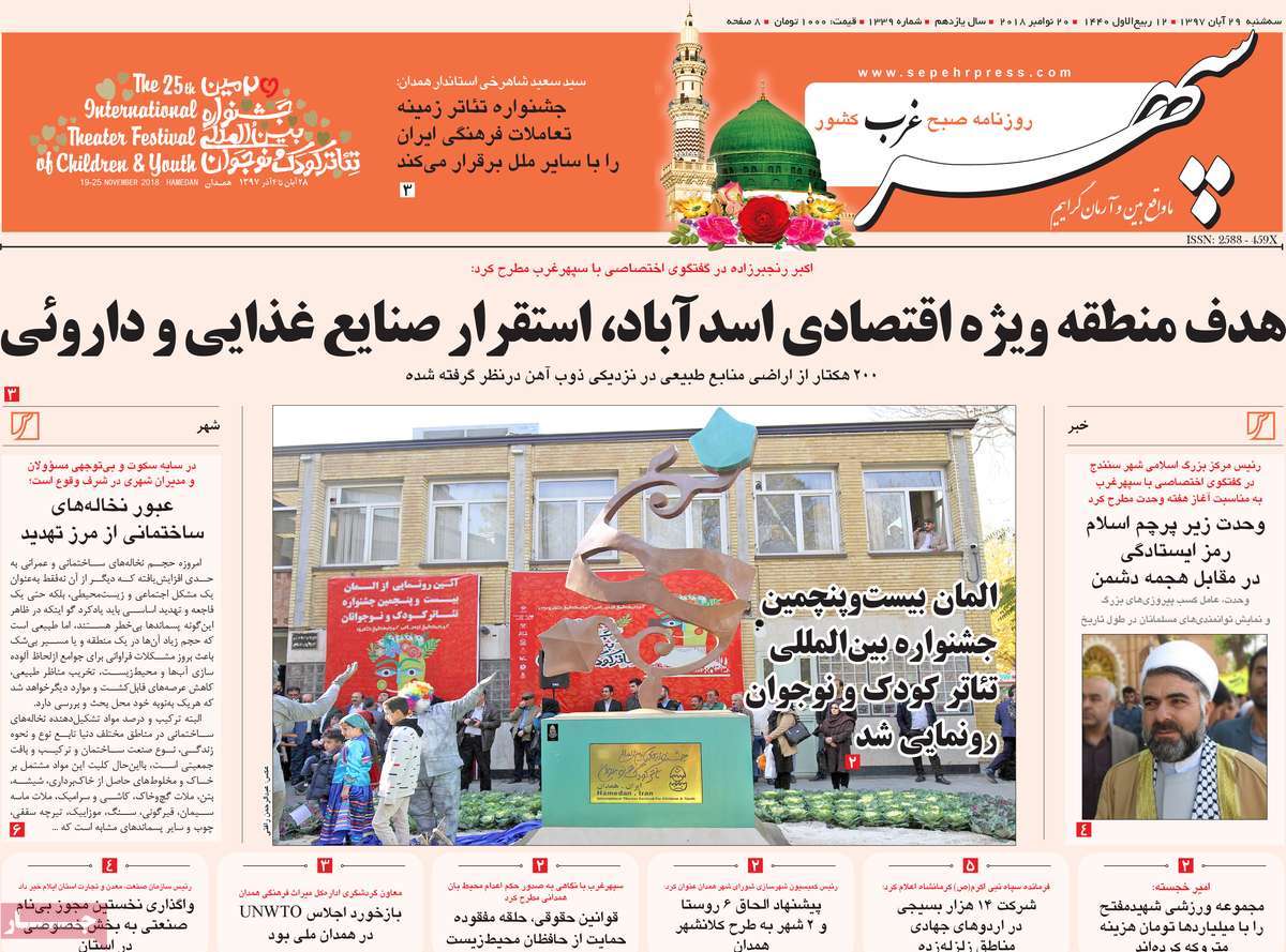 صفحه اول روزنامه های کشوری و استانی؛ سه شنبه 29 آبان ماه 1397 /تصاویر