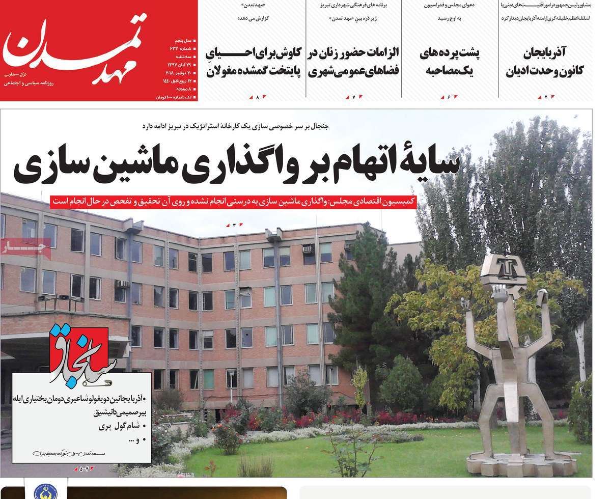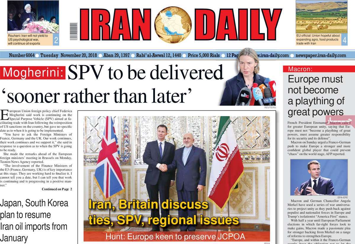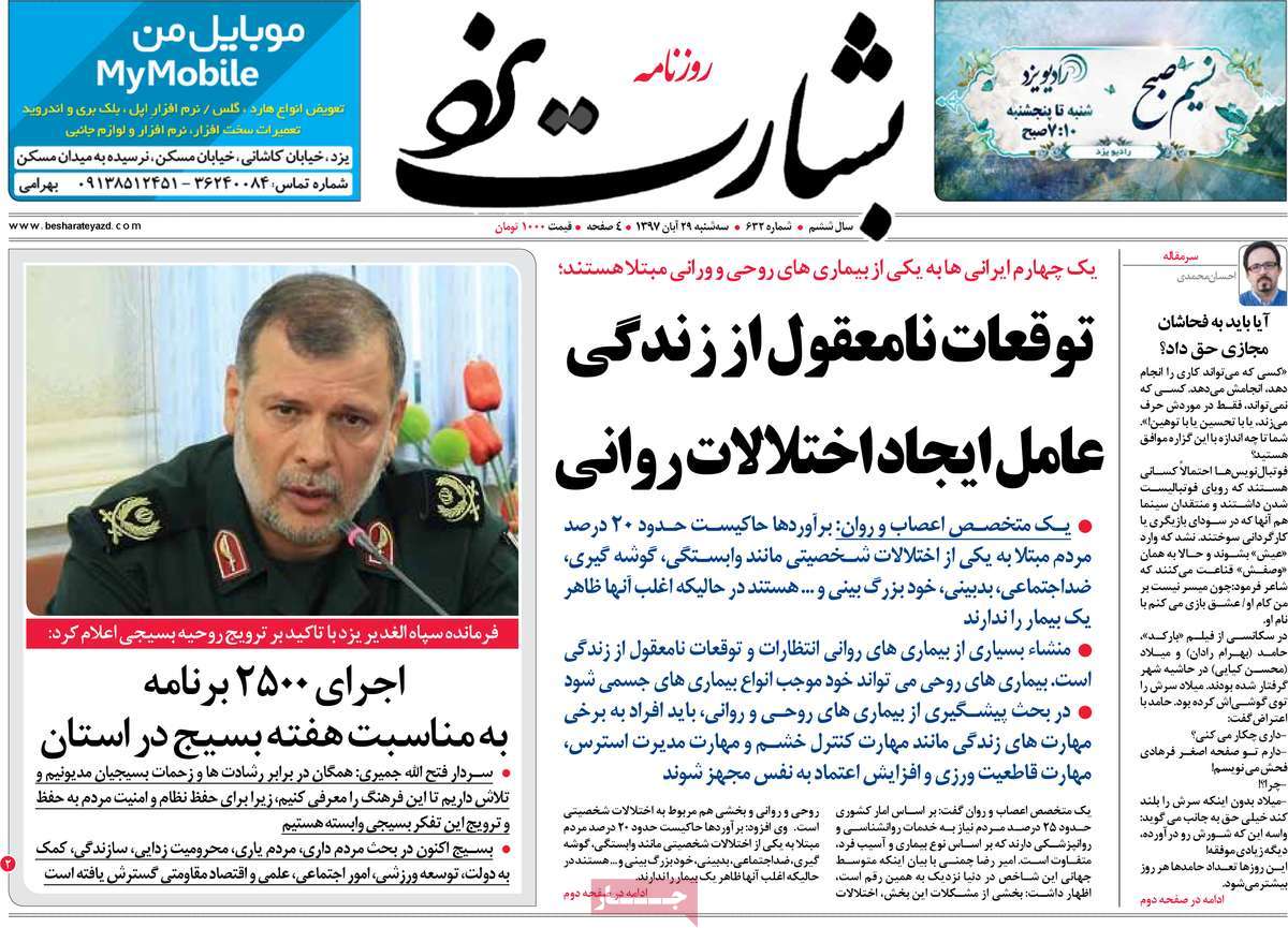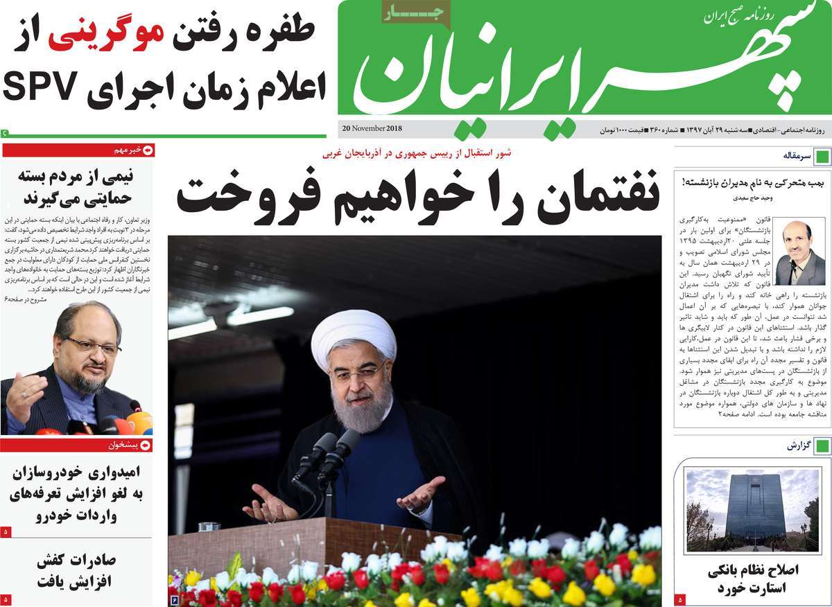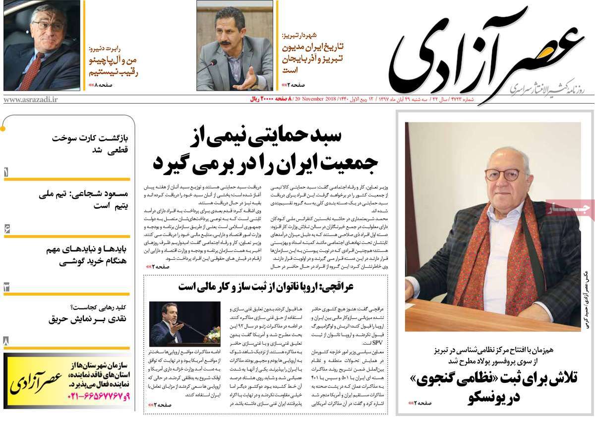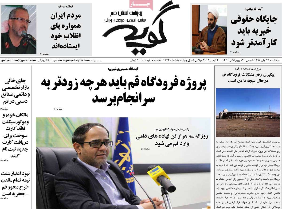 صفحه اول روزنامه های کشوری و استانی؛ سه شنبه 29 آبان ماه 1397 /تصاویر