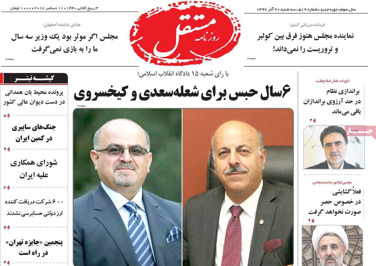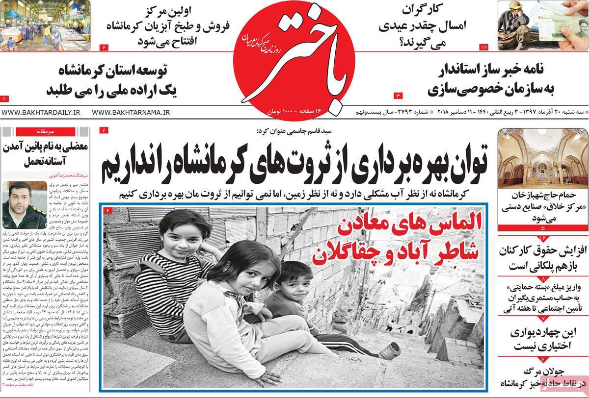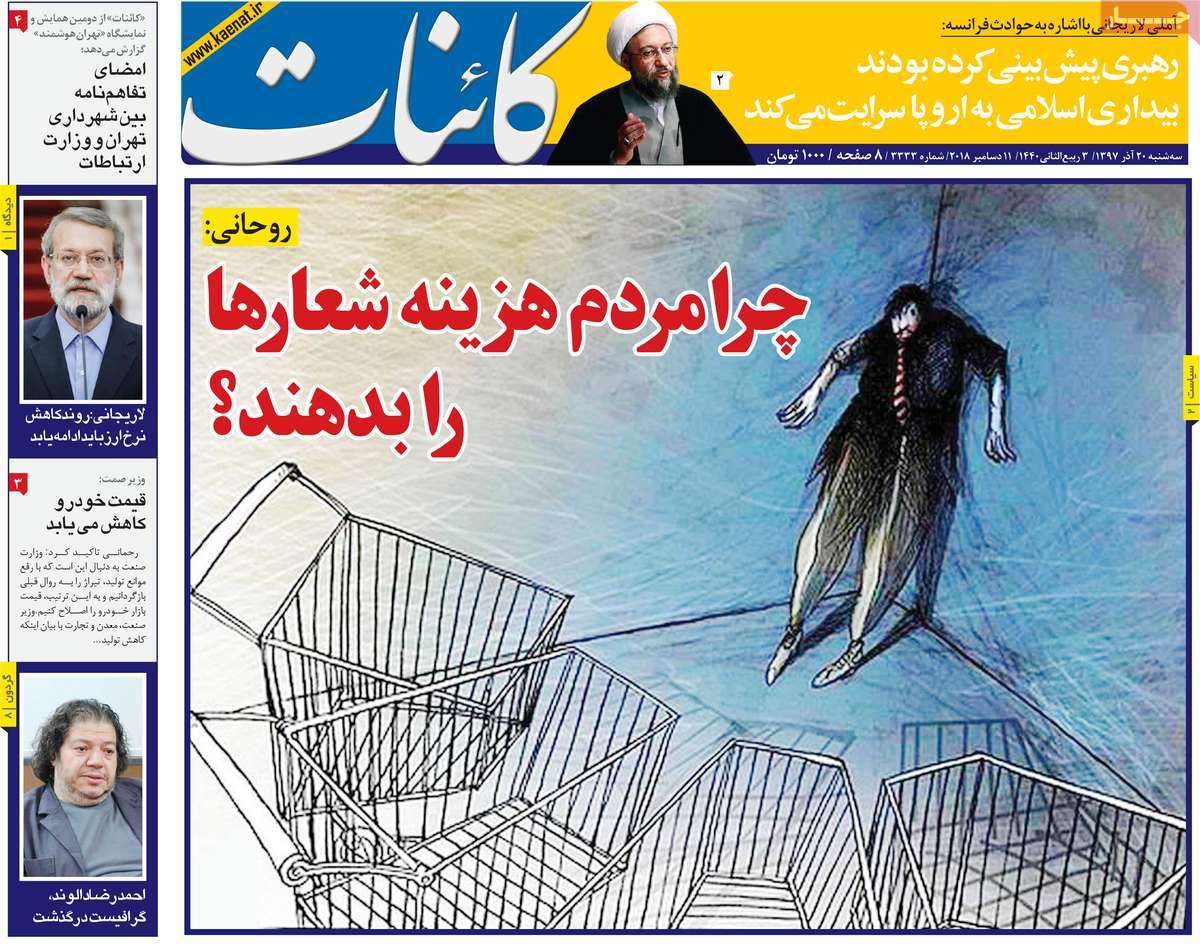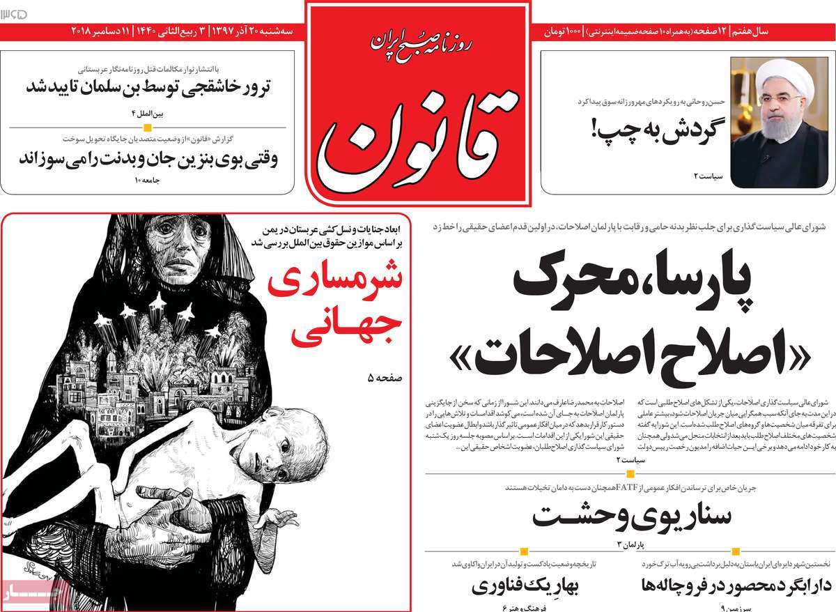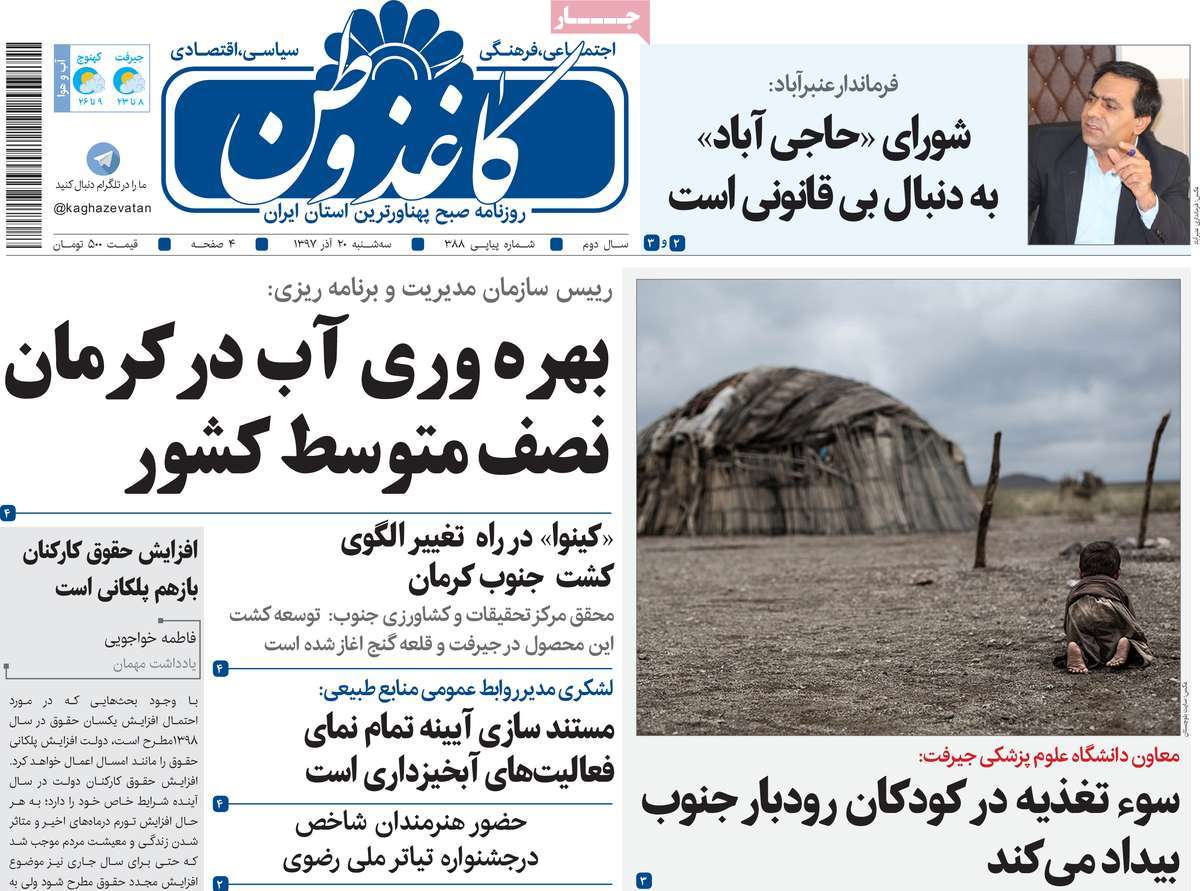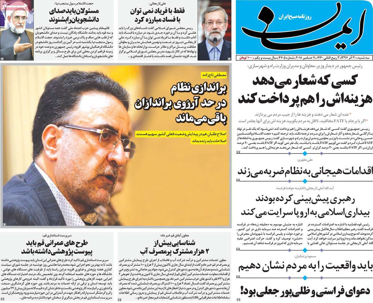صفحه اول روزنامه های کشوری و استانی؛ سه شنبه 20 آذرماه 1397 /تصاویر