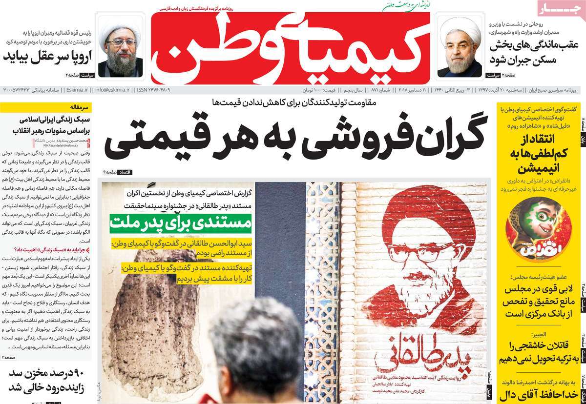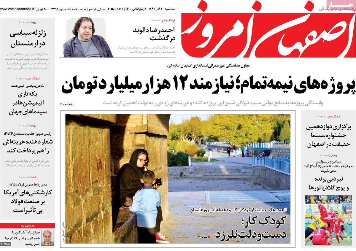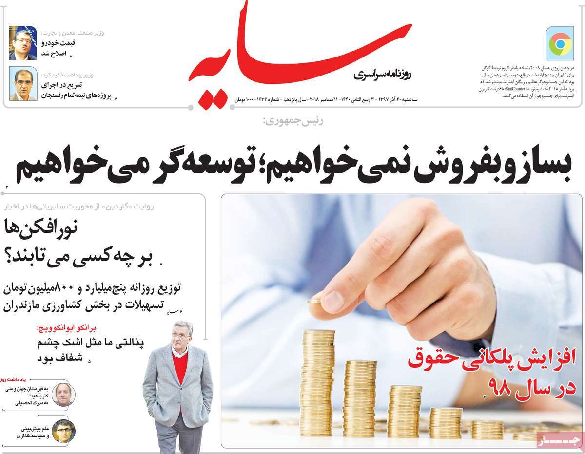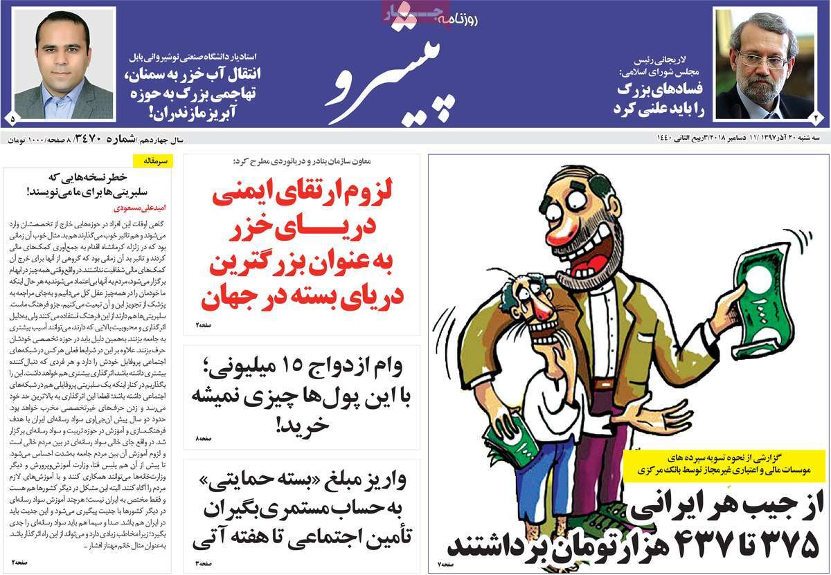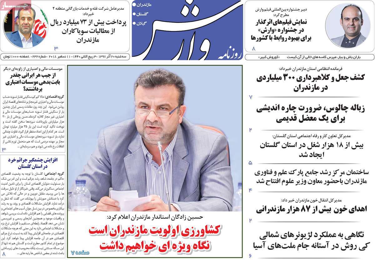 صفحه اول روزنامه های کشوری و استانی؛ سه شنبه 20 آذرماه 1397 /تصاویر