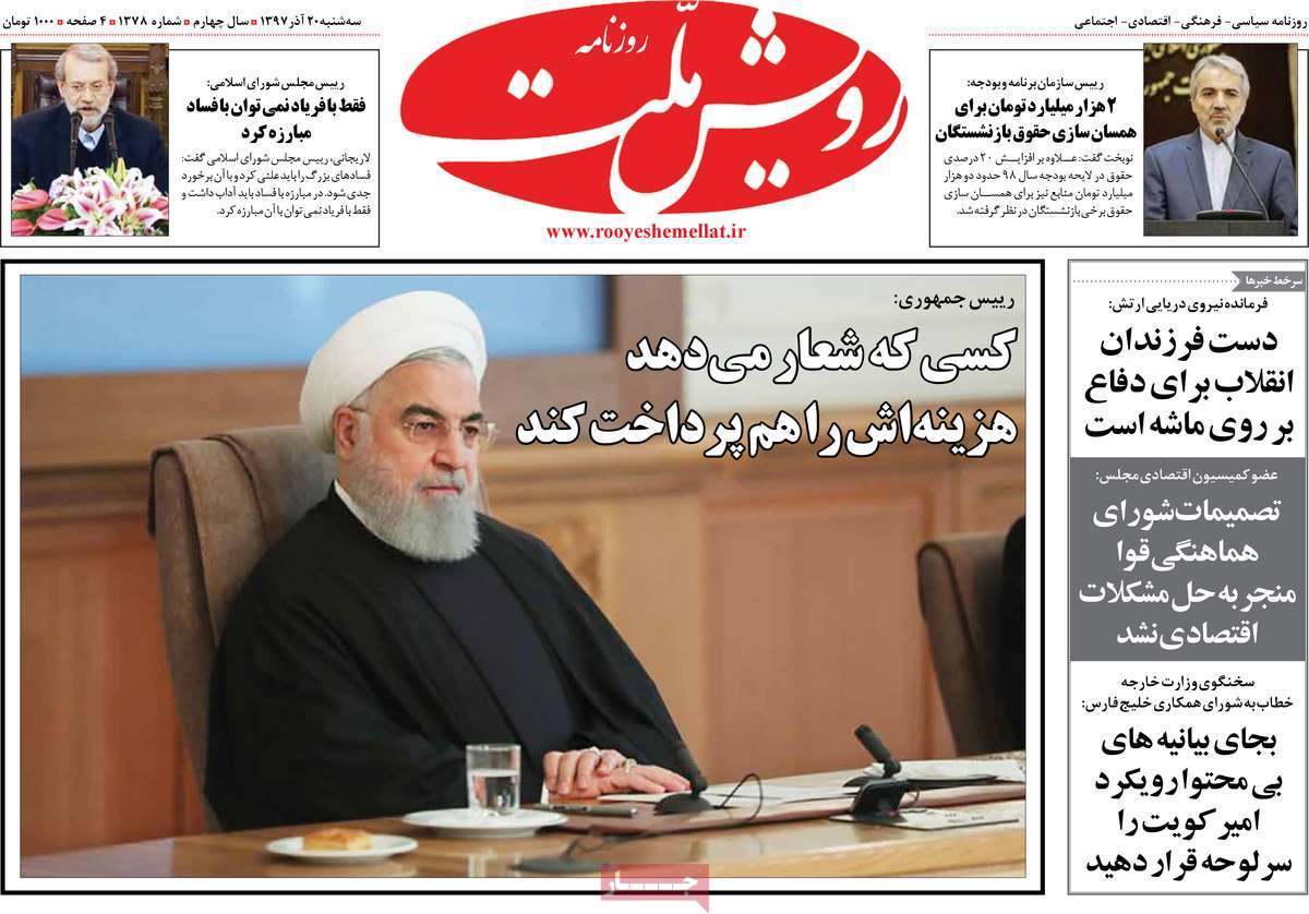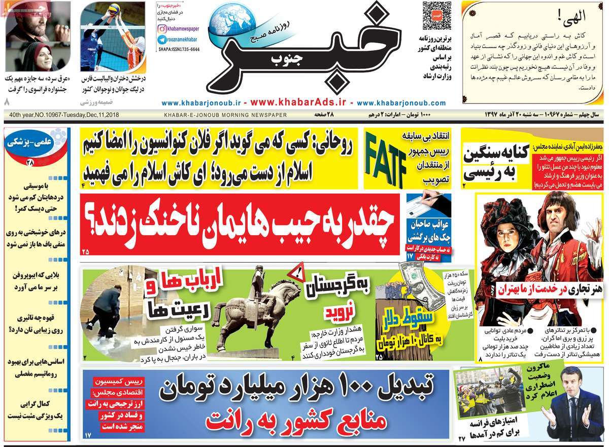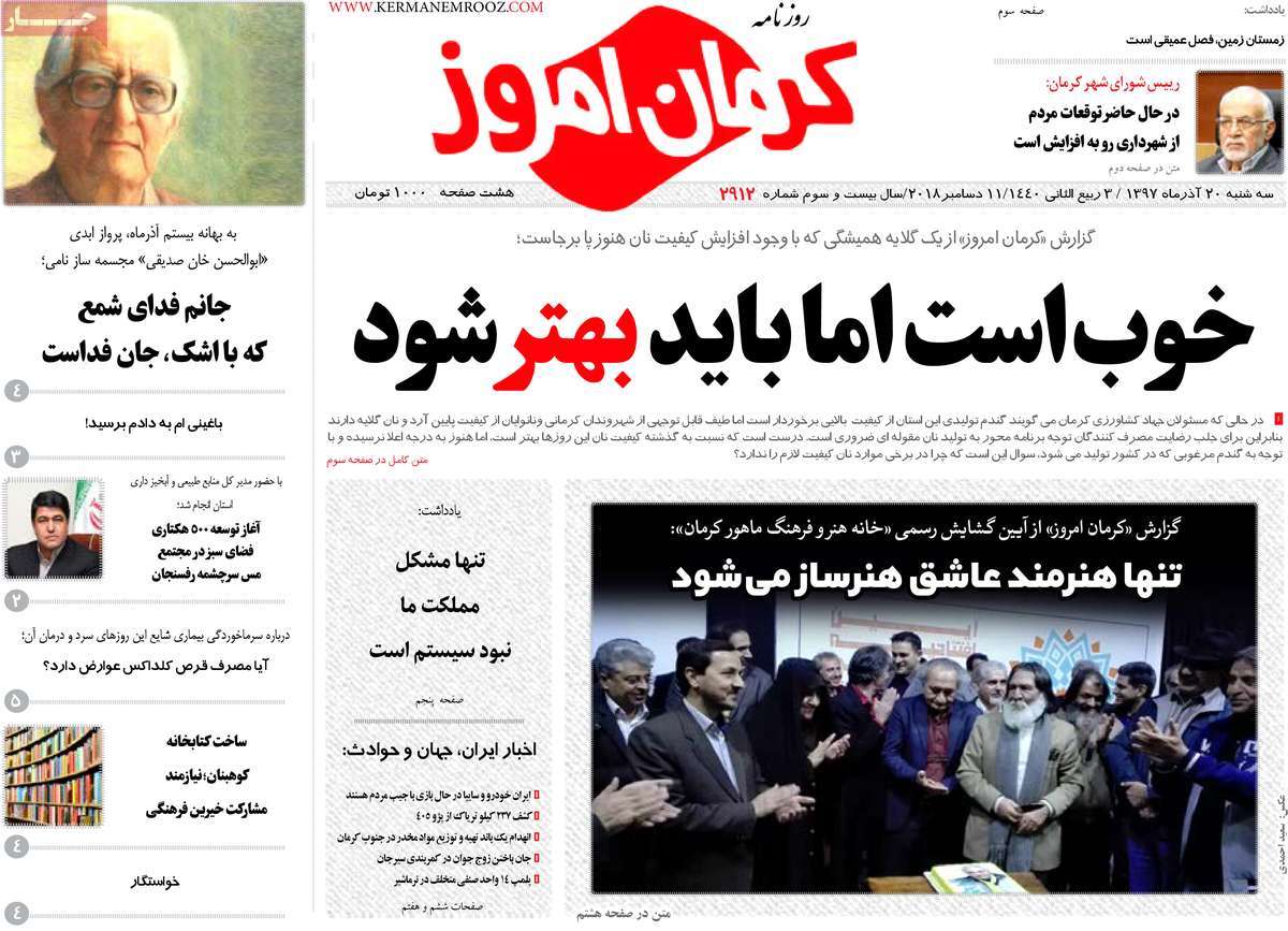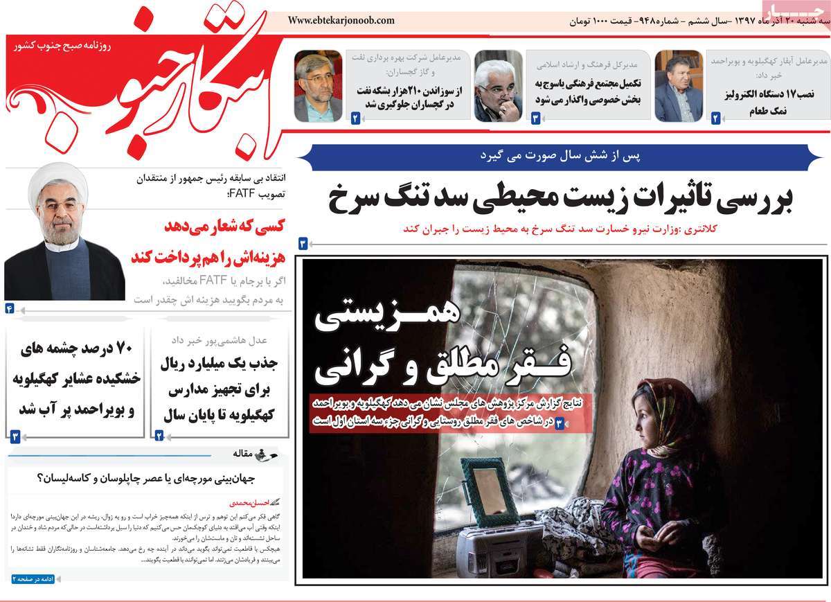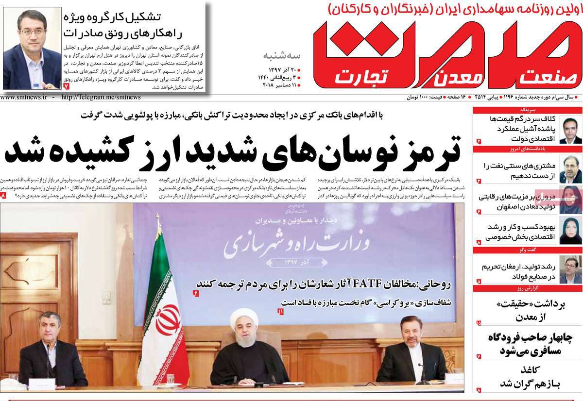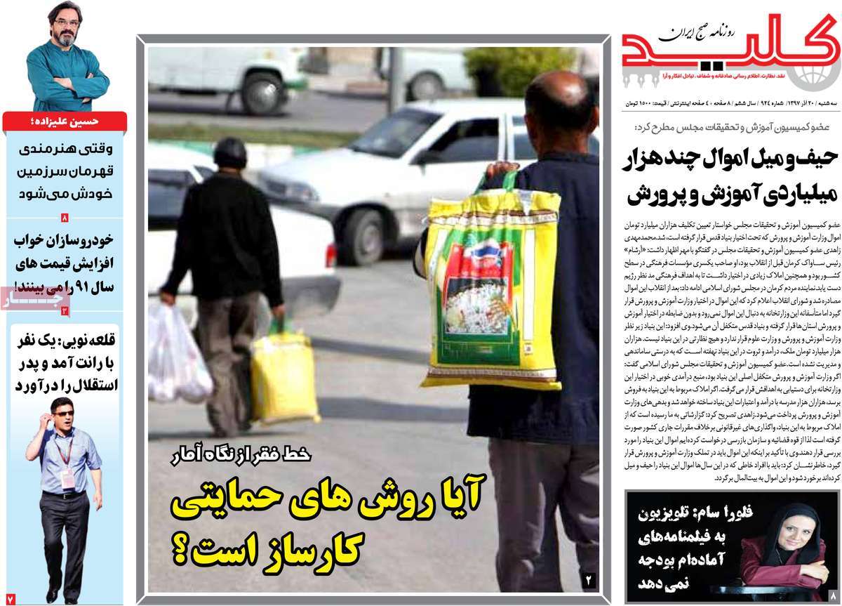 صفحه اول روزنامه های کشوری و استانی؛ سه شنبه 20 آذرماه 1397 /تصاویر