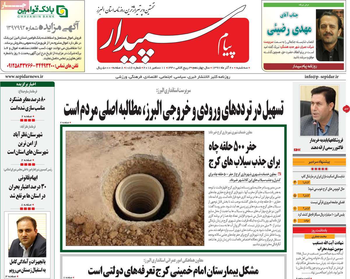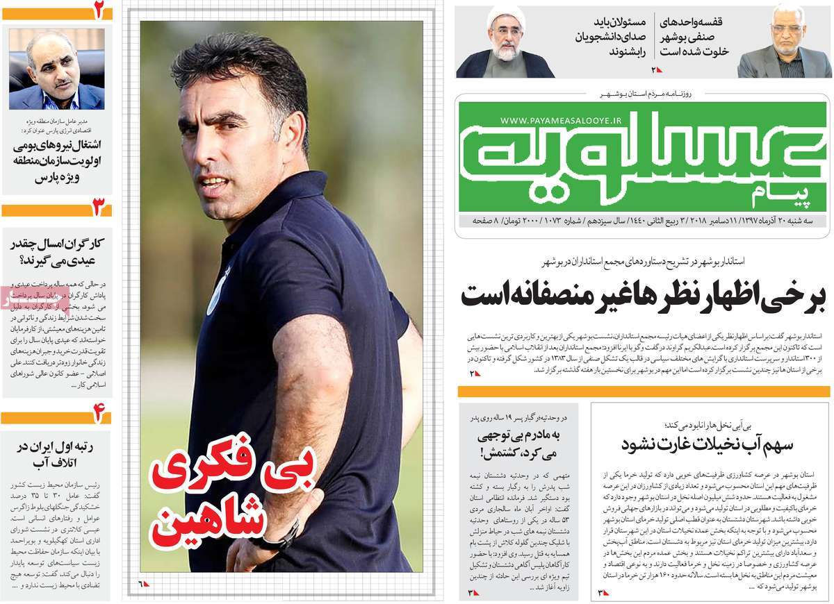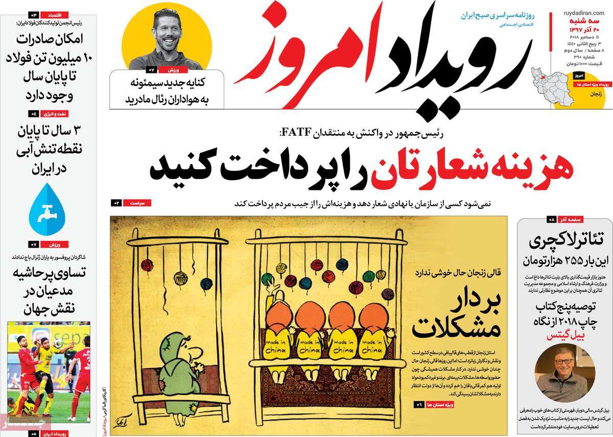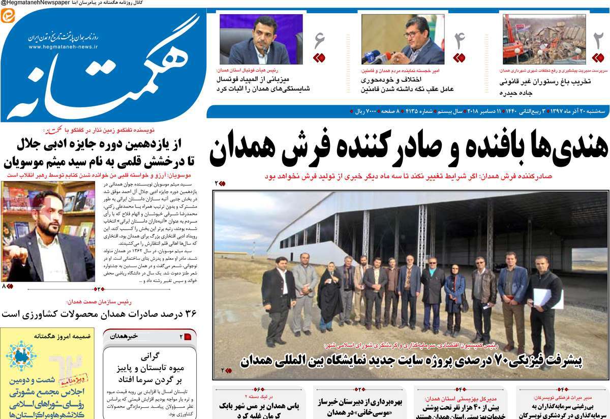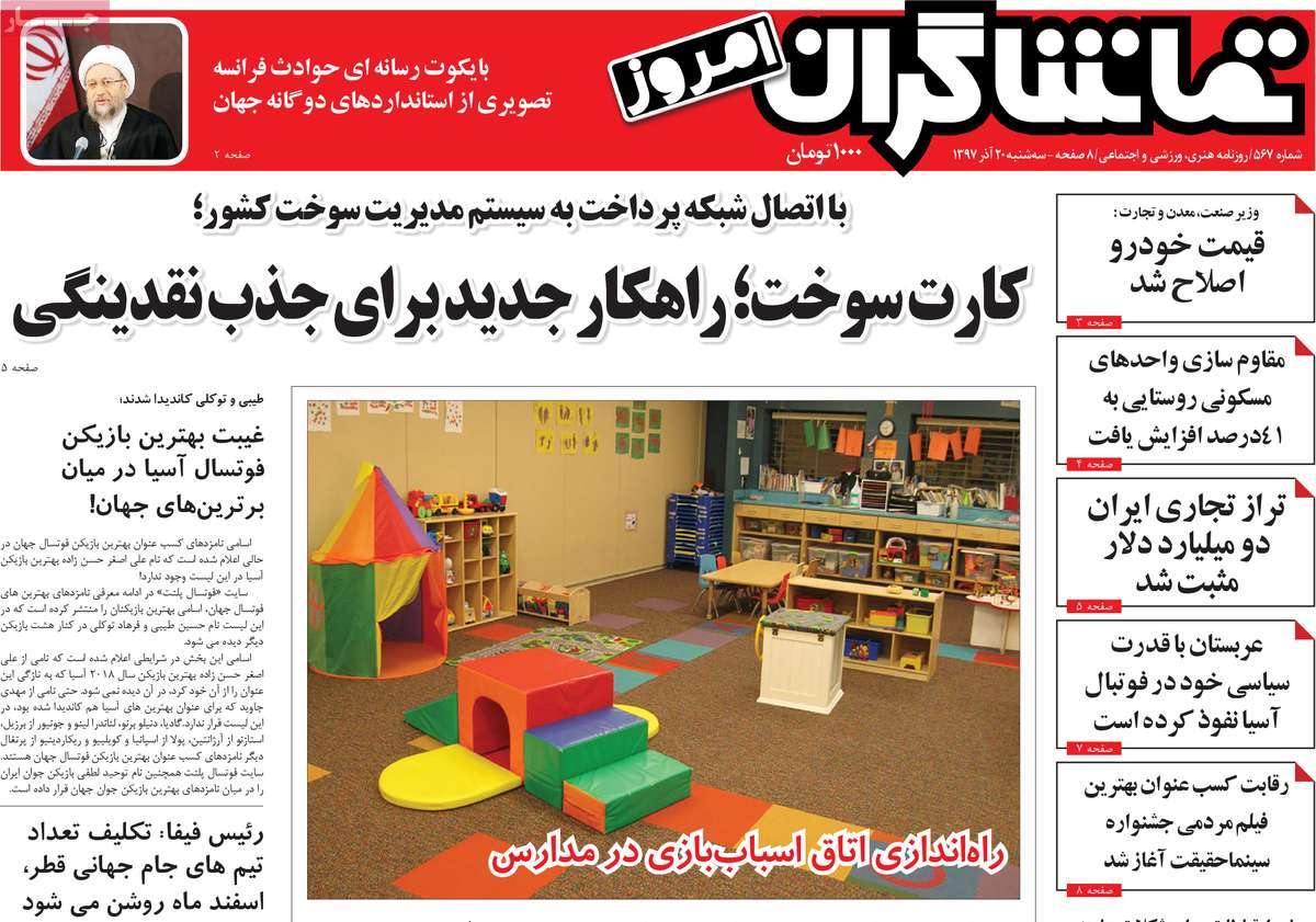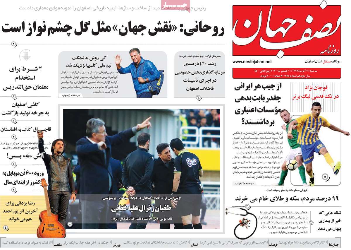 صفحه اول روزنامه های کشوری و استانی؛ سه شنبه 20 آذرماه 1397 /تصاویر