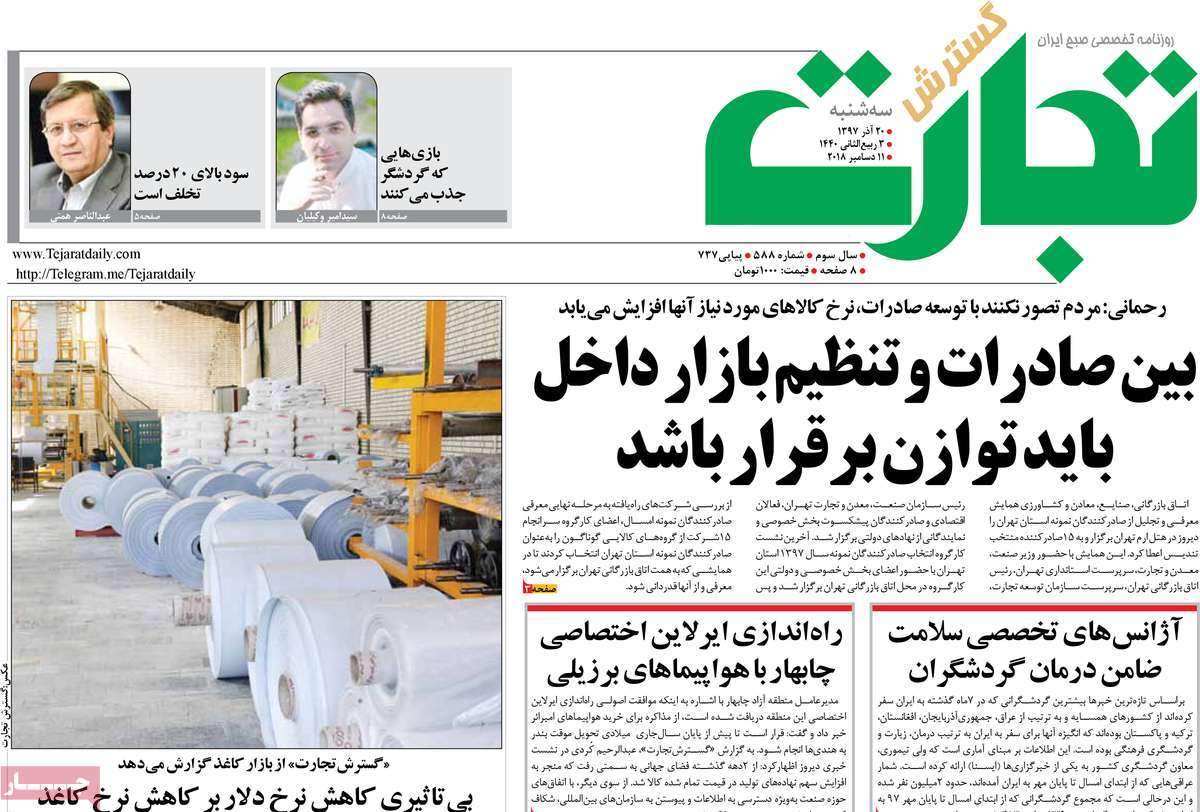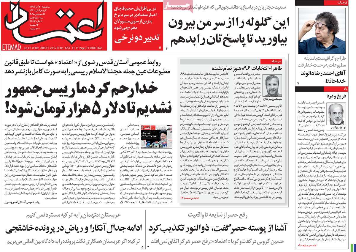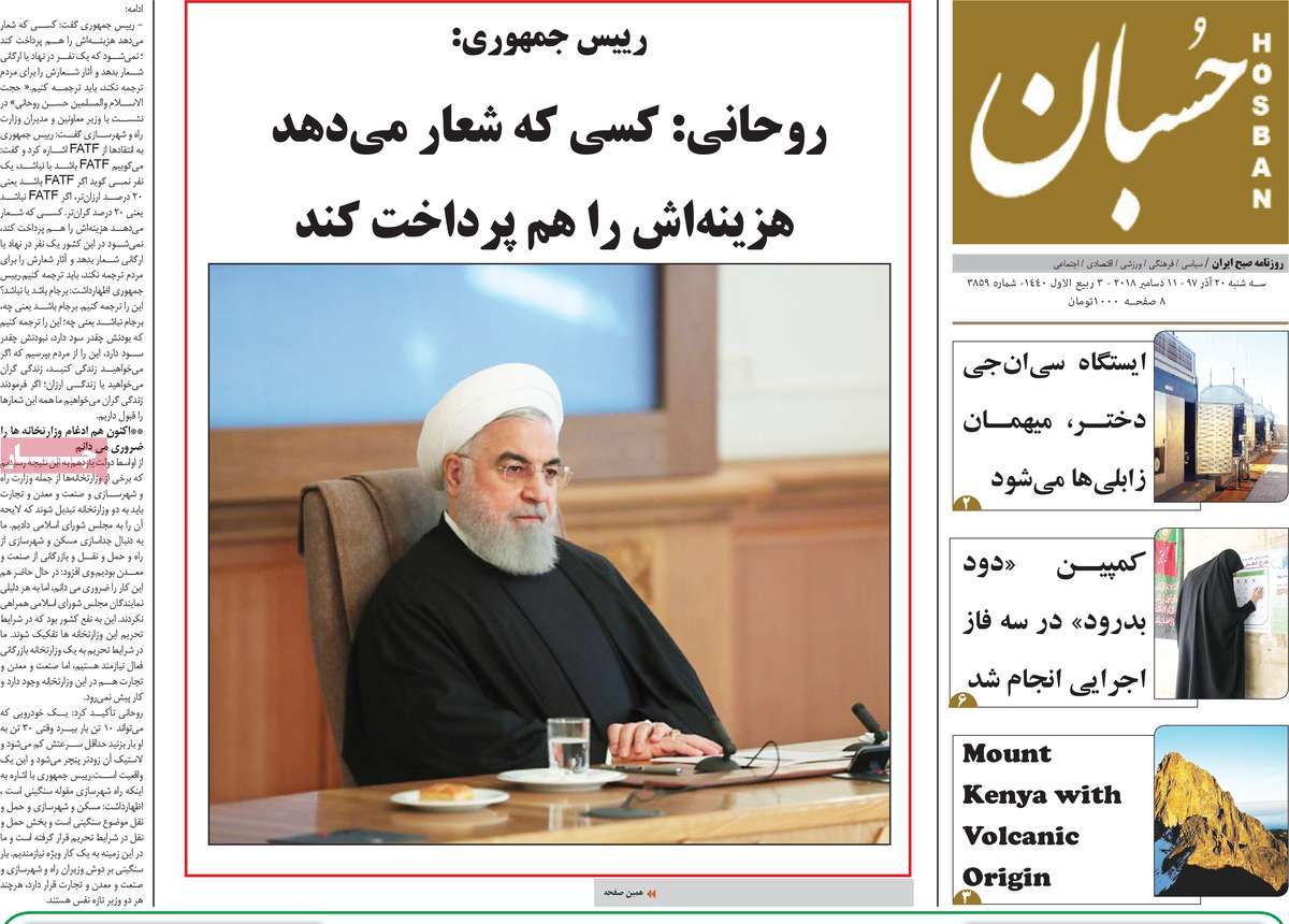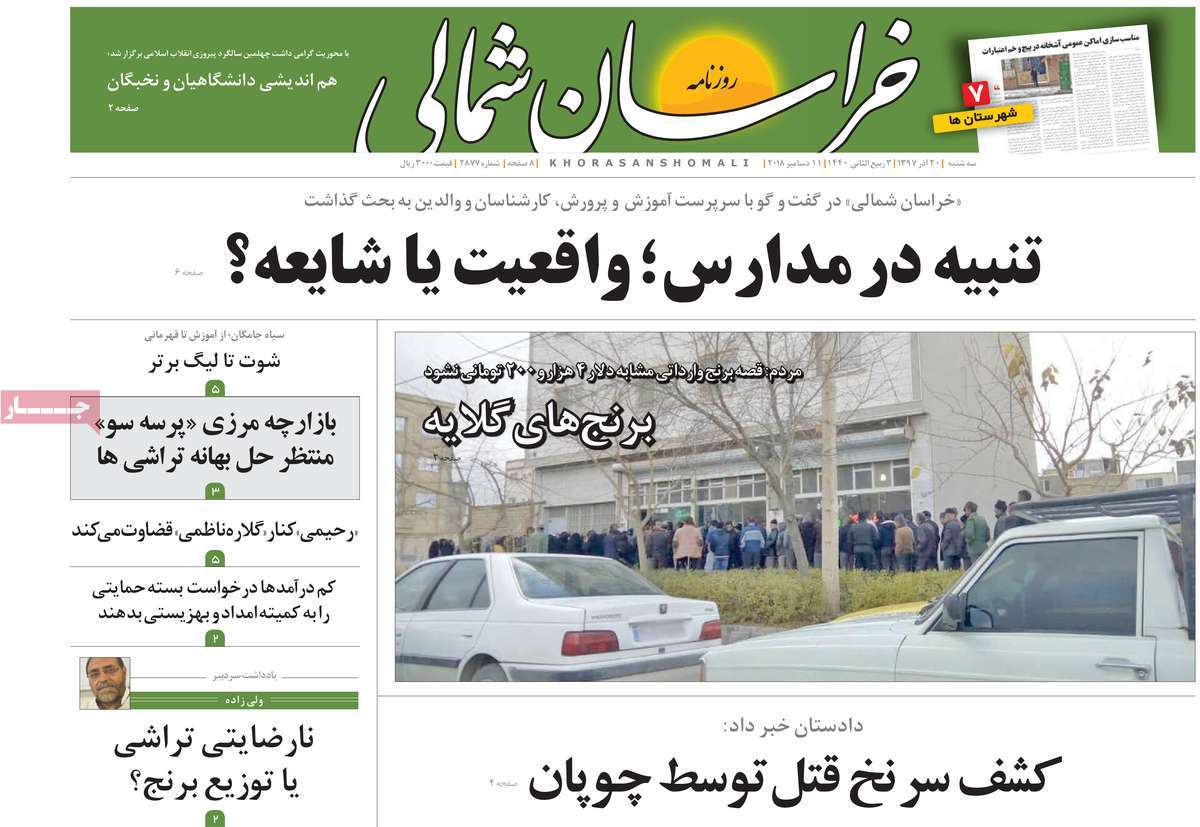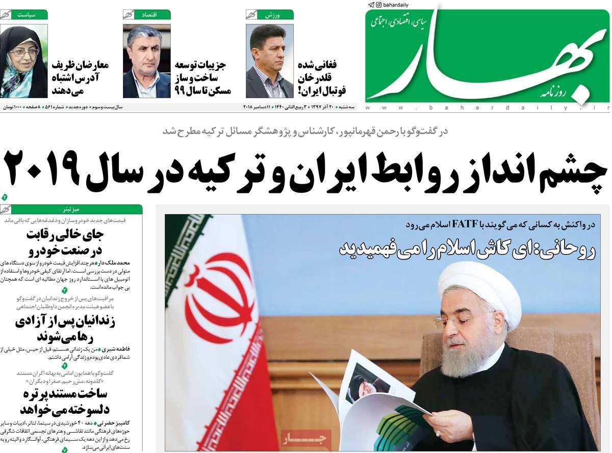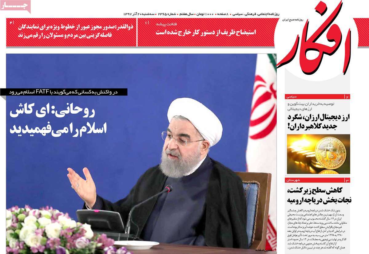 صفحه اول روزنامه های کشوری و استانی؛ سه شنبه 20 آذرماه 1397 /تصاویر