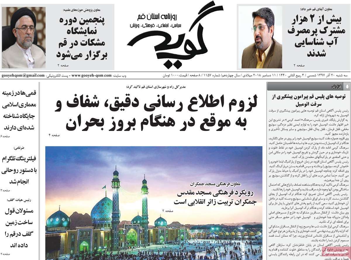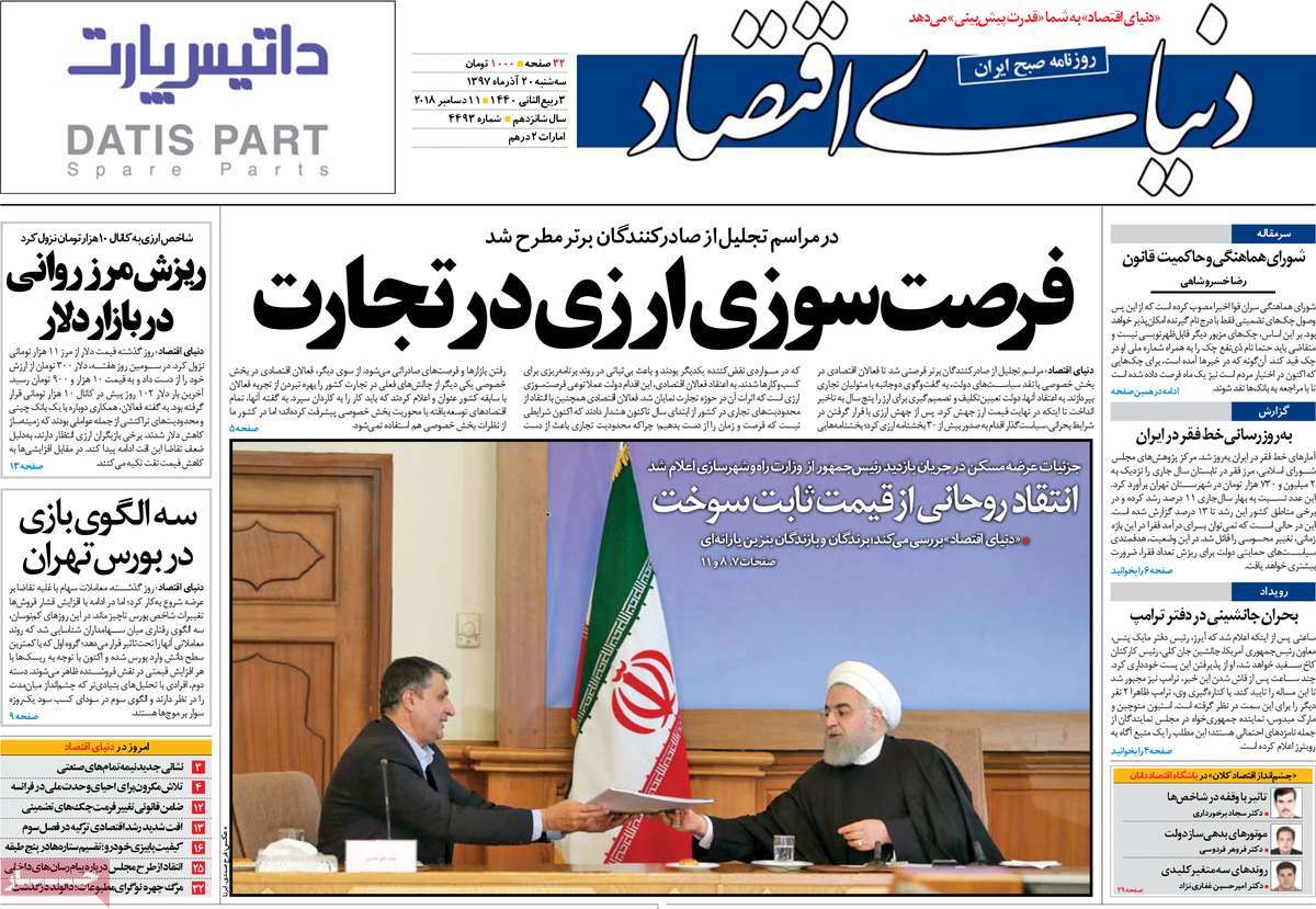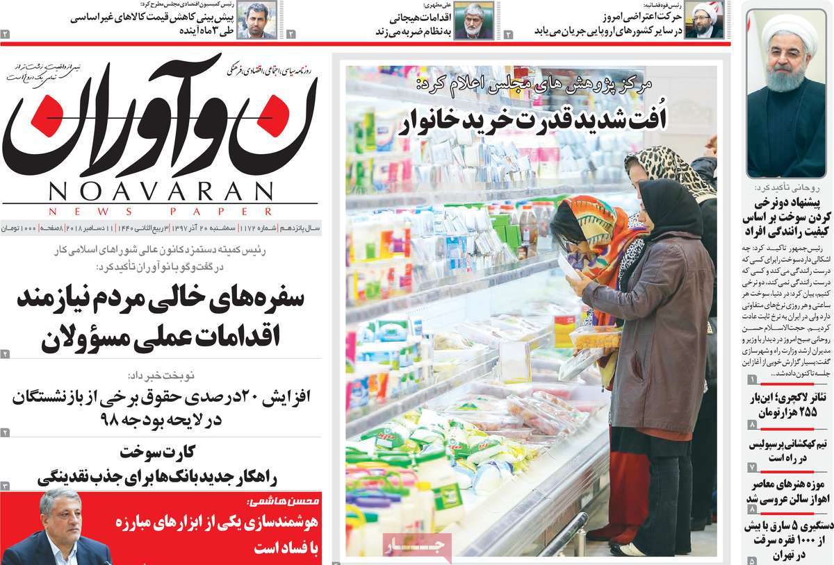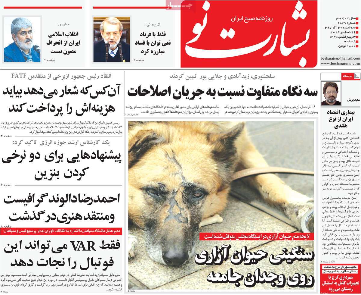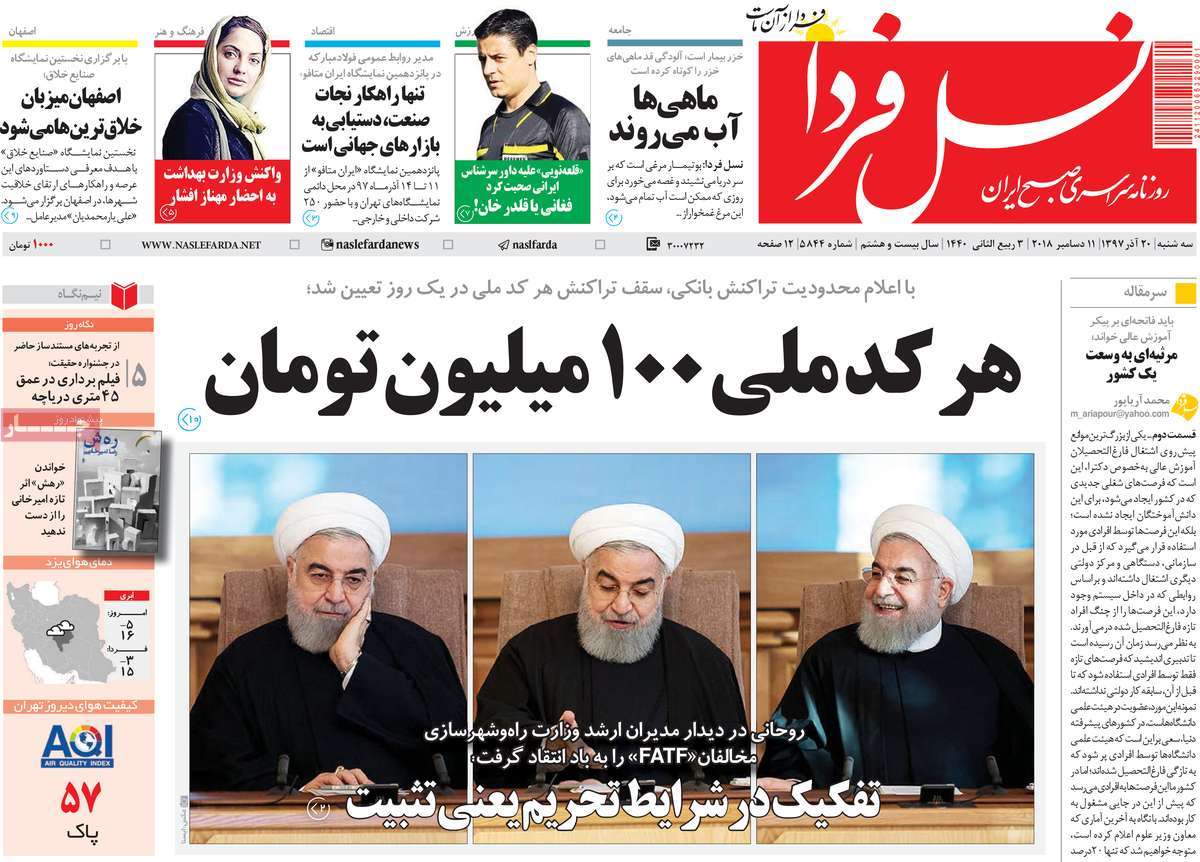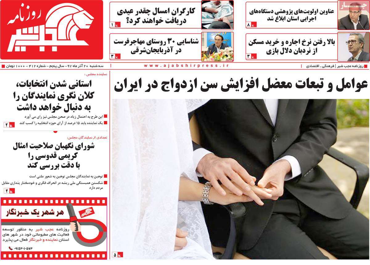 صفحه اول روزنامه های کشوری و استانی؛ سه شنبه 20 آذرماه 1397 /تصاویر