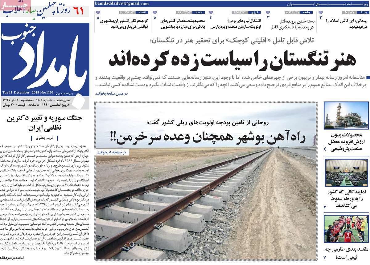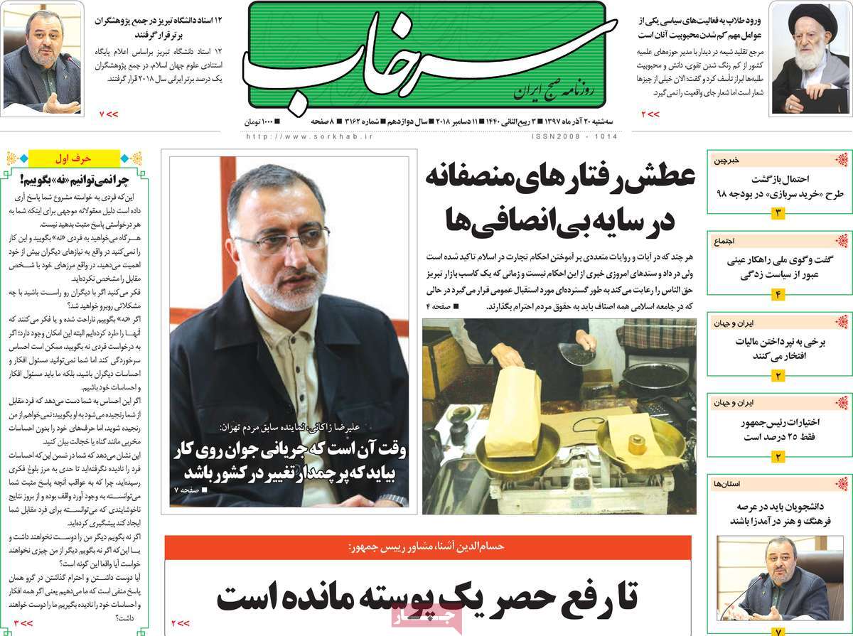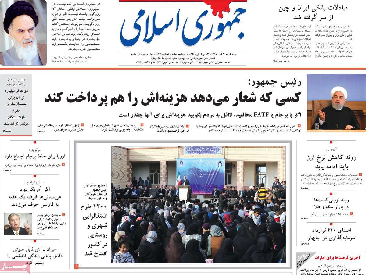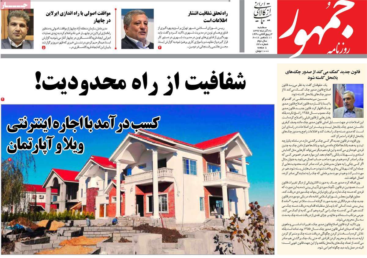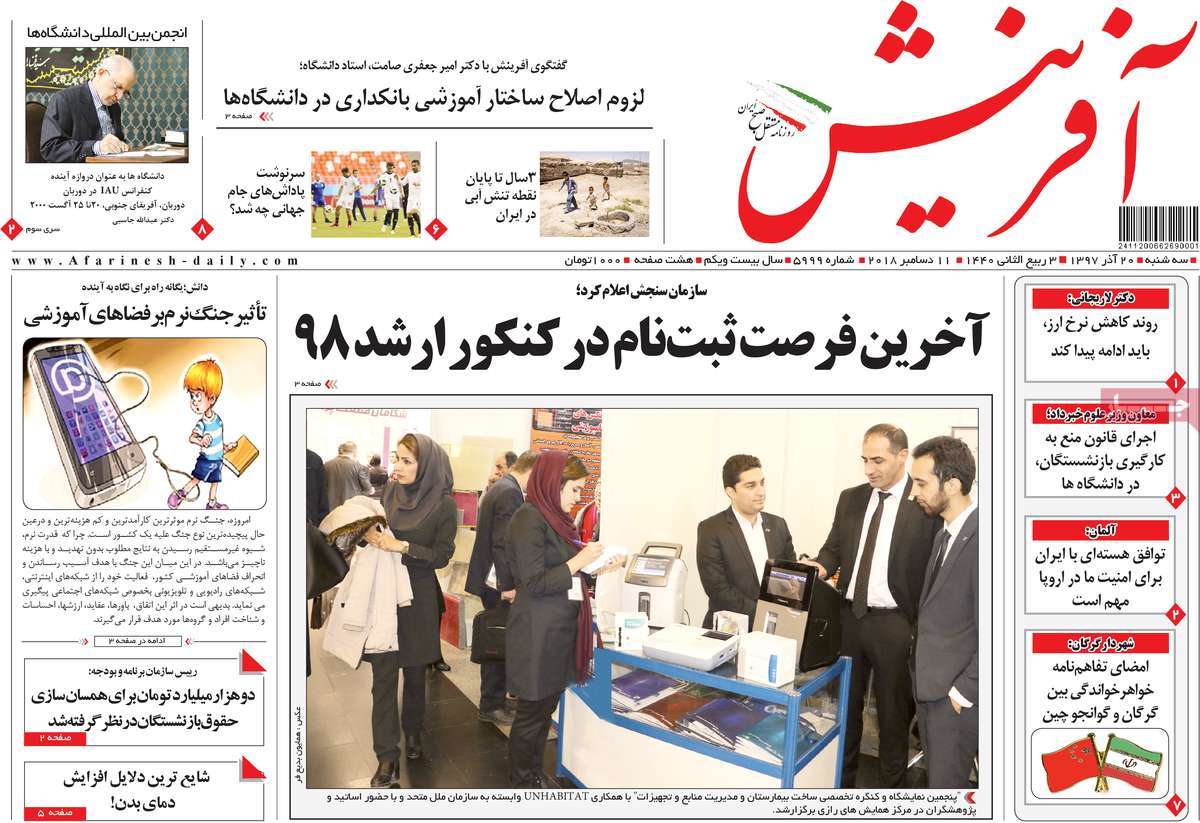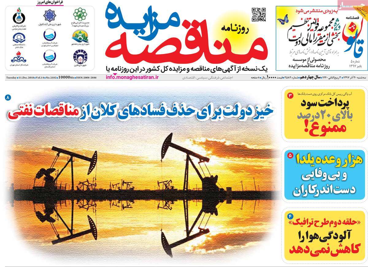 صفحه اول روزنامه های کشوری و استانی؛ سه شنبه 20 آذرماه 1397 /تصاویر