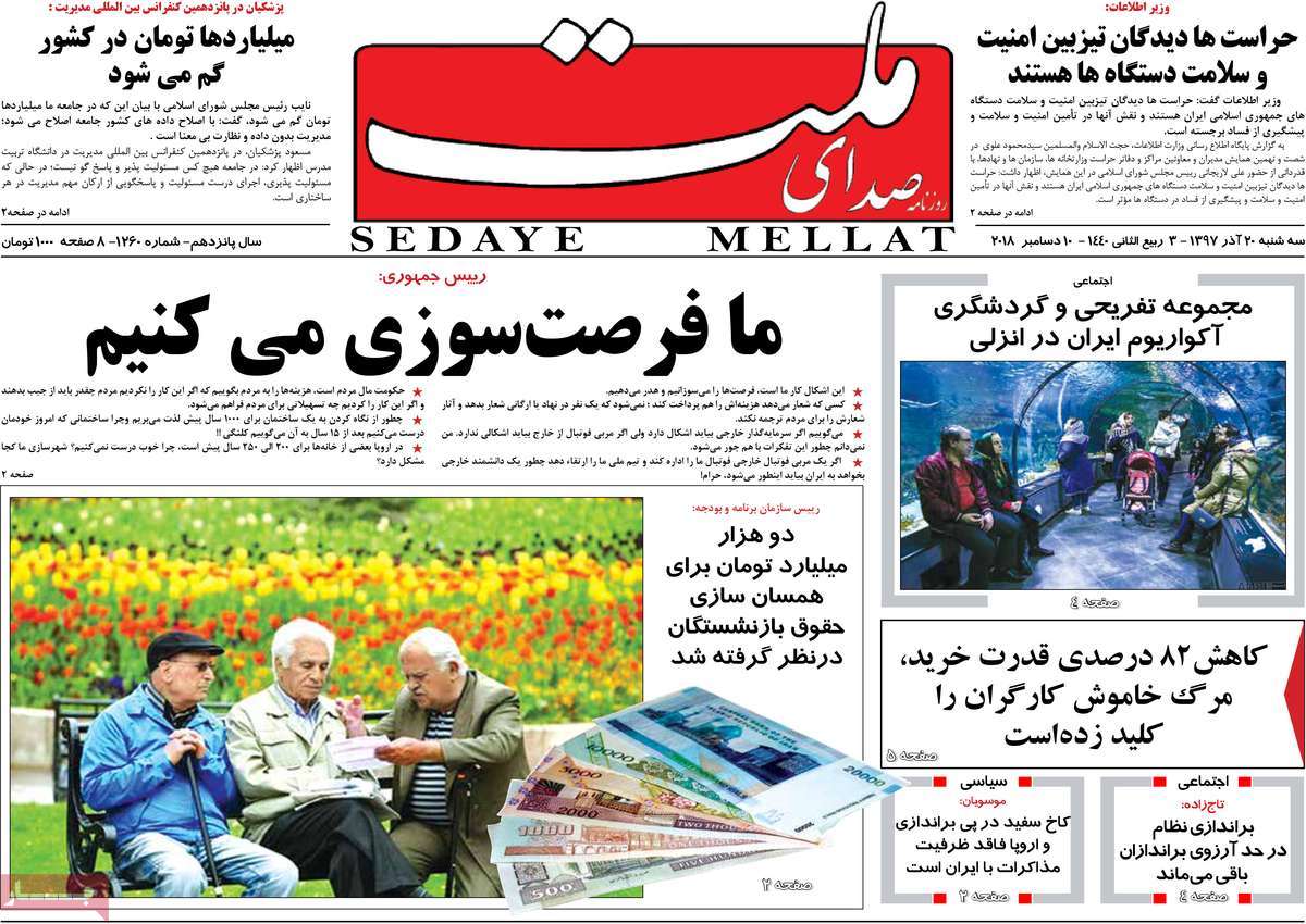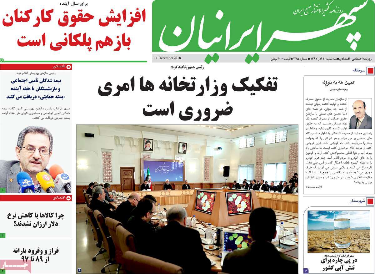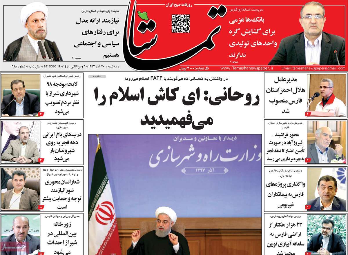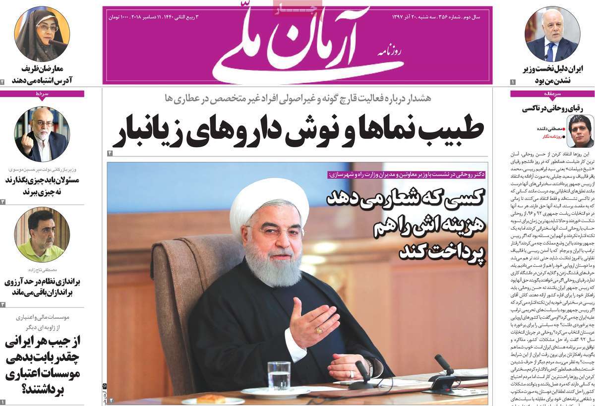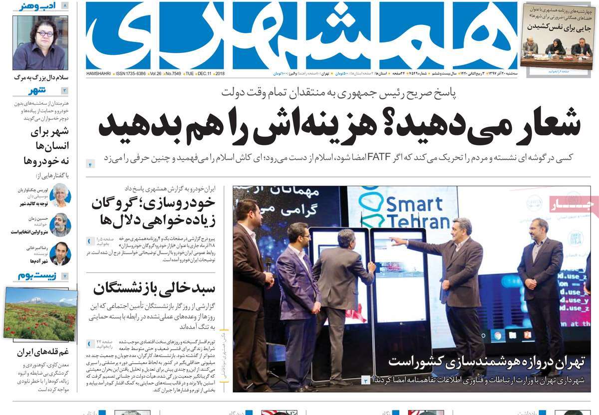 صفحه اول روزنامه های کشوری و استانی؛ سه شنبه 20 آذرماه 1397 /تصاویر