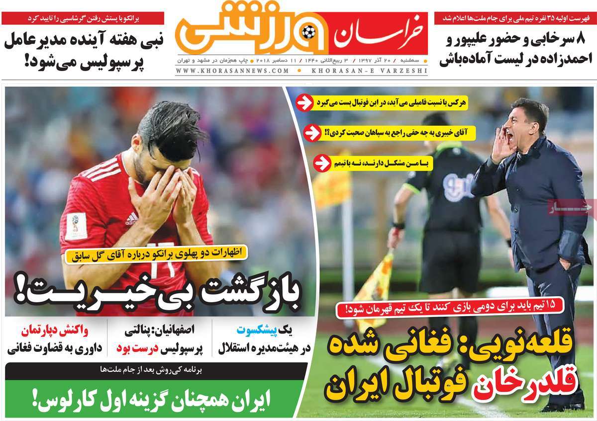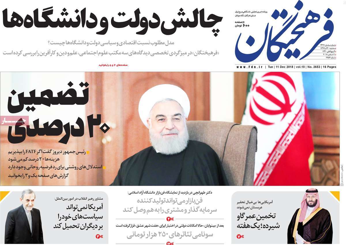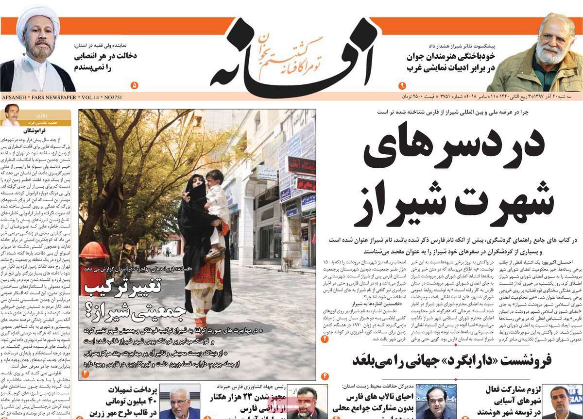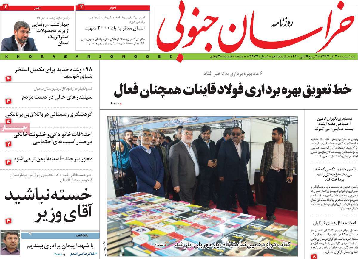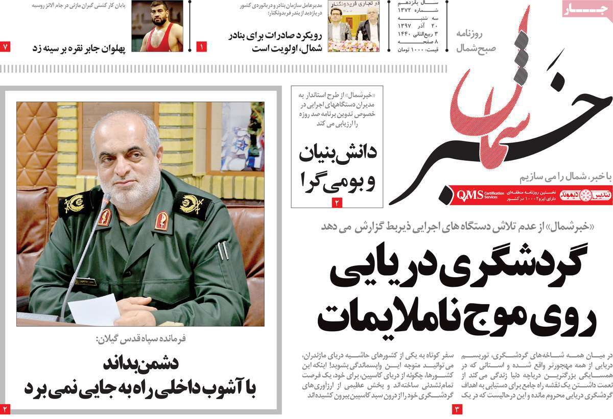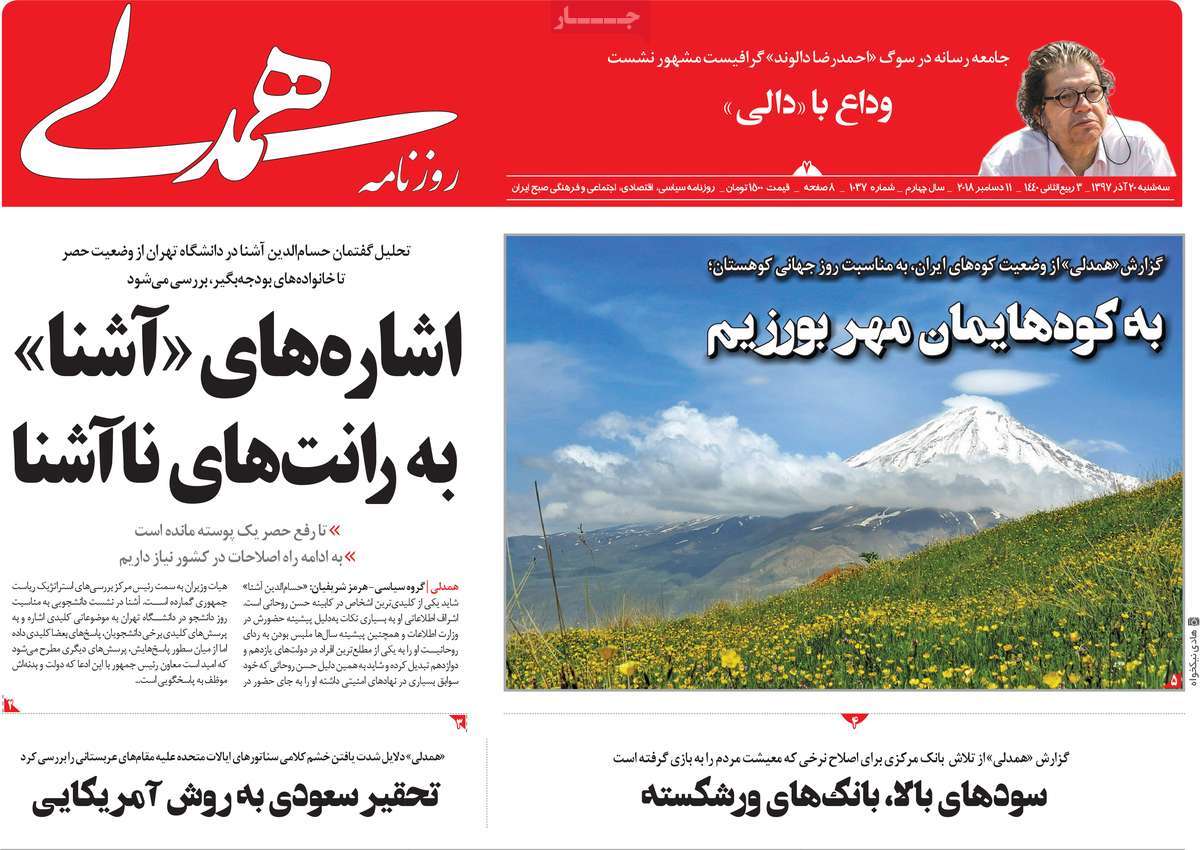 صفحه اول روزنامه های کشوری و استانی؛ سه شنبه 20 آذرماه 1397 /تصاویر