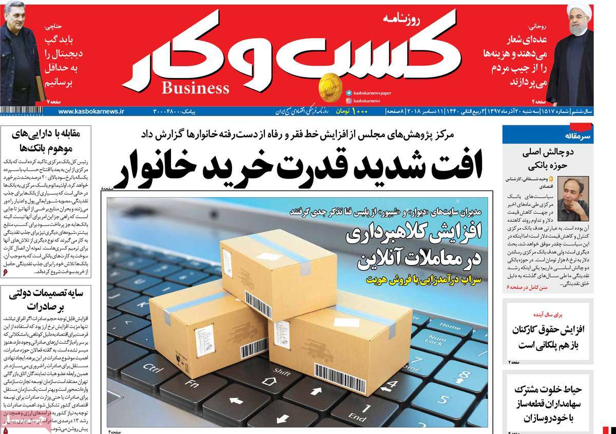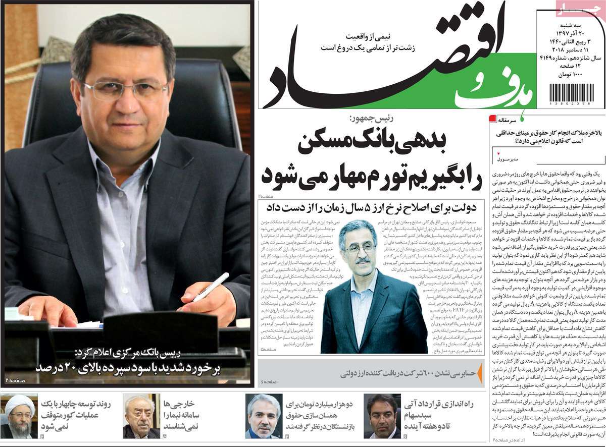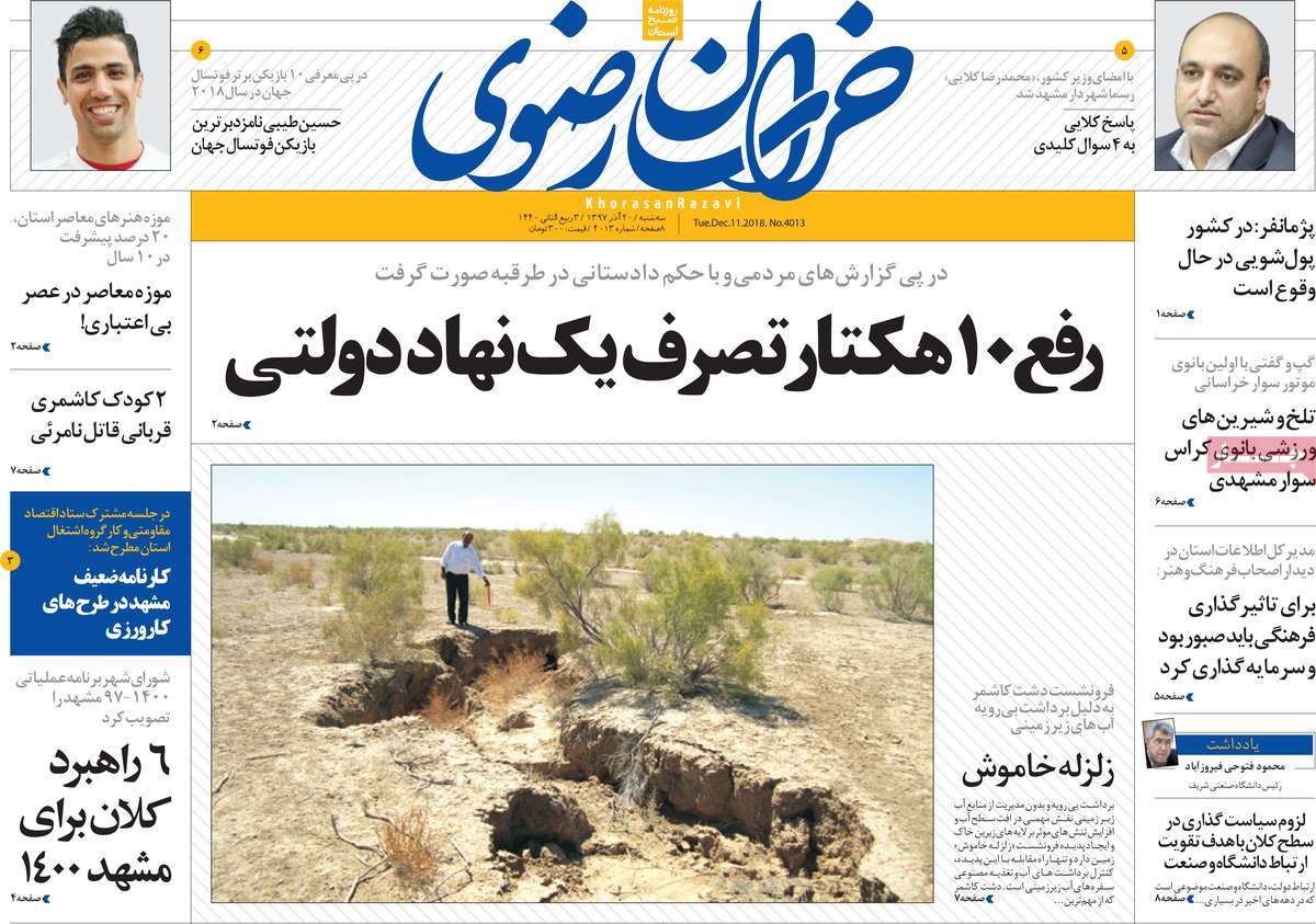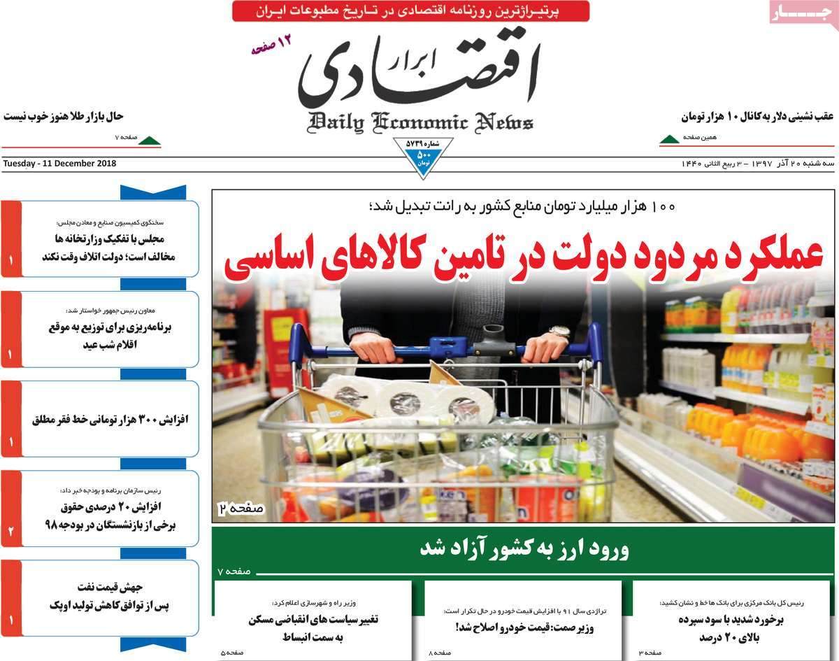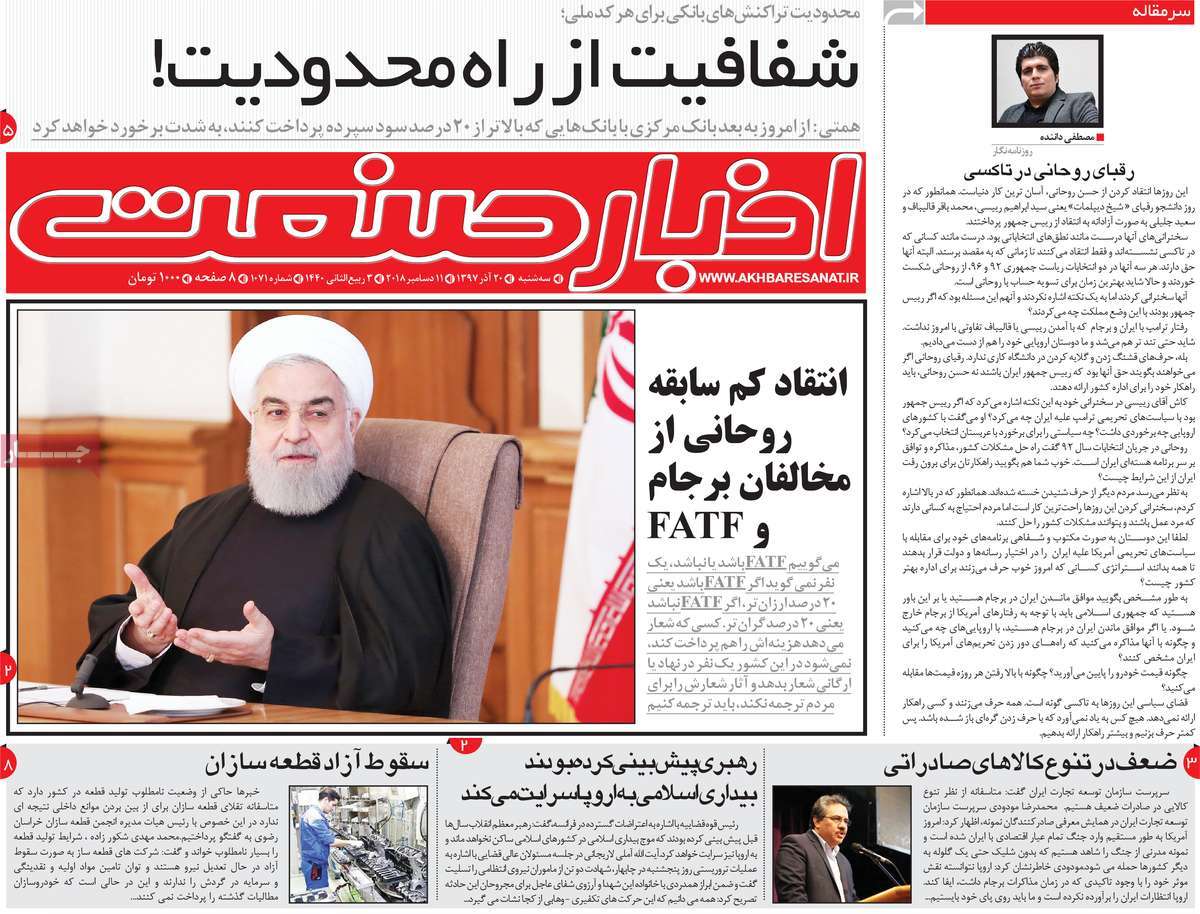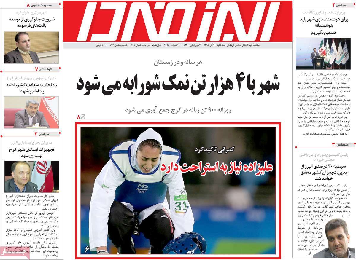 صفحه اول روزنامه های کشوری و استانی؛ سه شنبه 20 آذرماه 1397 /تصاویر