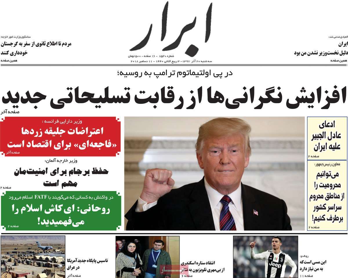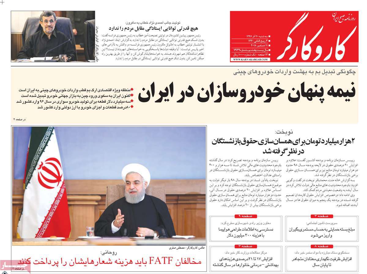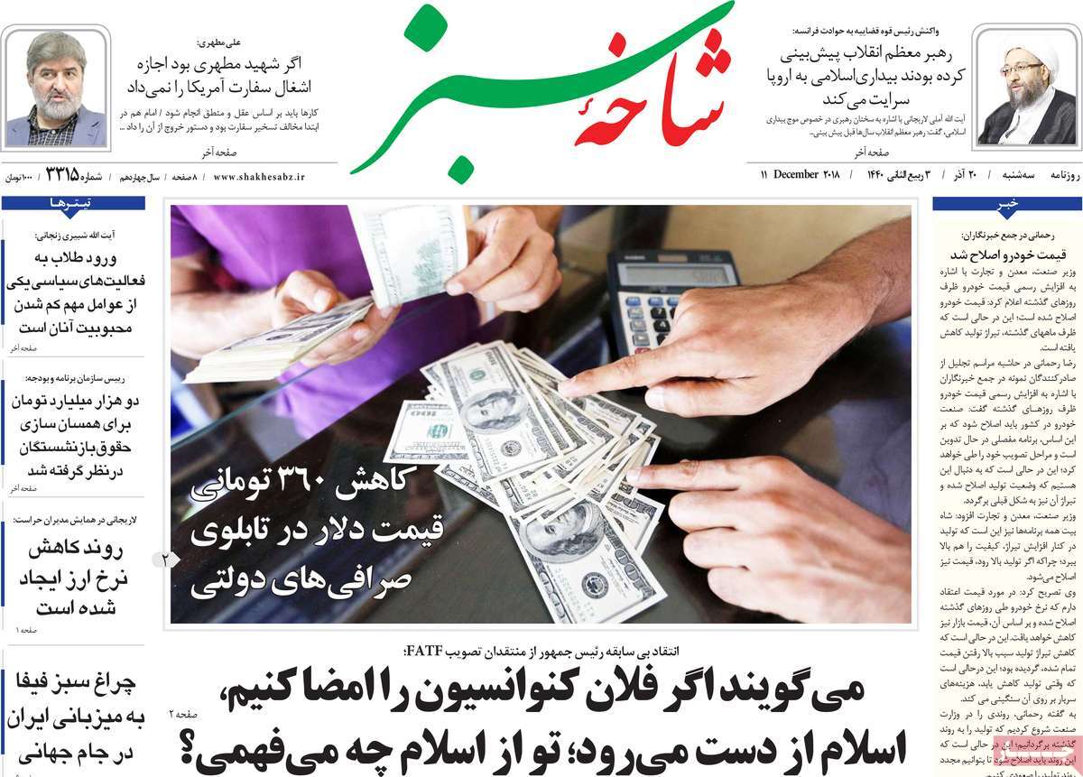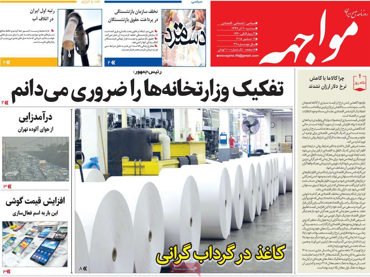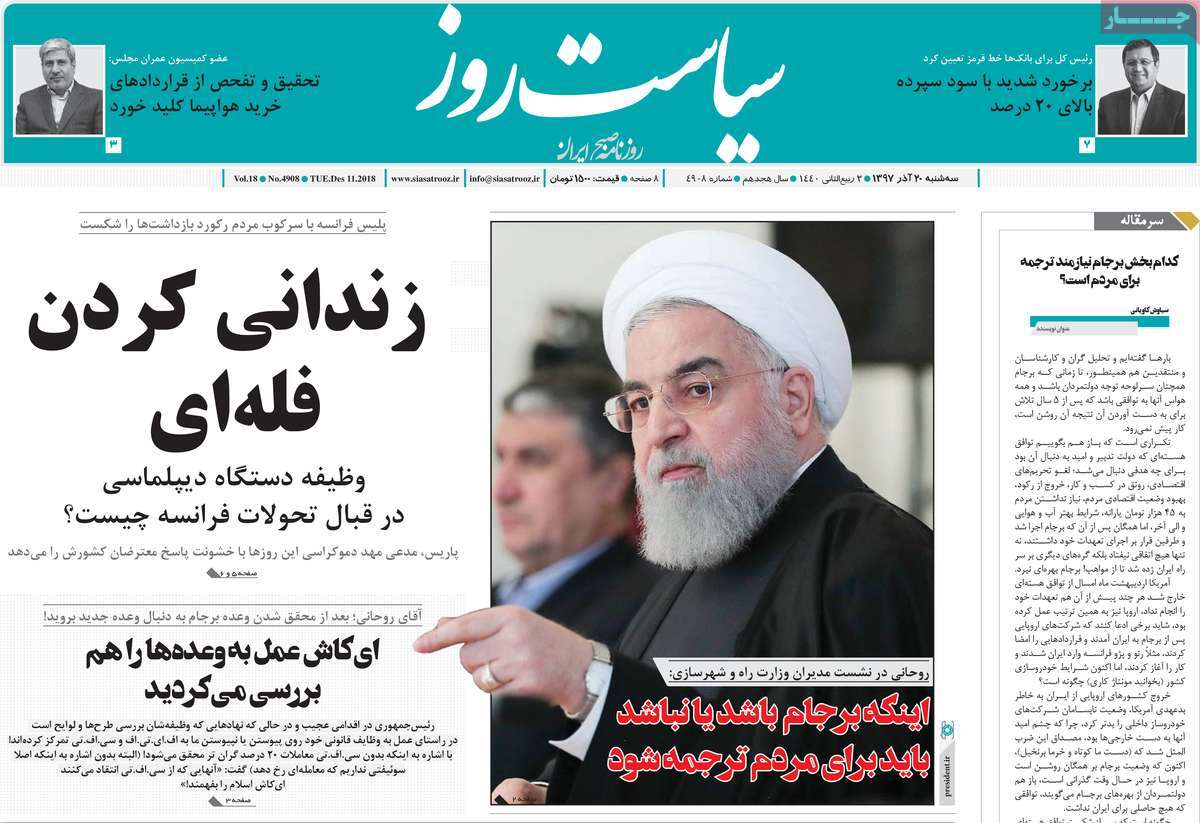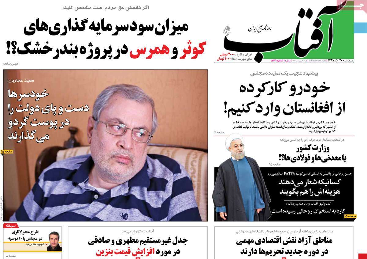 صفحه اول روزنامه های کشوری و استانی؛ سه شنبه 20 آذرماه 1397 /تصاویر