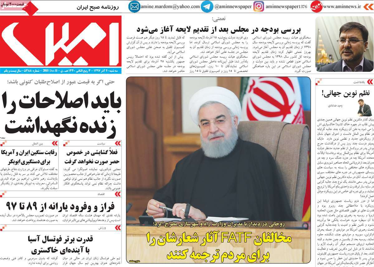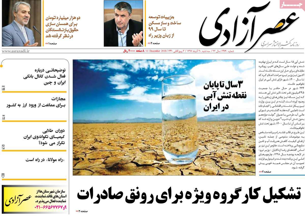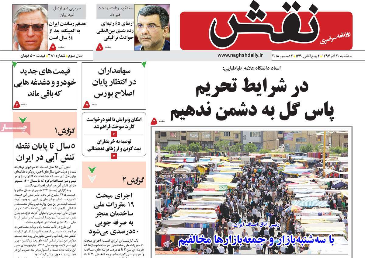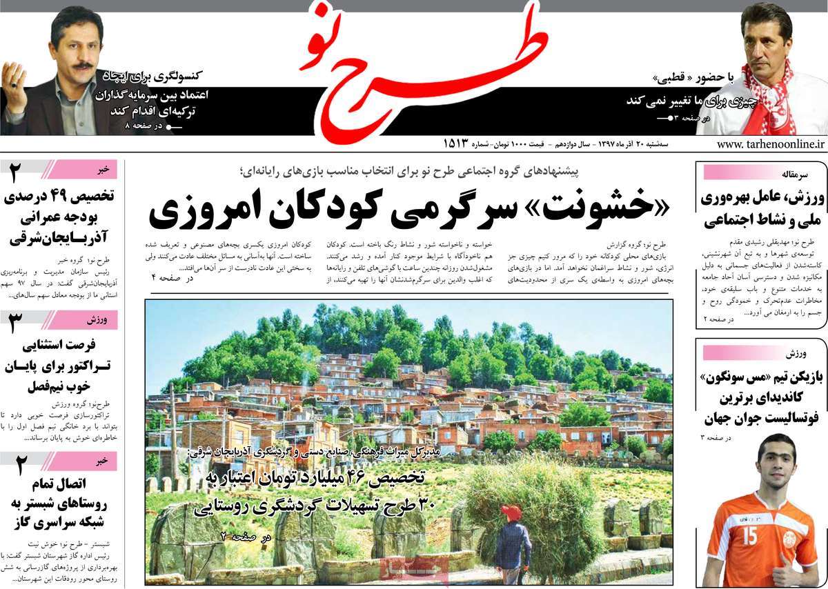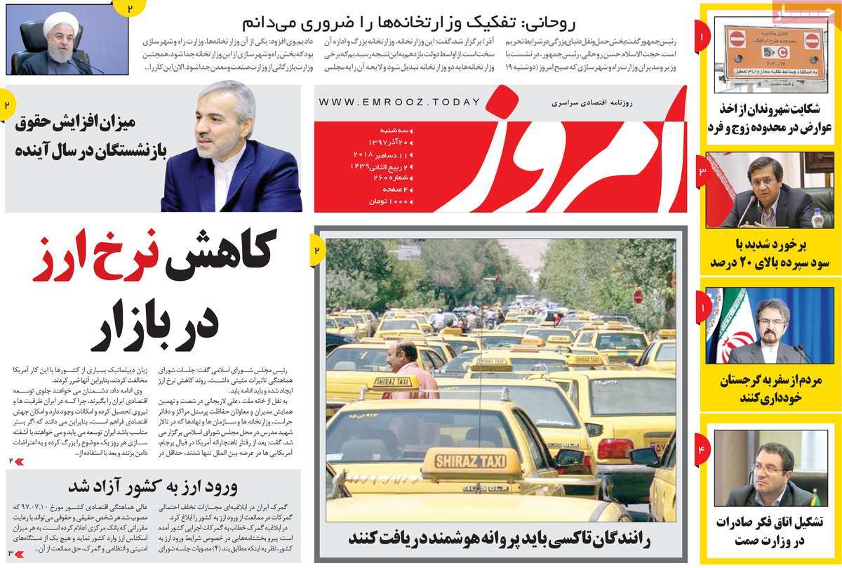 صفحه اول روزنامه های کشوری و استانی؛ سه شنبه 20 آذرماه 1397 /تصاویر