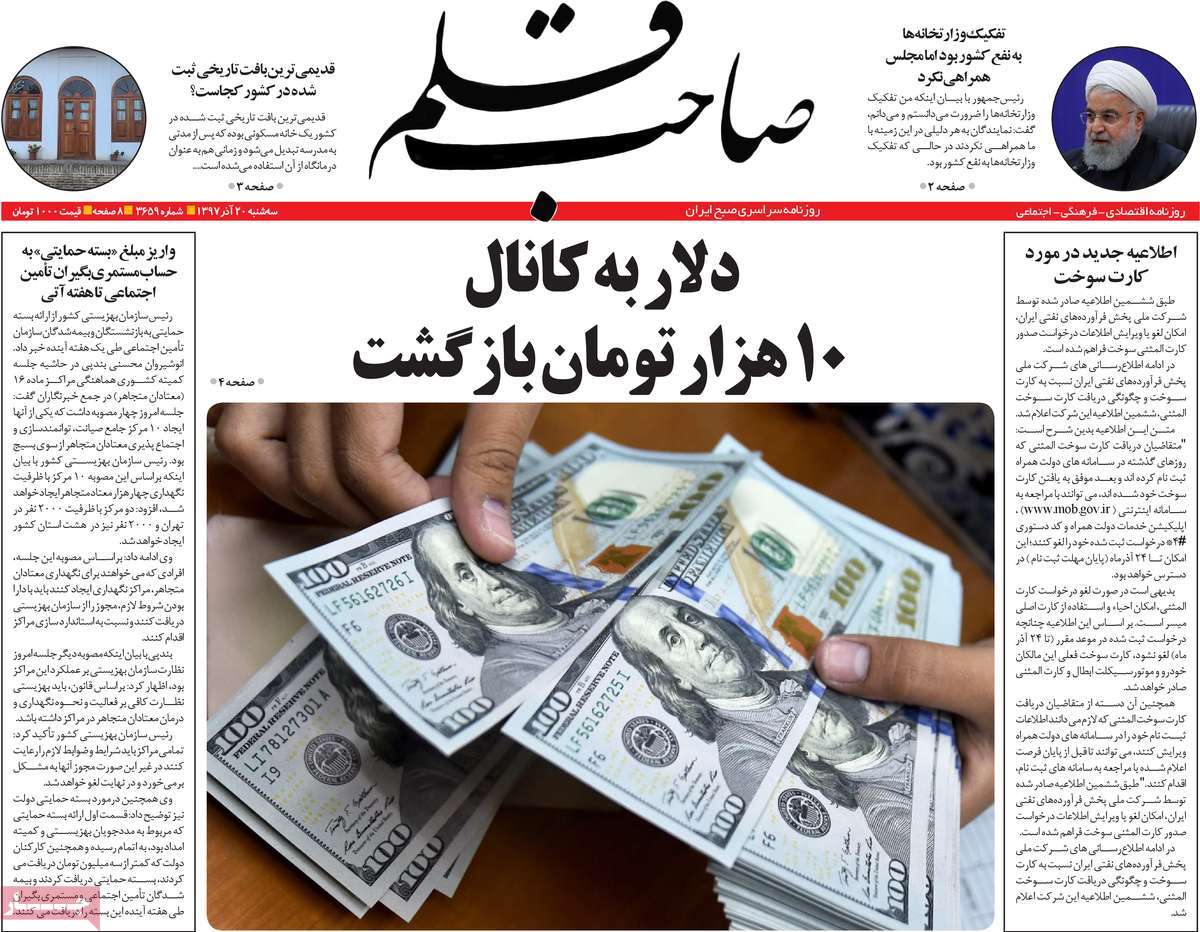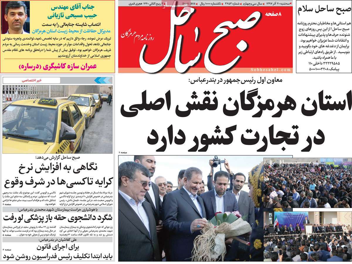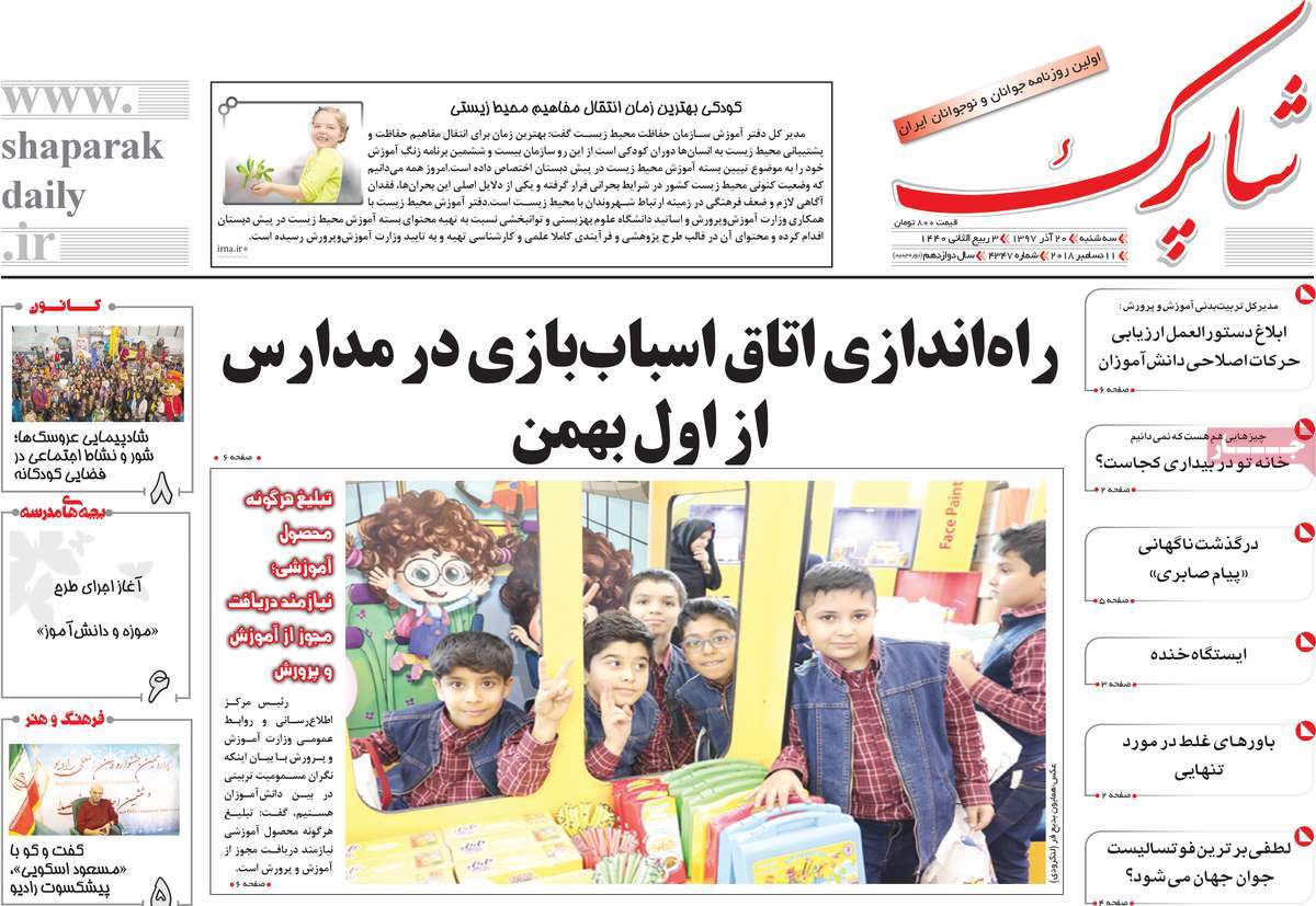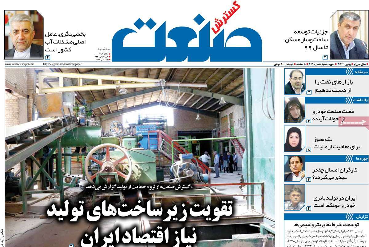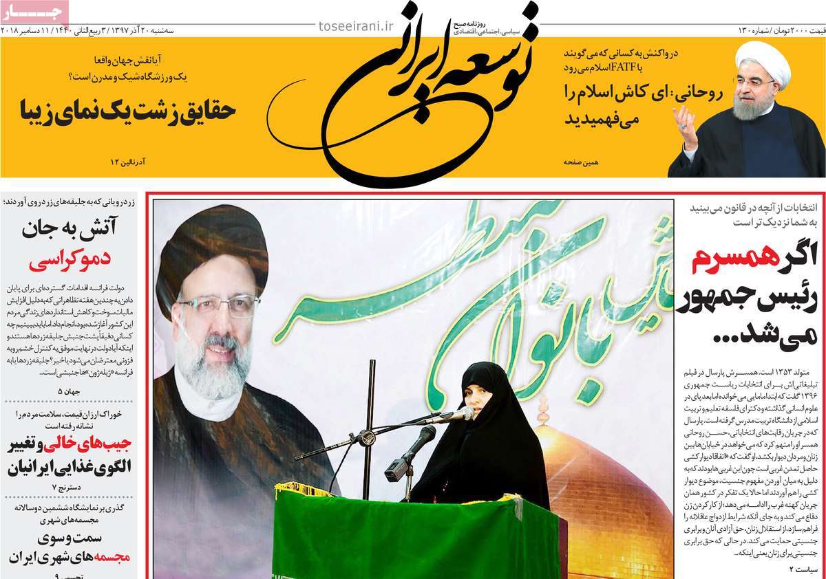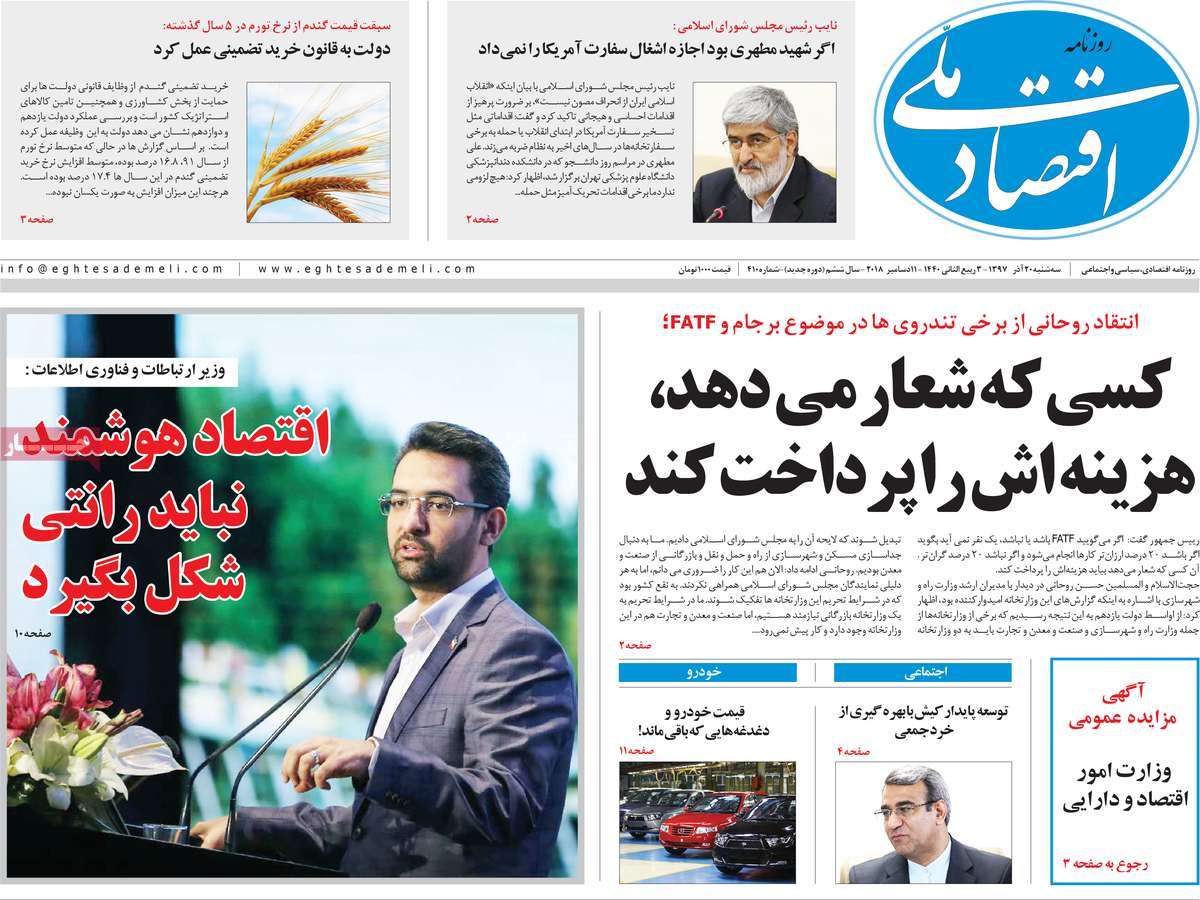 صفحه اول روزنامه های کشوری و استانی؛ سه شنبه 20 آذرماه 1397 /تصاویر