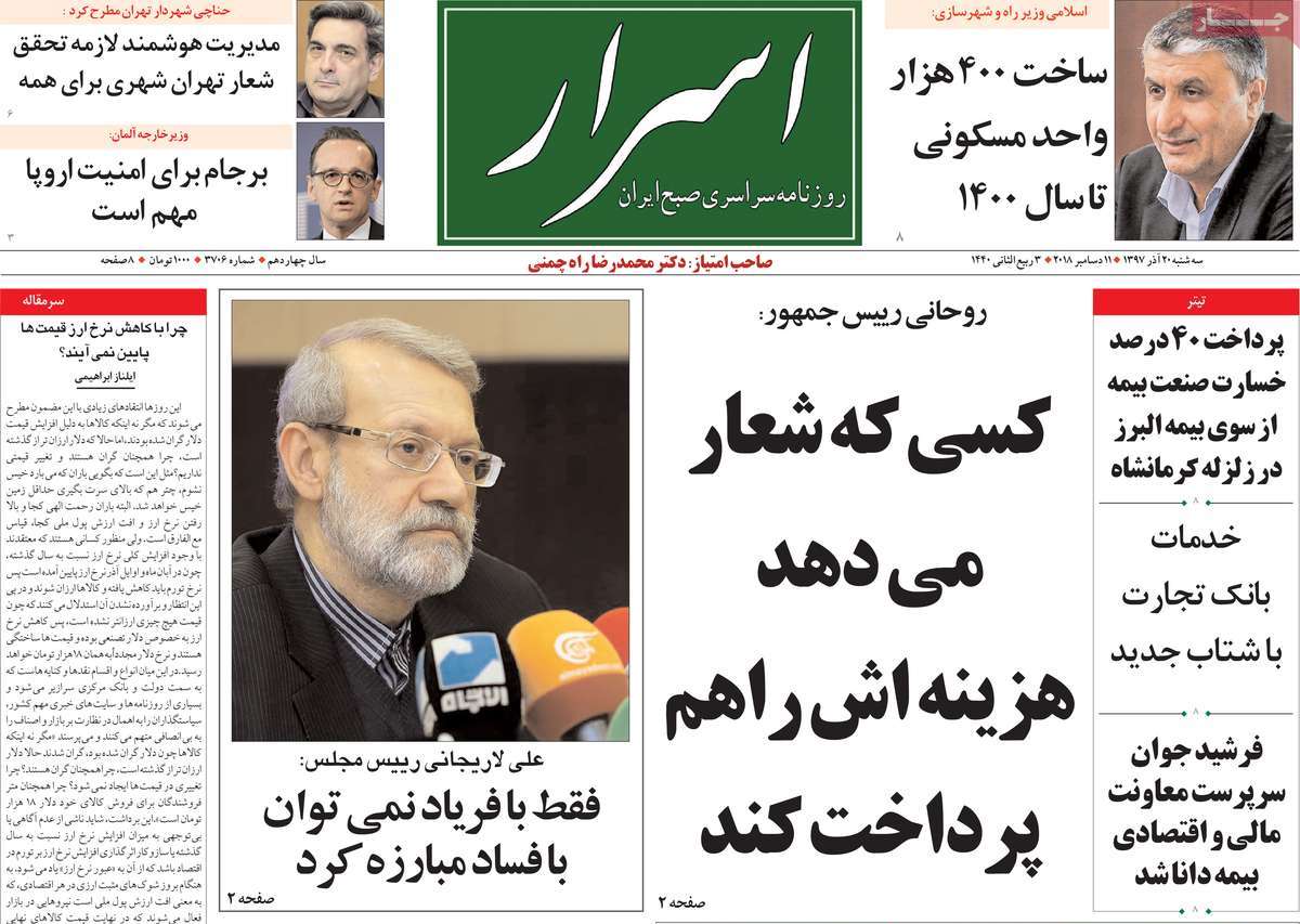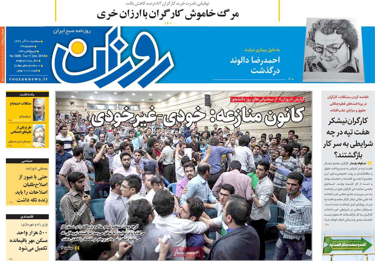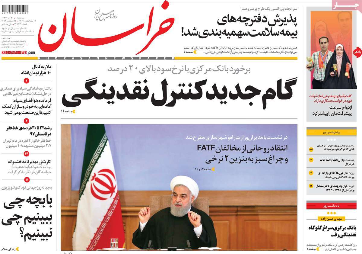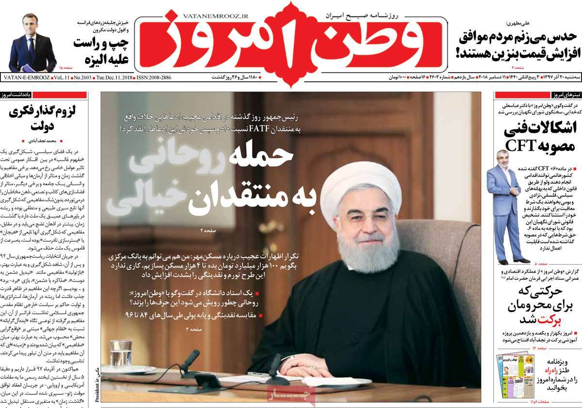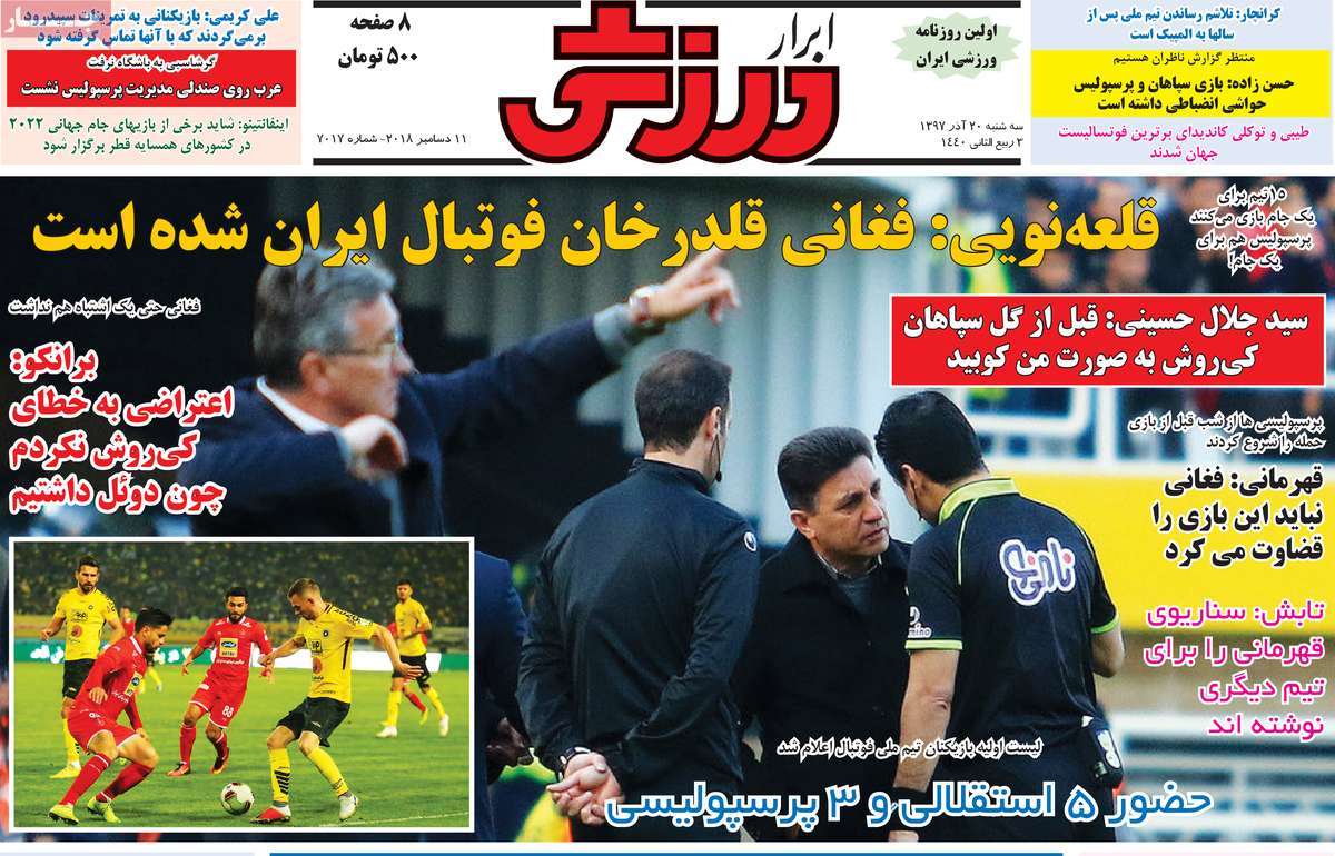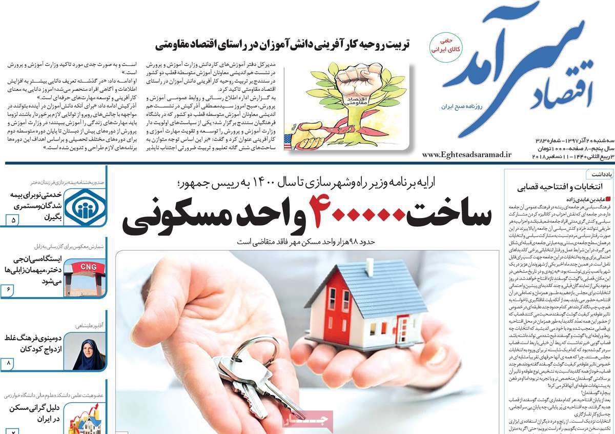 صفحه اول روزنامه های کشوری و استانی؛ سه شنبه 20 آذرماه 1397 /تصاویر