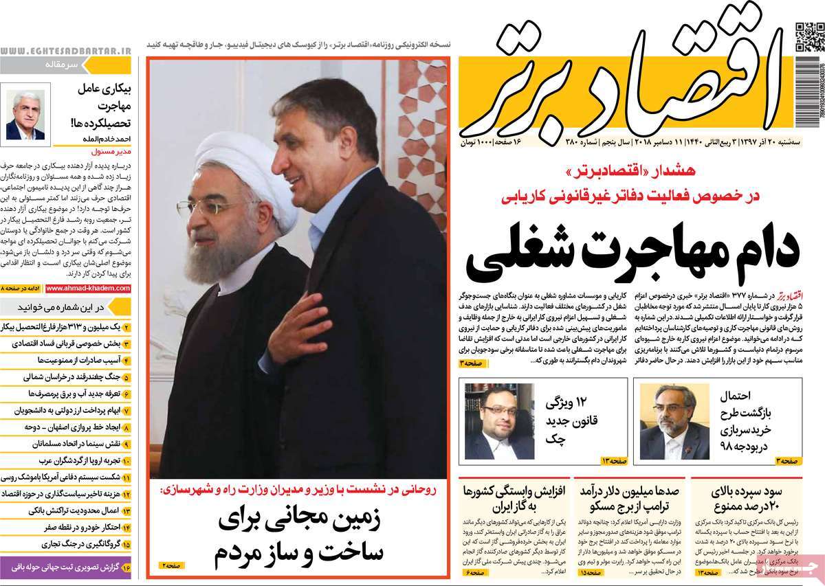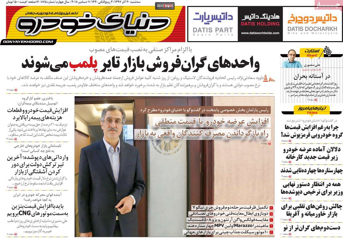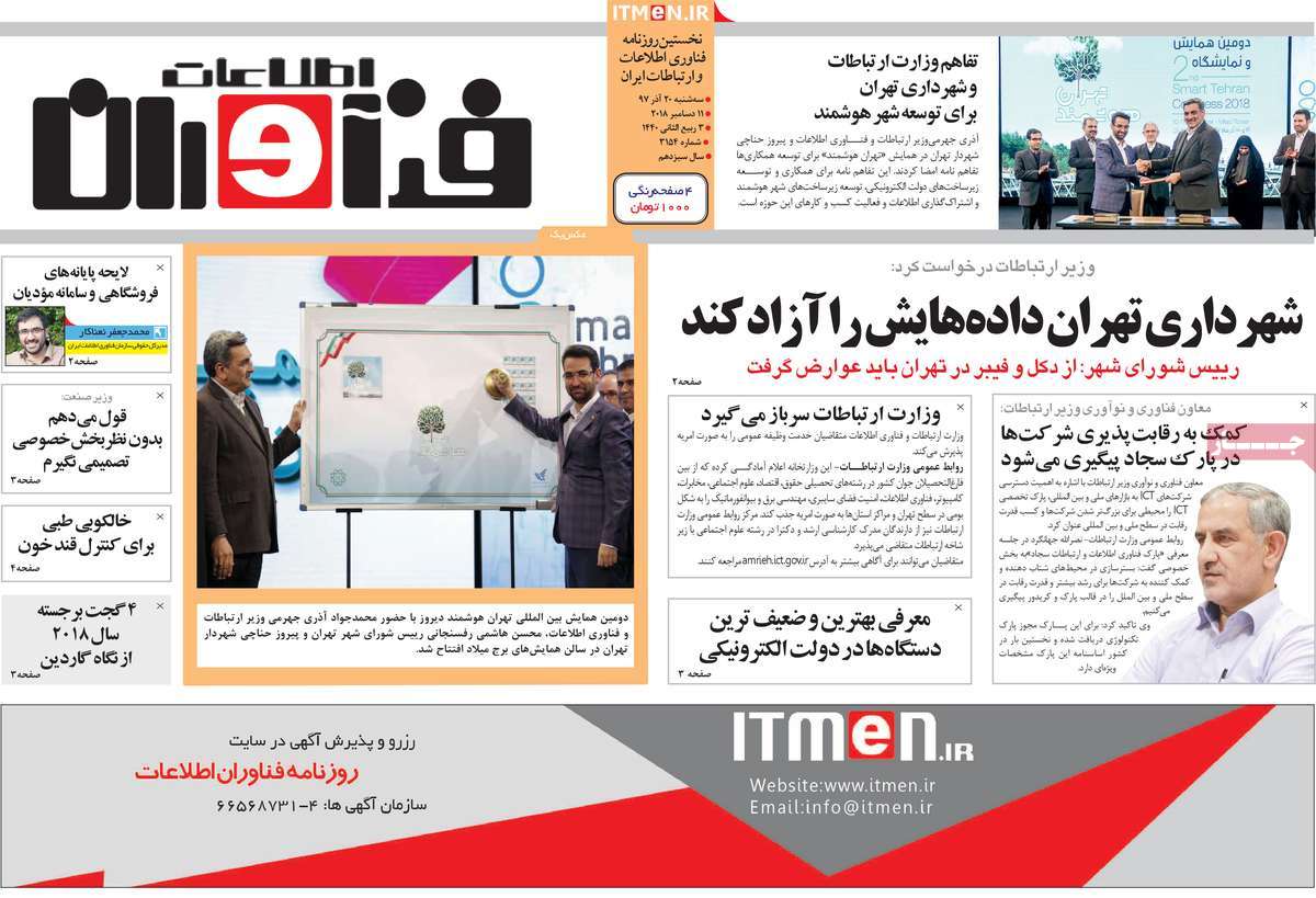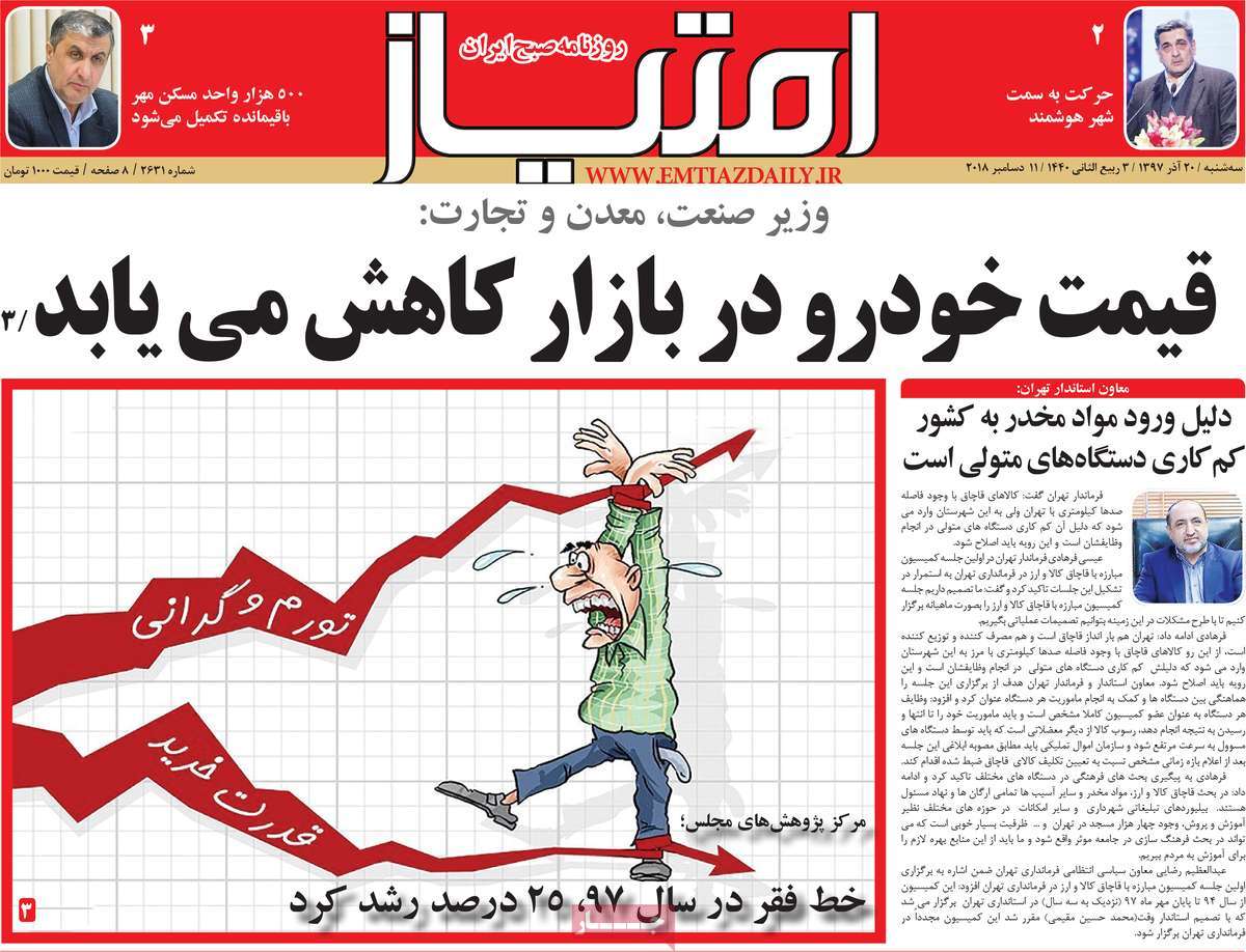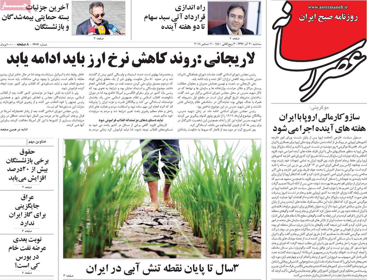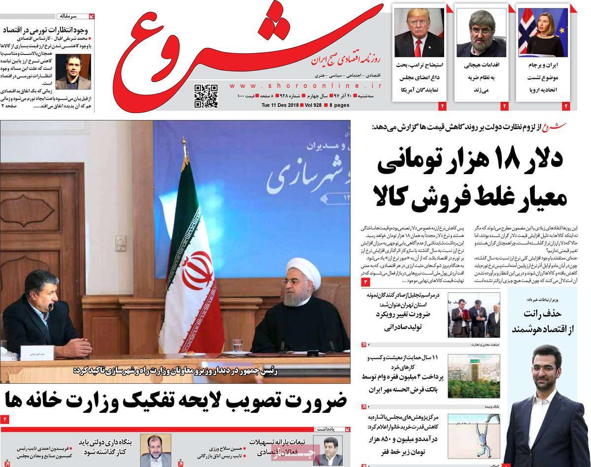 صفحه اول روزنامه های کشوری و استانی؛ سه شنبه 20 آذرماه 1397 /تصاویر