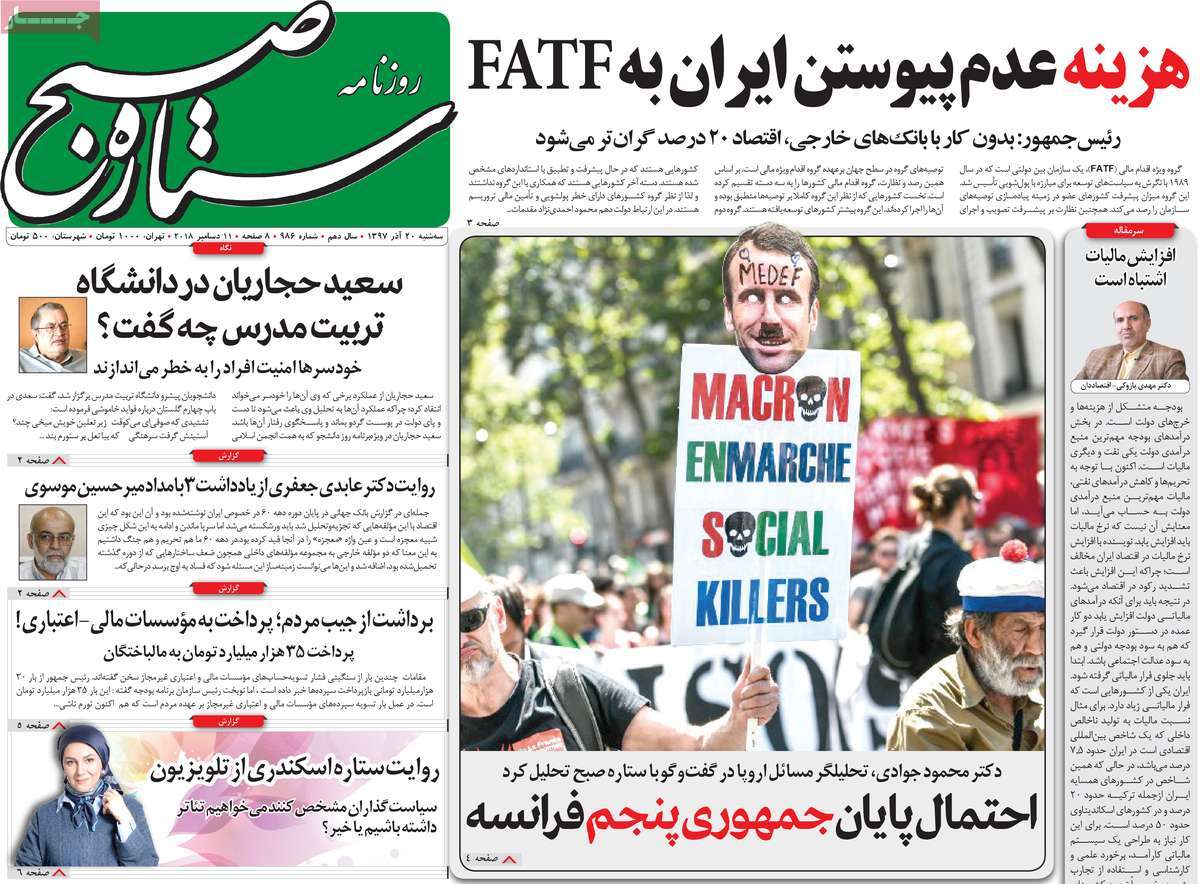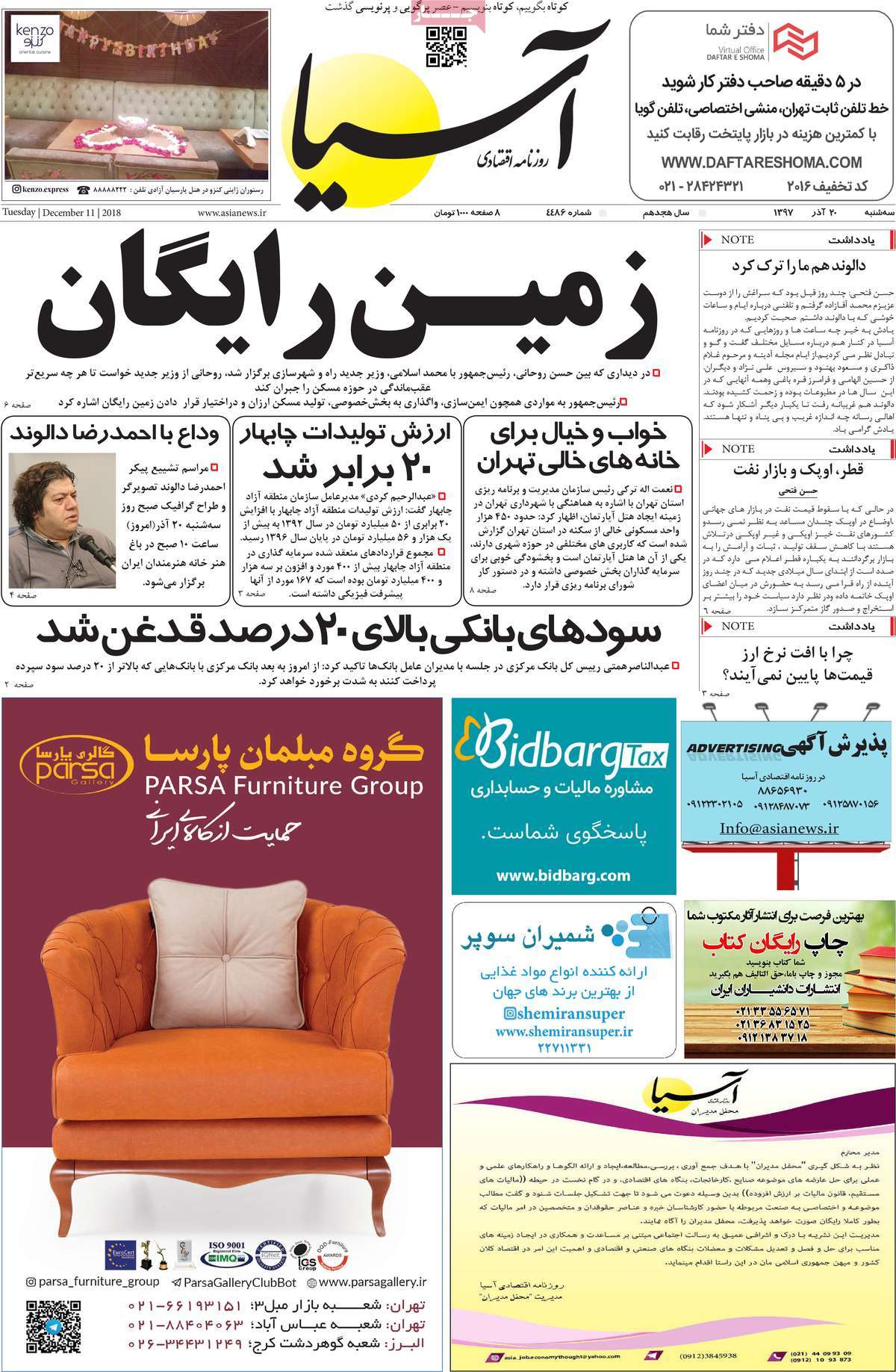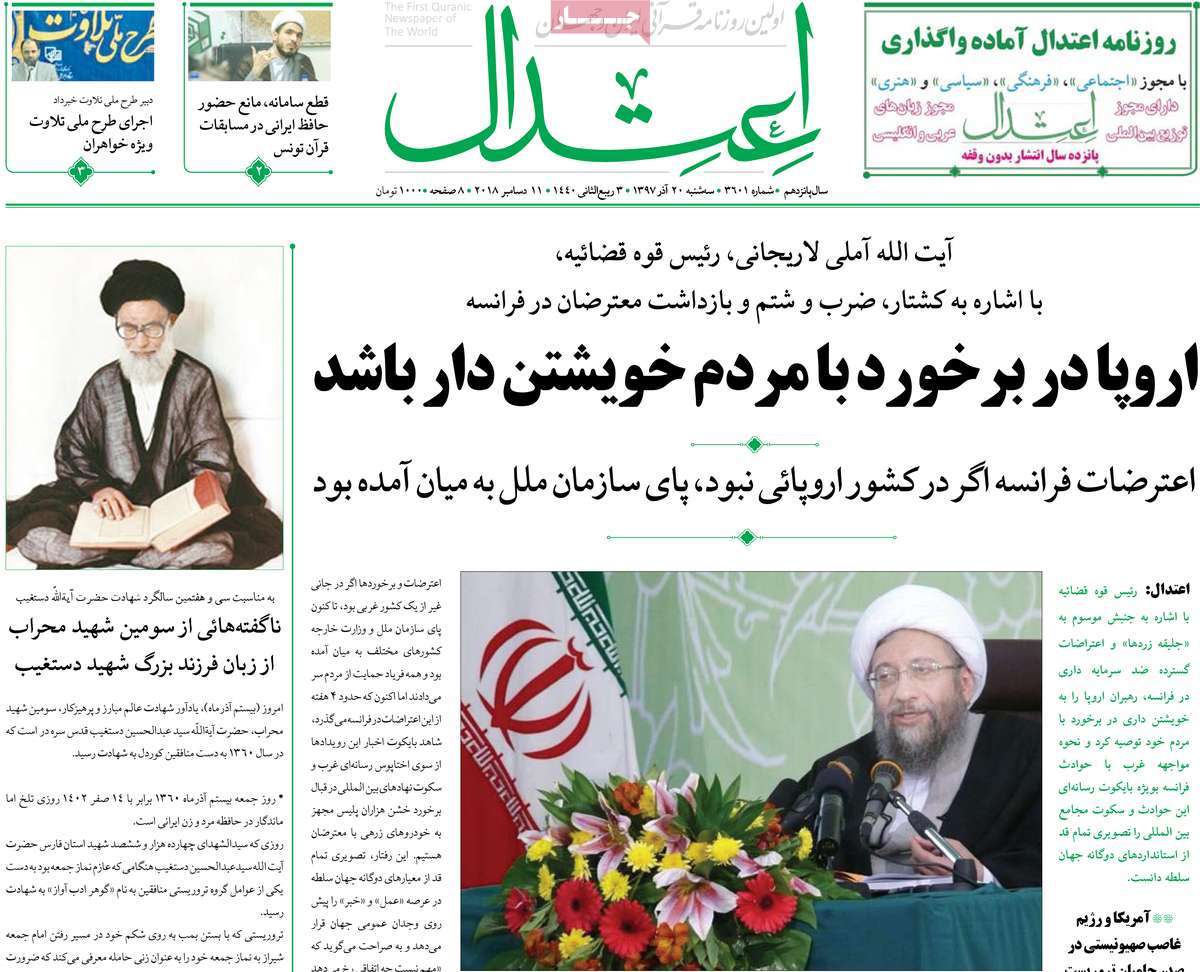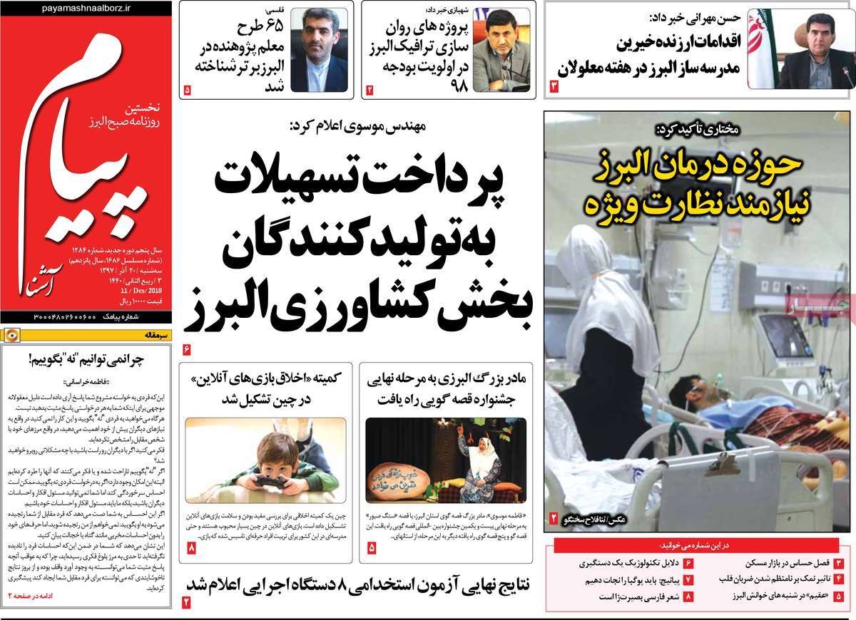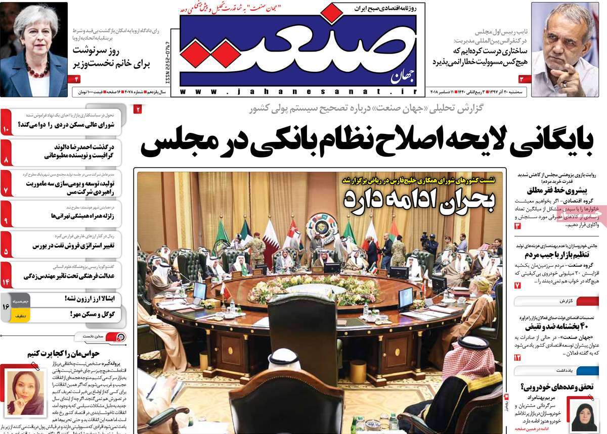 صفحه اول روزنامه های کشوری و استانی؛ سه شنبه 20 آذرماه 1397 /تصاویر