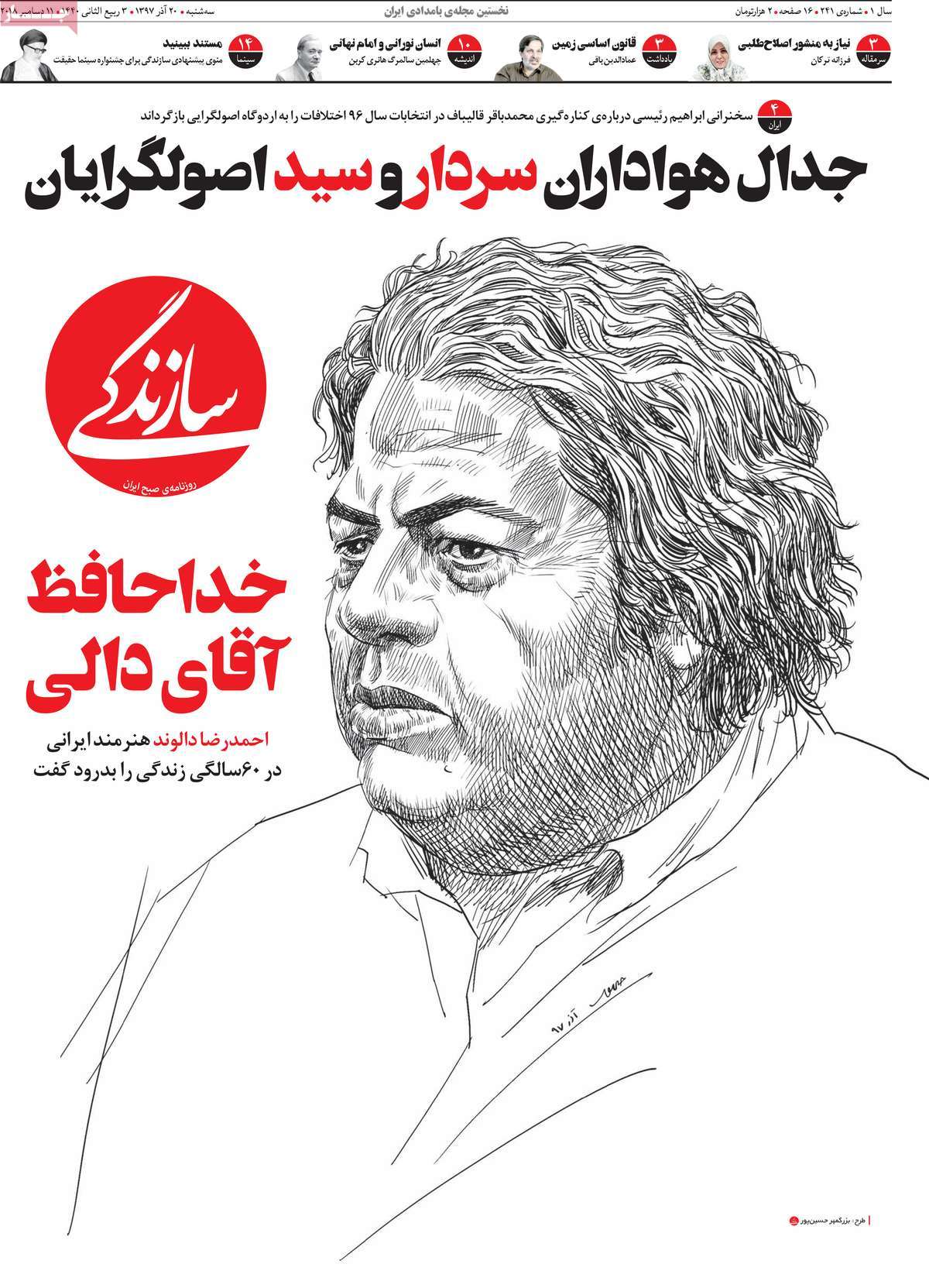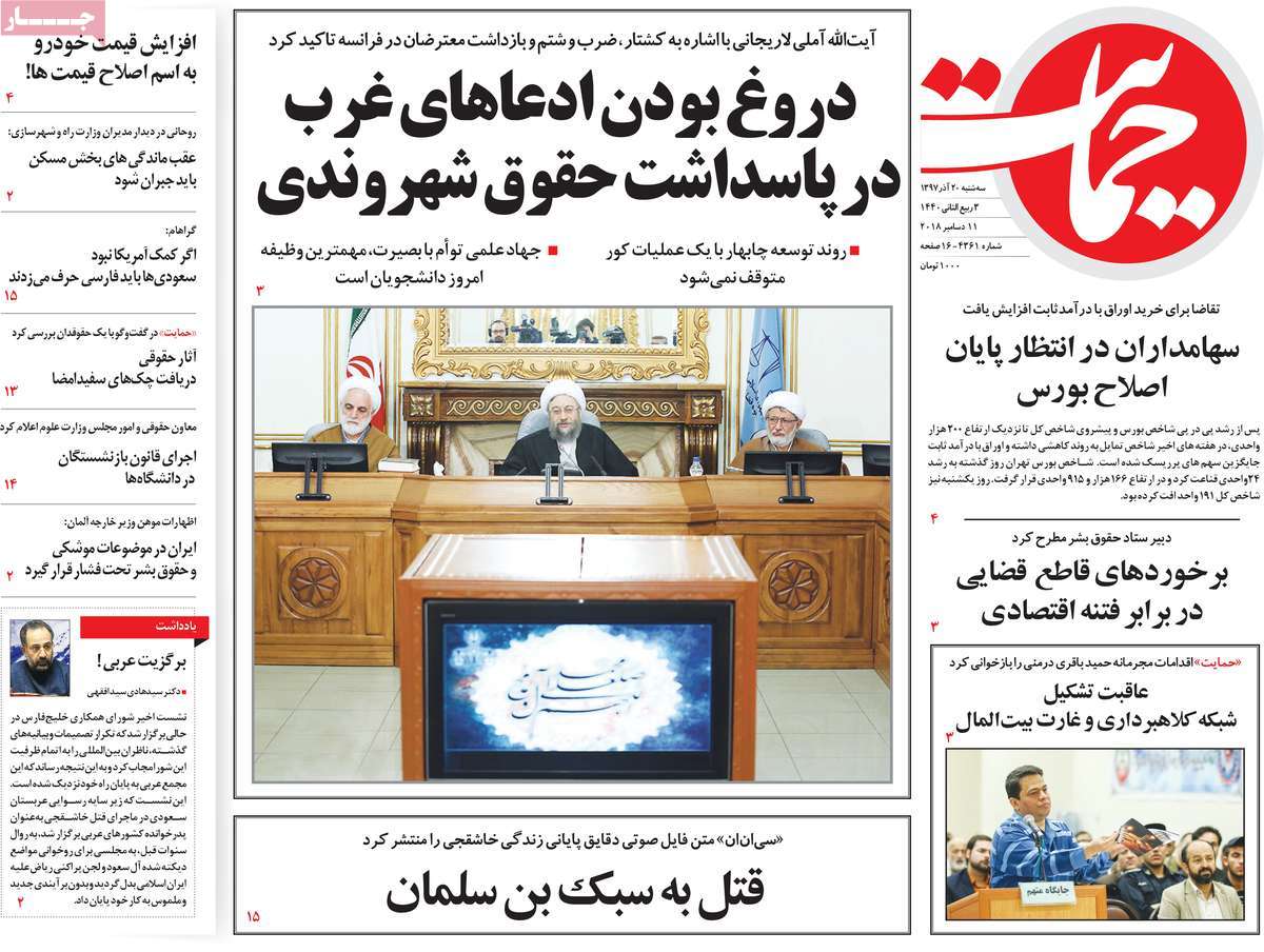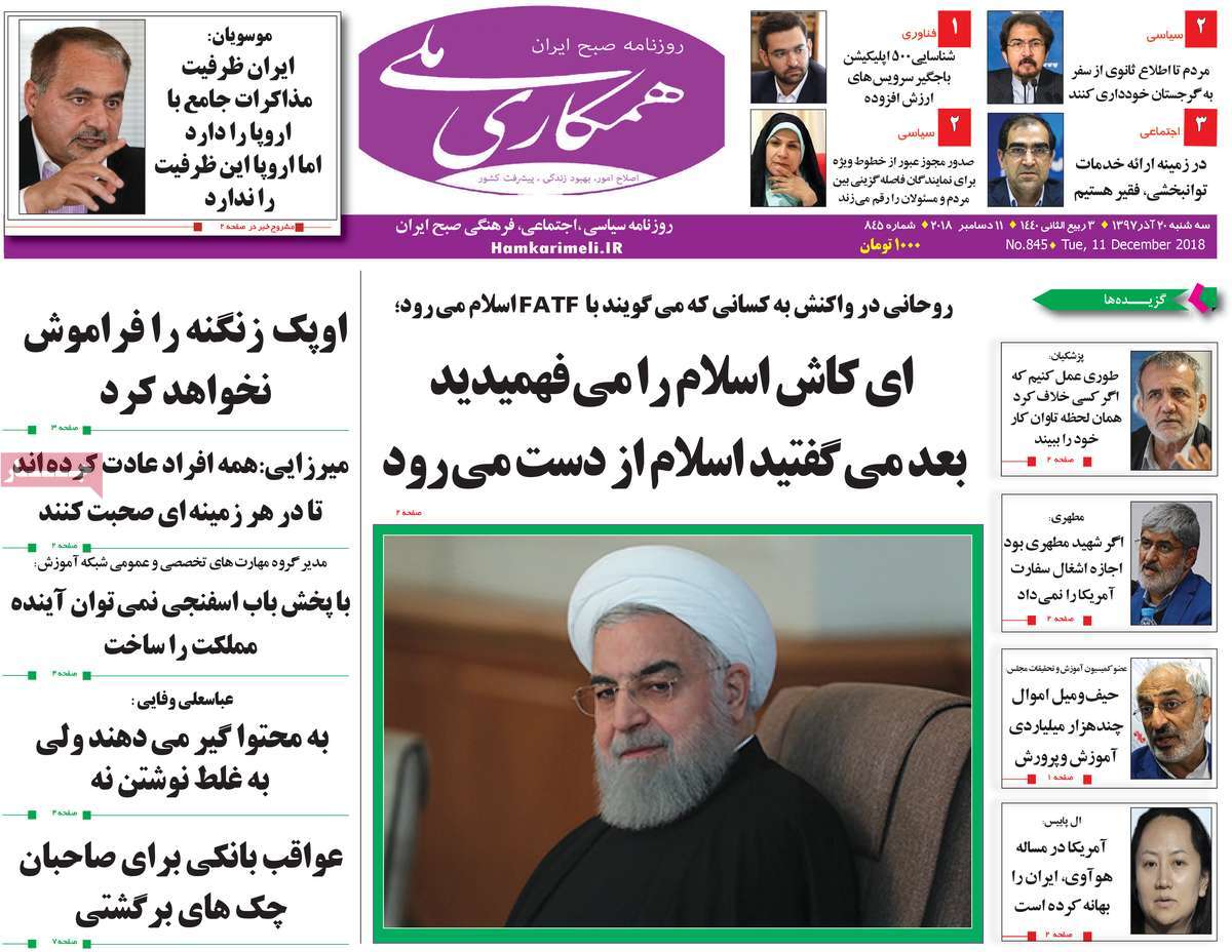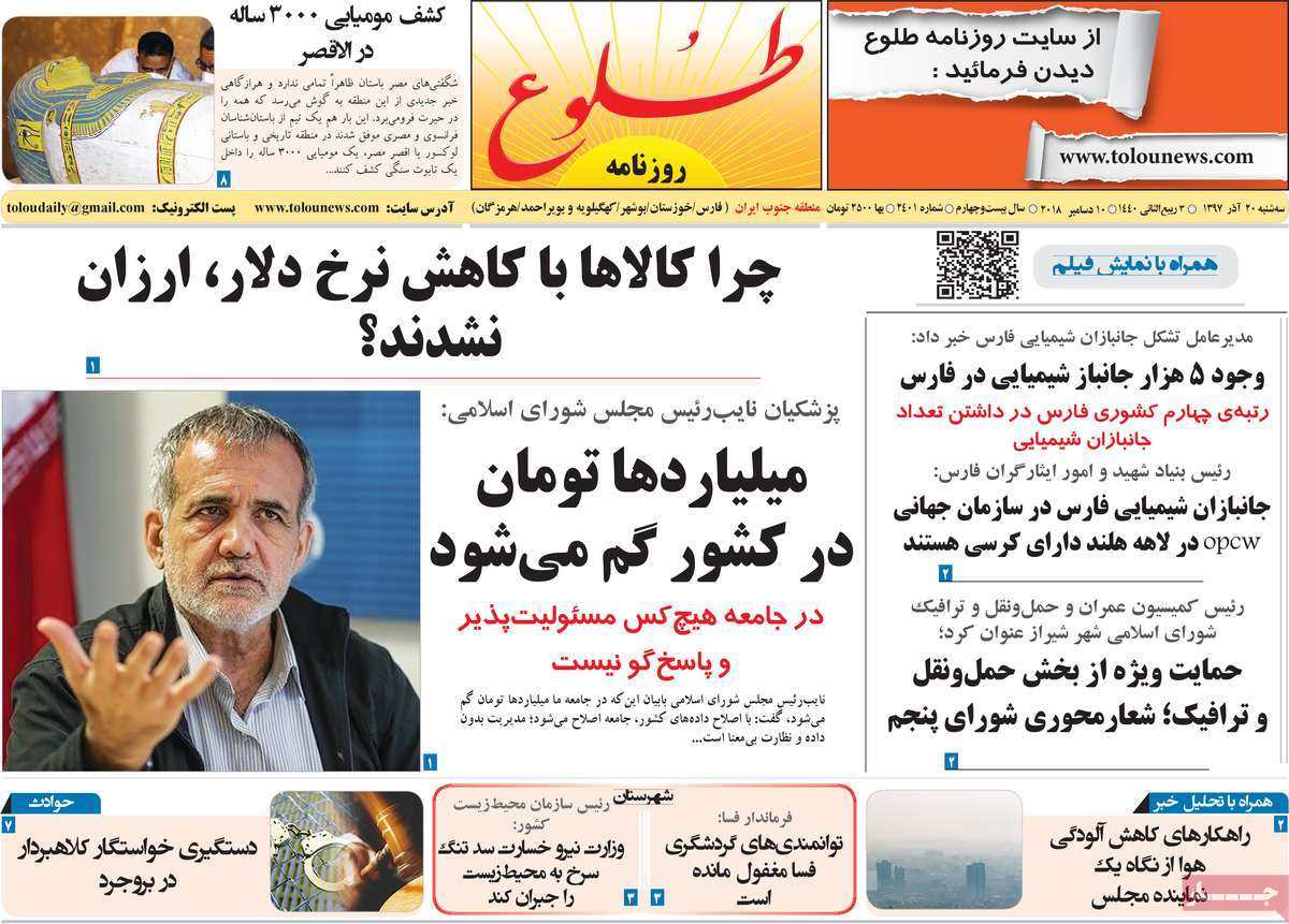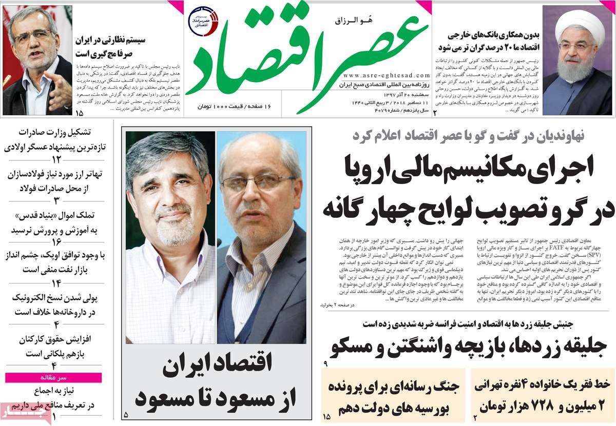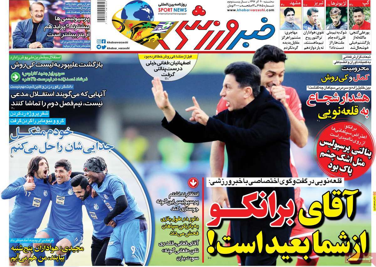 صفحه اول روزنامه های کشوری و استانی؛ سه شنبه 20 آذرماه 1397 /تصاویر
