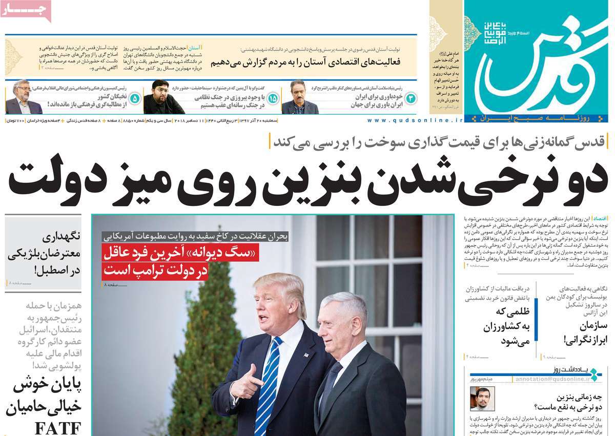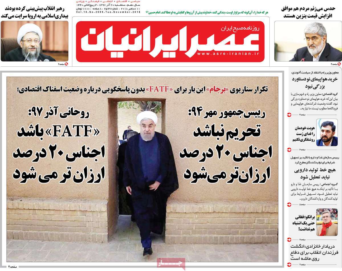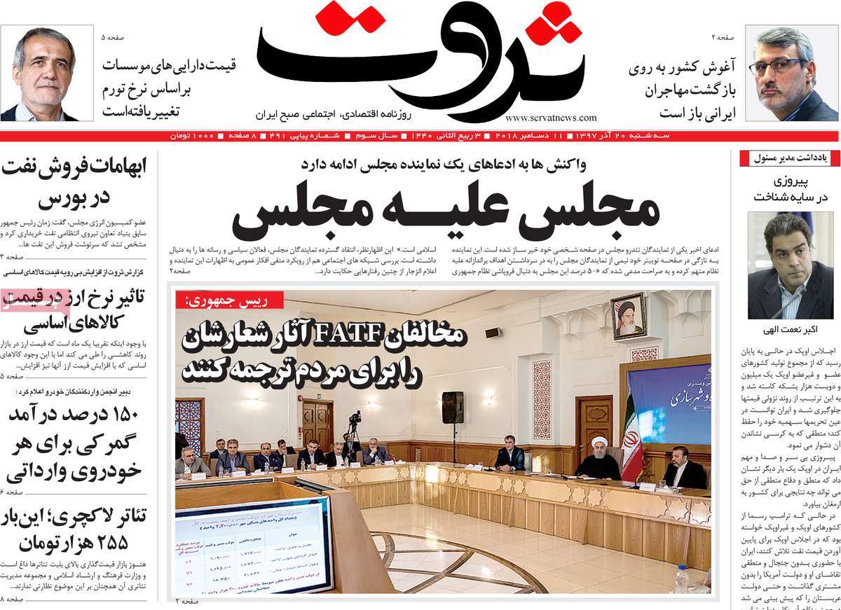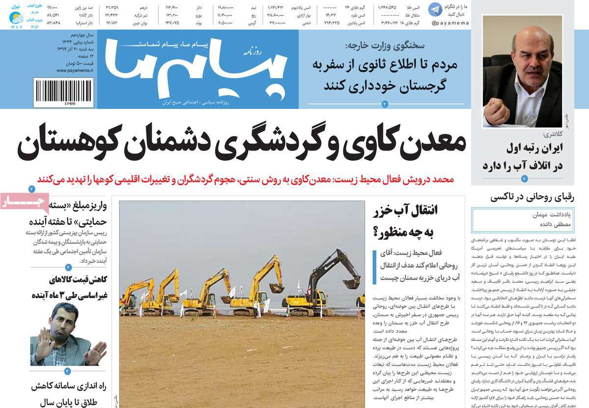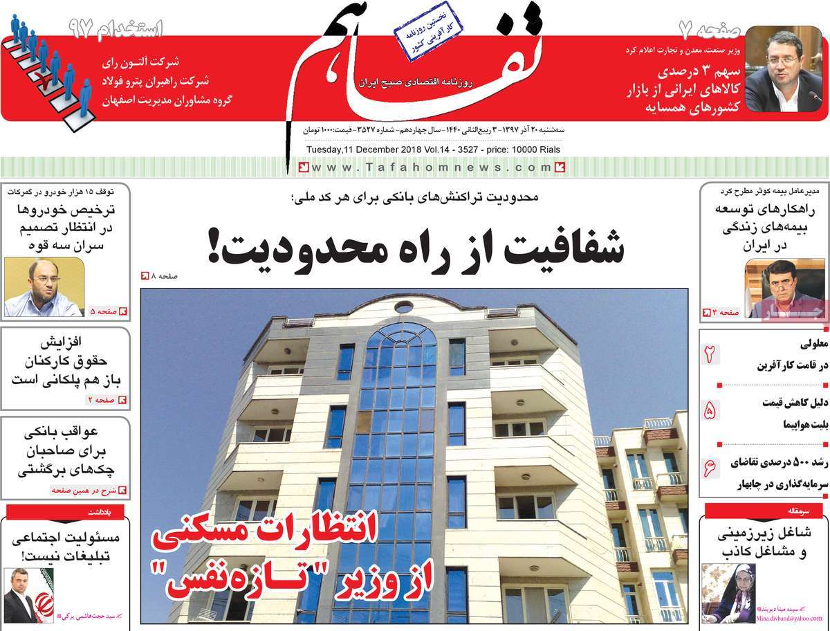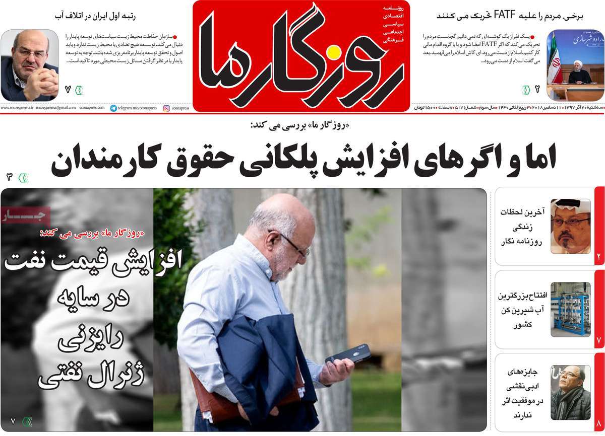 صفحه اول روزنامه های کشوری و استانی؛ سه شنبه 20 آذرماه 1397 /تصاویر