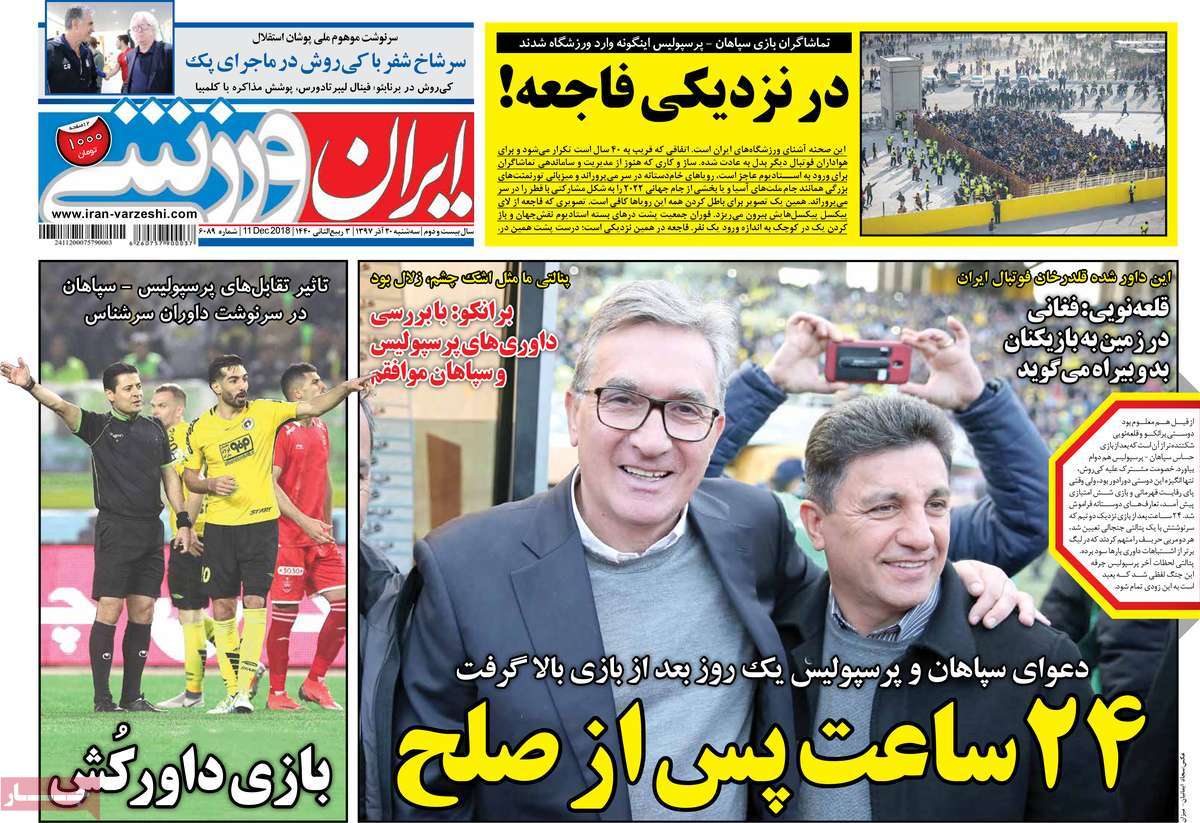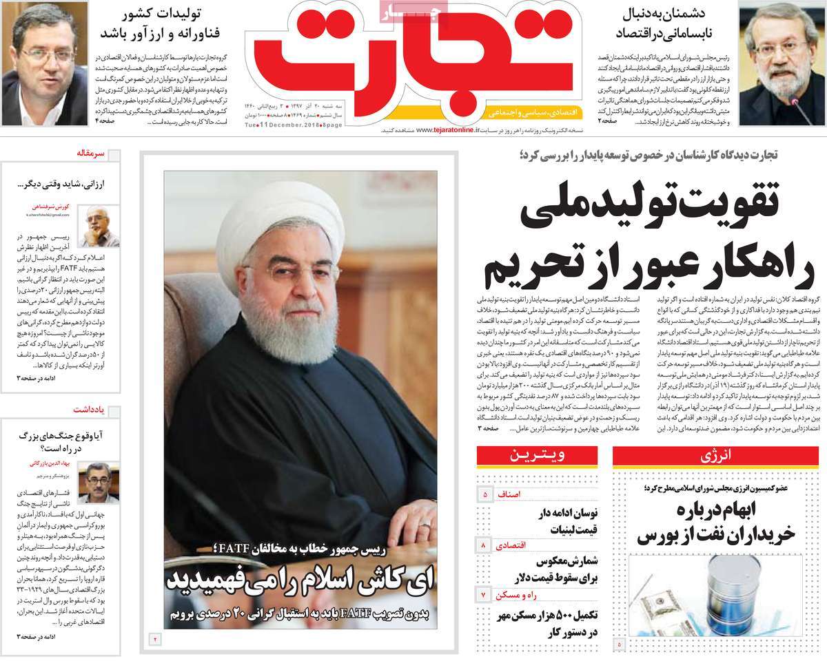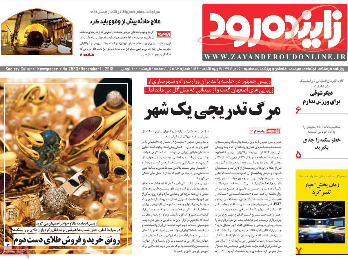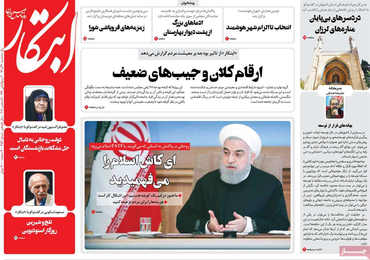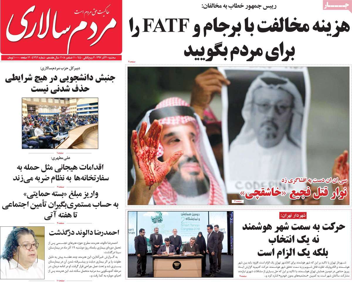 صفحه اول روزنامه های کشوری و استانی؛ سه شنبه 20 آذرماه 1397 /تصاویر