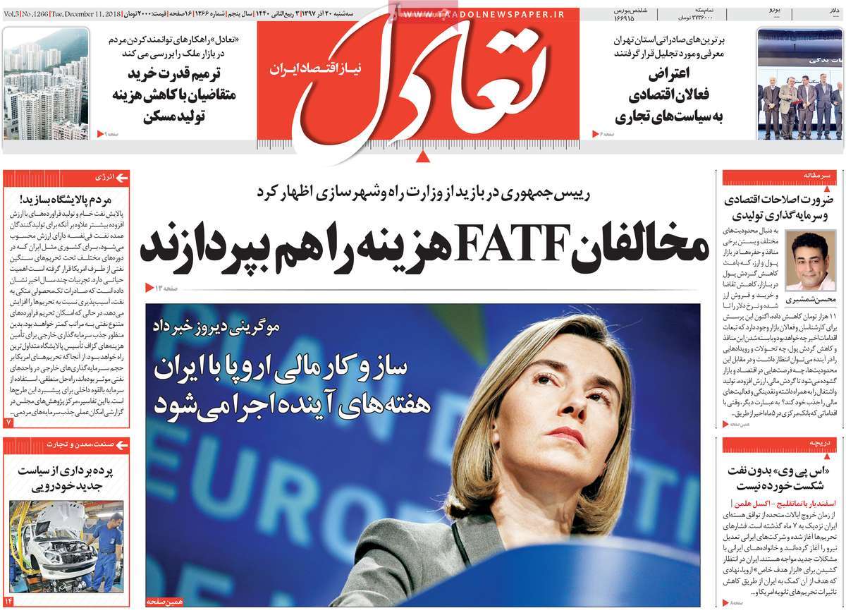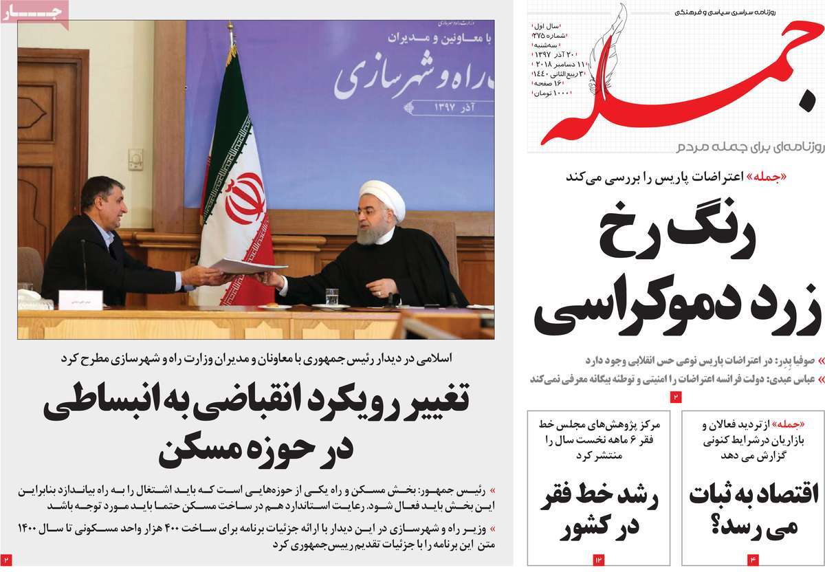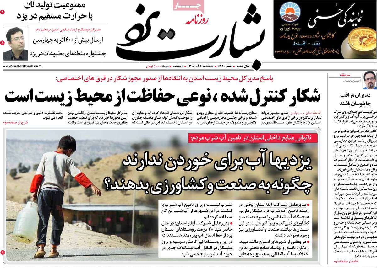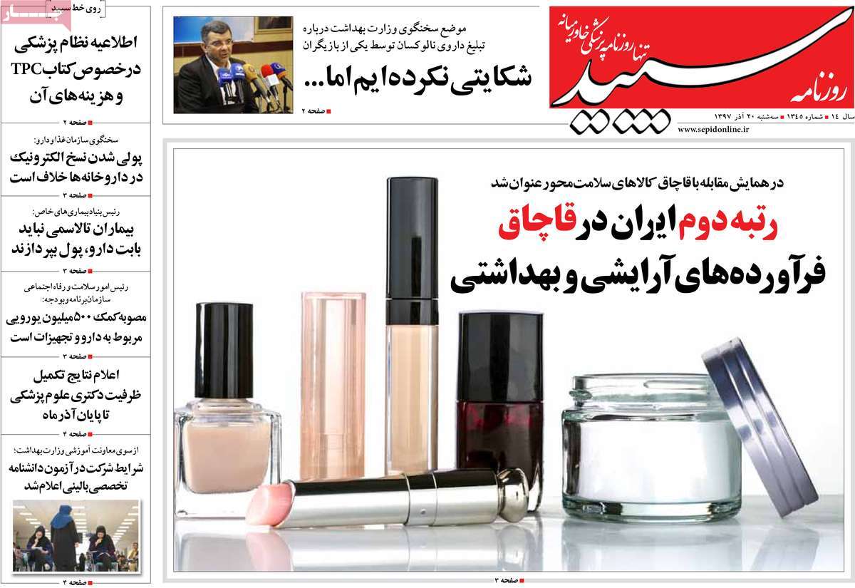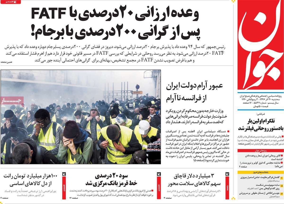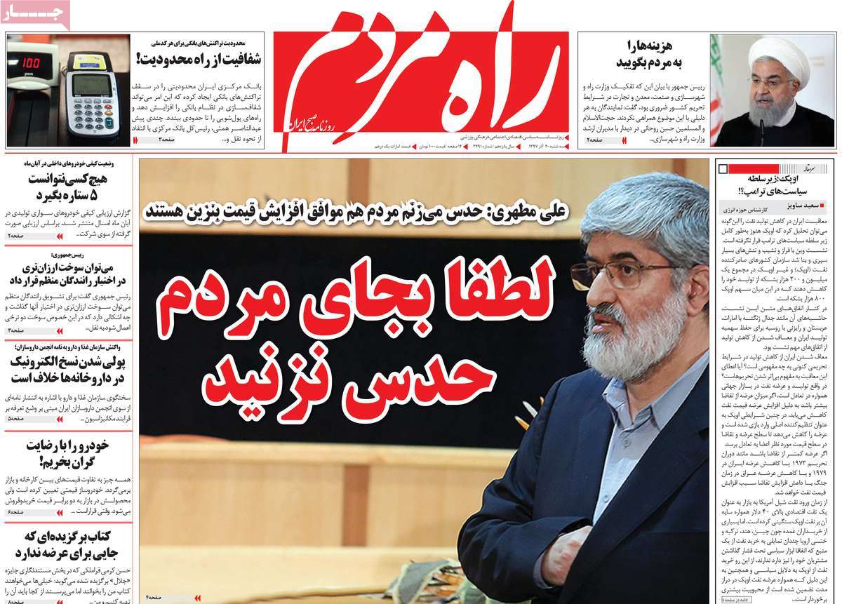 صفحه اول روزنامه های کشوری و استانی؛ سه شنبه 20 آذرماه 1397 /تصاویر