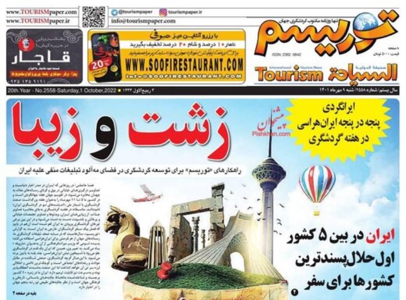 روزنامه توریسم به قلم هما حاصلی نوشت : متاسفانه در هفته گردشگری به جای مخابره تصاویر جذاب از زیبایی های ایران ، ویدیوها و تصاویر تجمعات خیابانی و پرخاش و خشونت دست به دست می شود و در این بین برخی تورهای گردشگری ورودی به ایران لغو شده است آن هم در پاییزکه فصل پیک سفر گردشگران خارجی به ایران است.