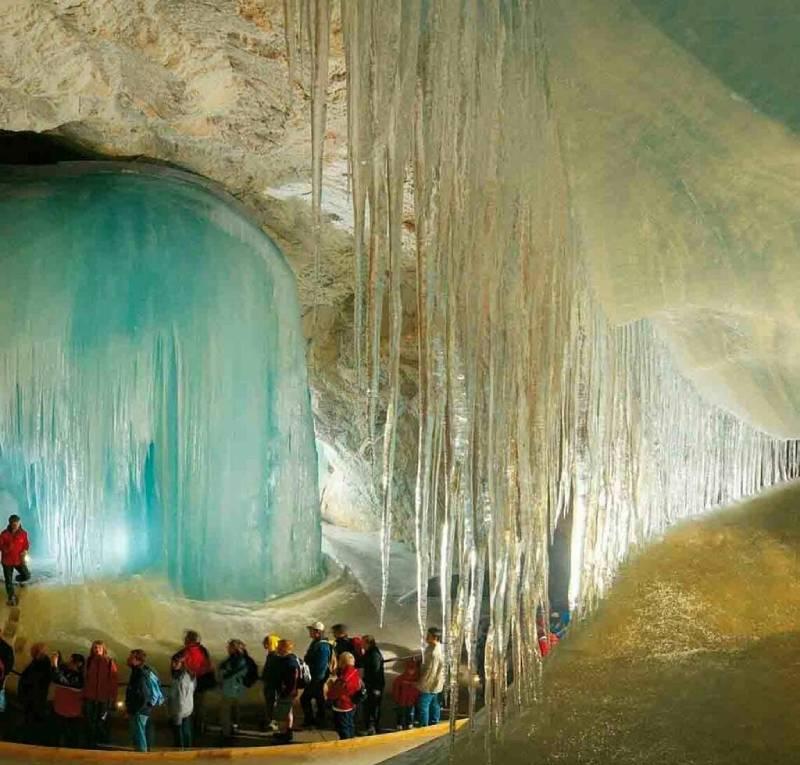 له شدن یک گردشگر هنگام ورود به غار یخی