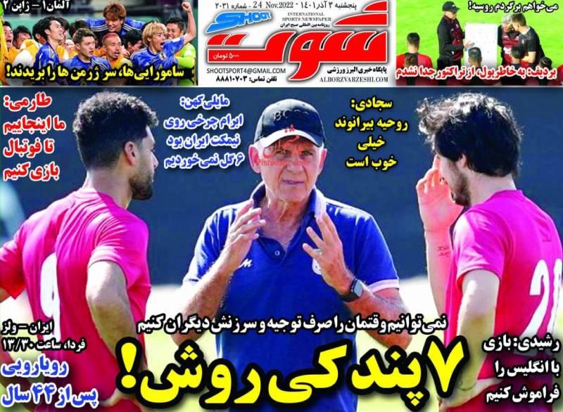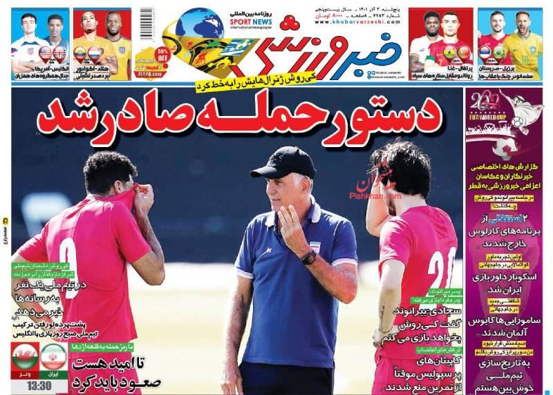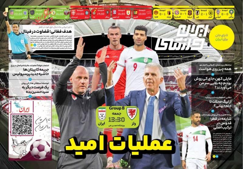 توریسم آنلاین: امید به پیروزی تیم فوتبال ایران در رقابت های جام جهانی در روزنامه های ورزشی امروز