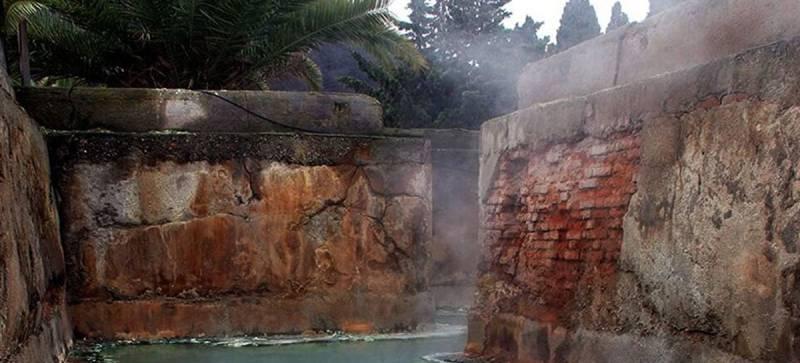 65 کیلومتری آمل به تهران، داخل درهای باریک و در مجاورت رود هراز، از چند نقطه آبهای گرم با حدود 34 درجه از پای کوه میجوشد و بعد از جمع شدن از دو استخر تقریبا بزرگ، از آن سرازیر شده و به رودخانه میریزد این آبها دقیقا در حاشیه جنوبی روستای بایجان قرار دارد که قلا بن هم نامیده میشود. میزان آبدهی تقریبا 4 اینچ مکعب در ثانیه است این آب مادهای به نام زبیق دارد که برای درمان بیماریهای عفونی به ویژه در پوست کاملا موثر است. به گفته مردم محلی این منطقه بر این است که در صورت تهنشین شدن رسوبات قرمز رنگ و زیبای این چشمه آب آن برای درمان بیماریهای کبد و کلیه مفید است.