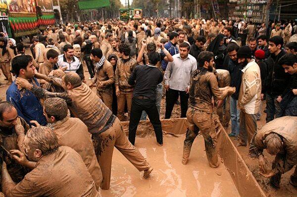 هر کسی که در روز عاشورا برای عزاداری به خیابان آمده، آیین گل را انجام می‌دهد؛ زن و مرد تفاوتی ندارد. مردان سر تا پای خود را گلی می‌کنند و بعد از ایستادن دور آتش و خشک شدن آن به سینه‌زنی می‌پردازند. زنان نیز گل را بر چادر و روسری خود می‌زنند.