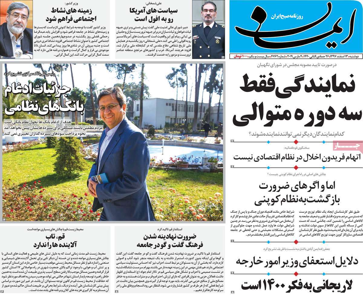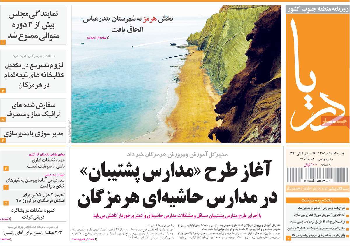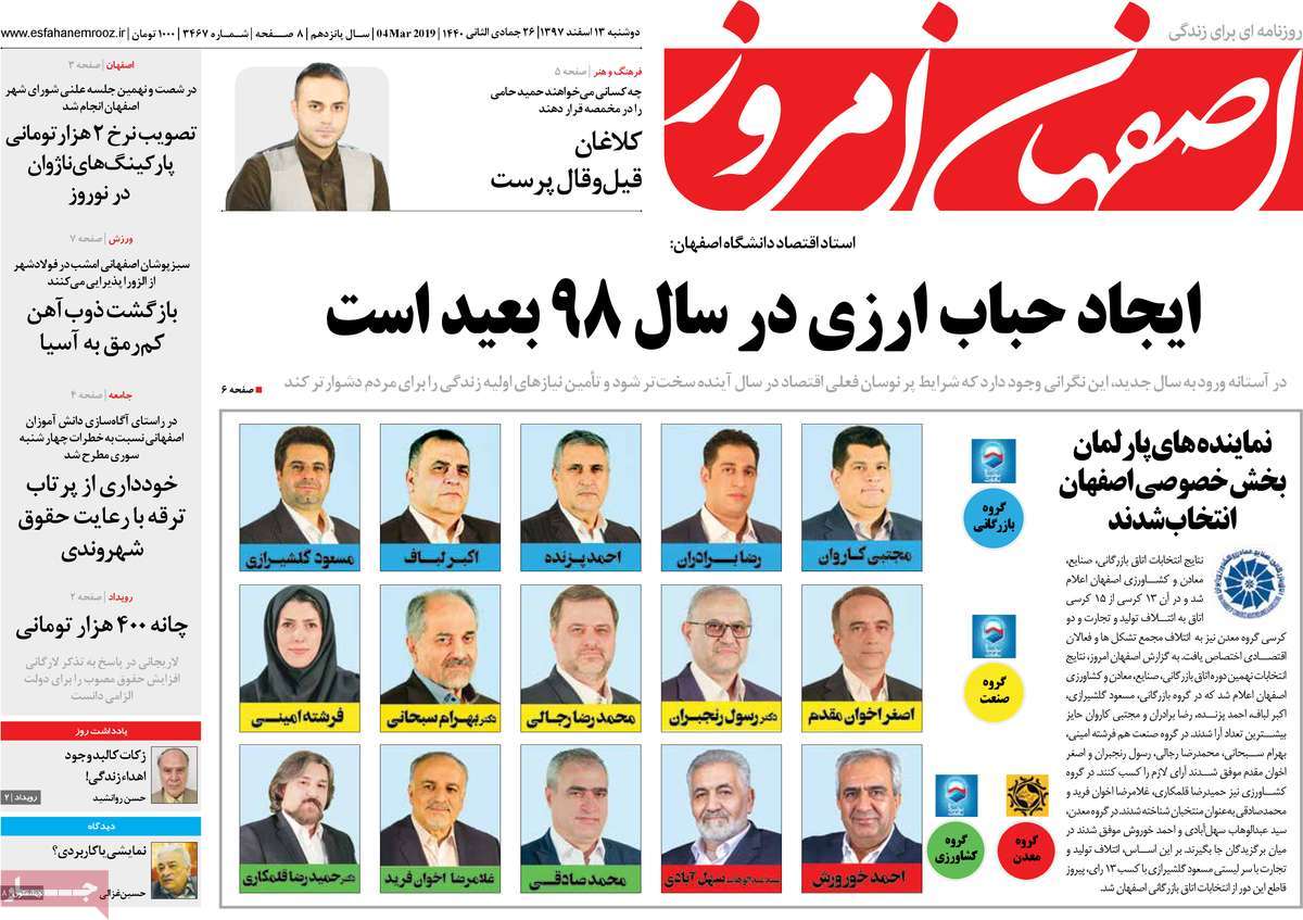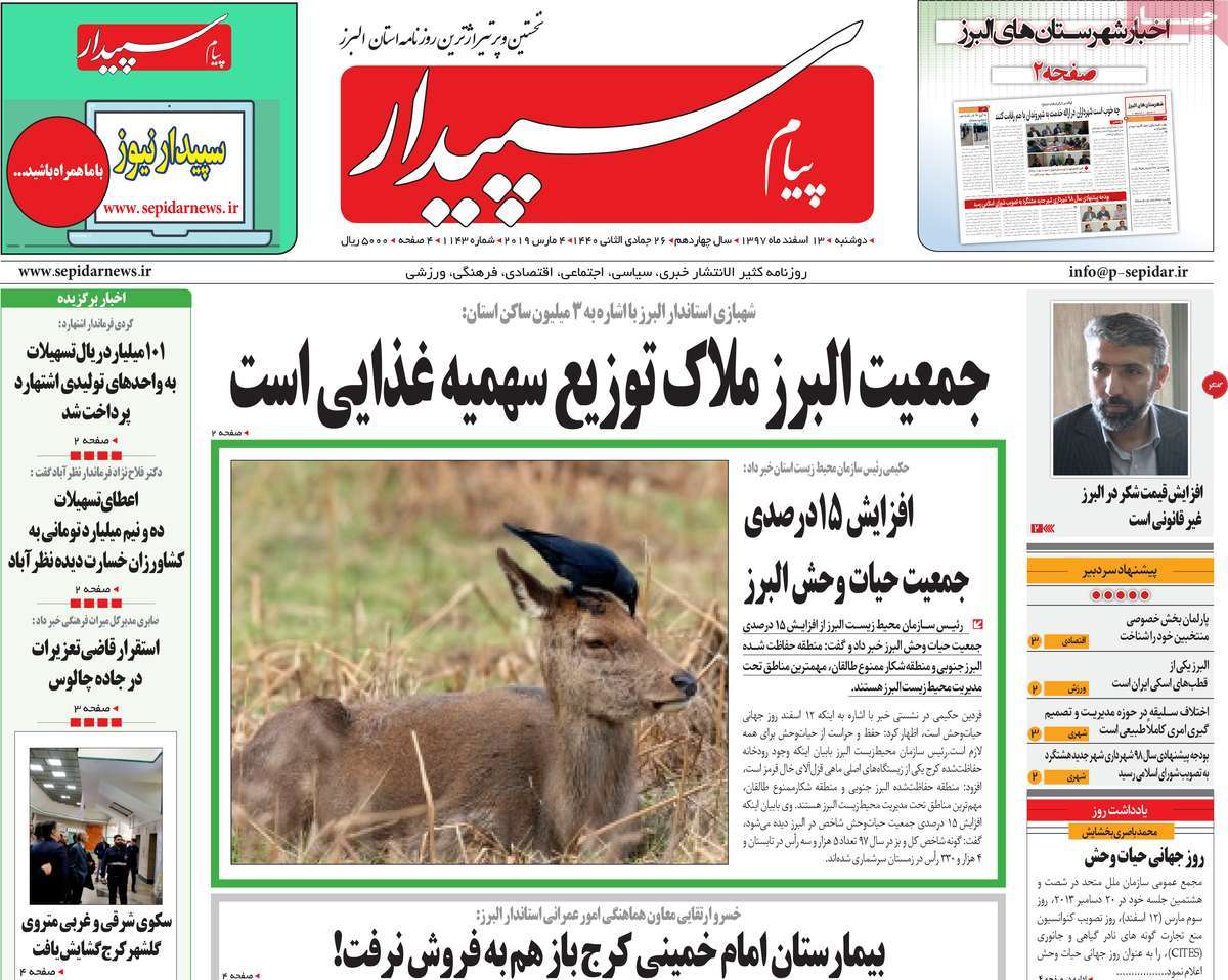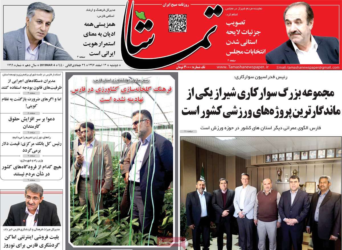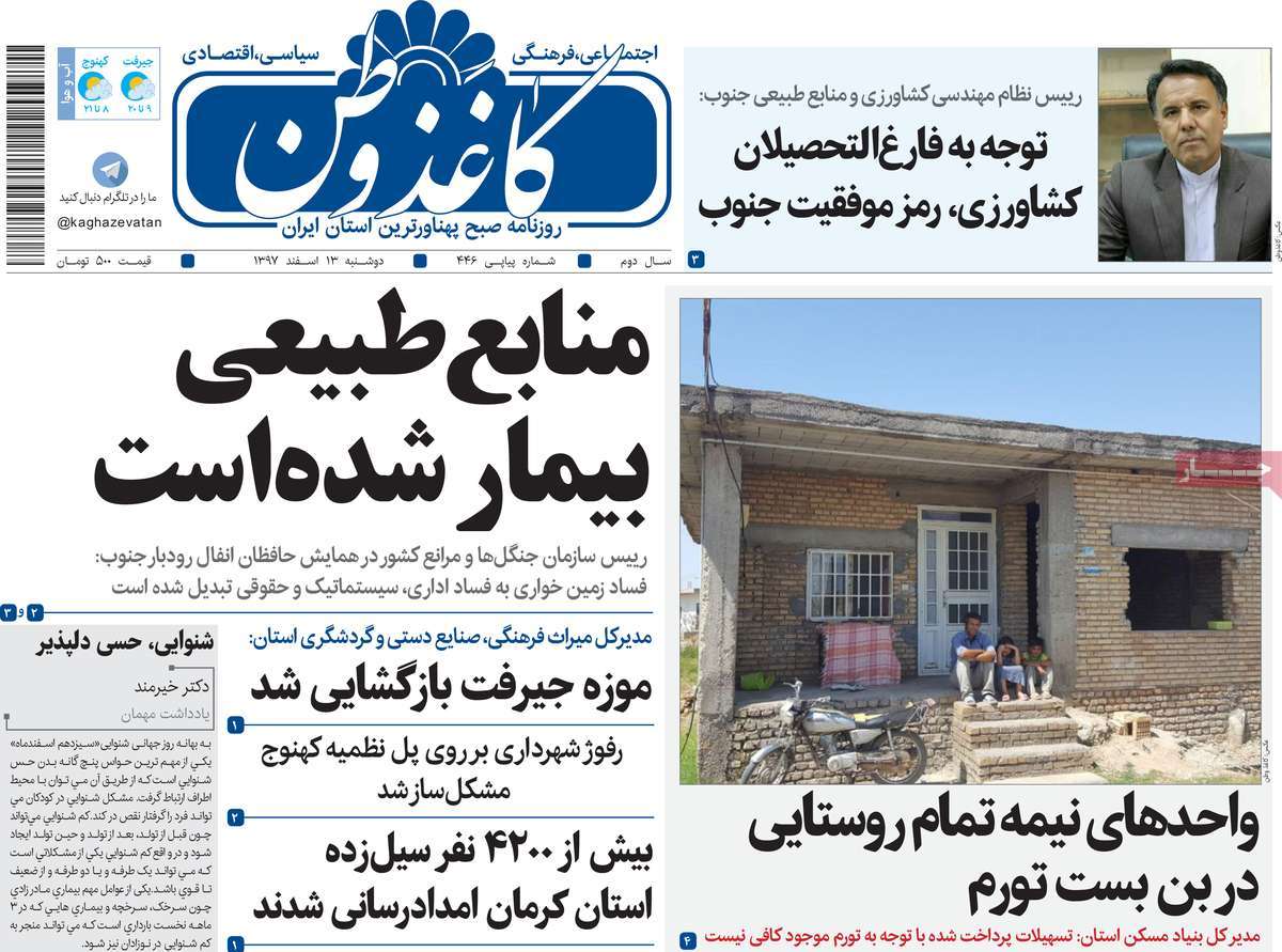 صفحه اول روزنامه های کشوری و استانی؛ دوشنبه ۱۳ اسفند ماه ۱۳۹۷ /تصاویر