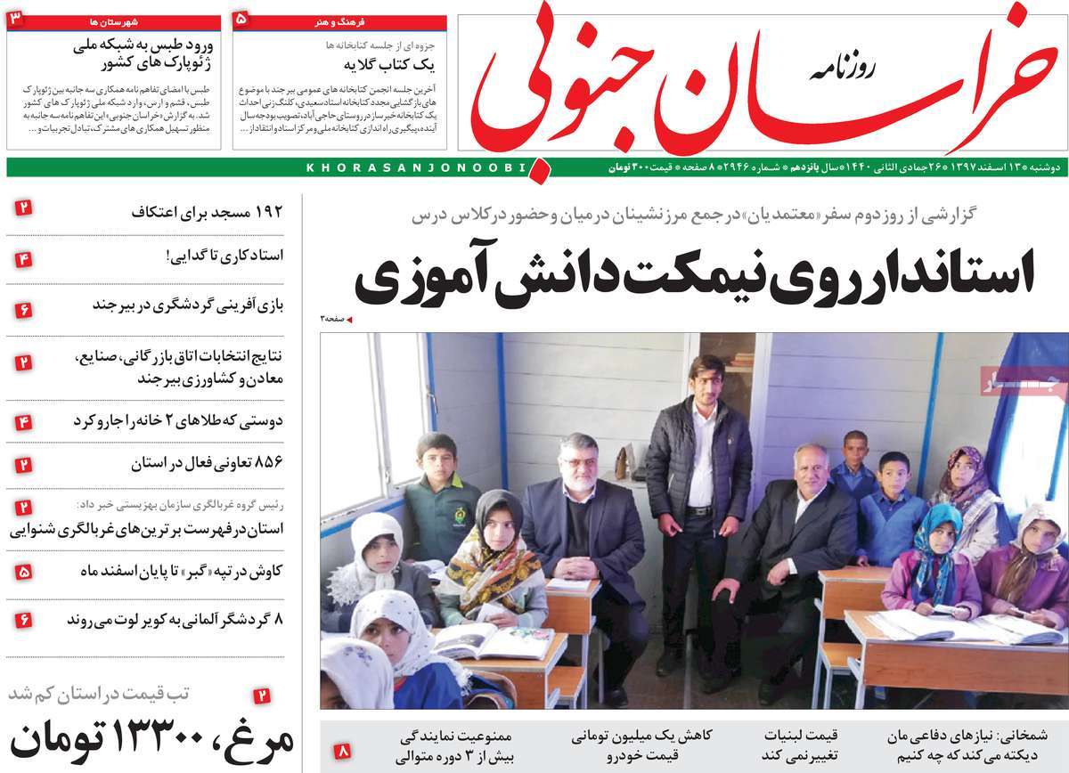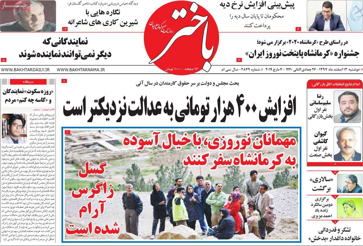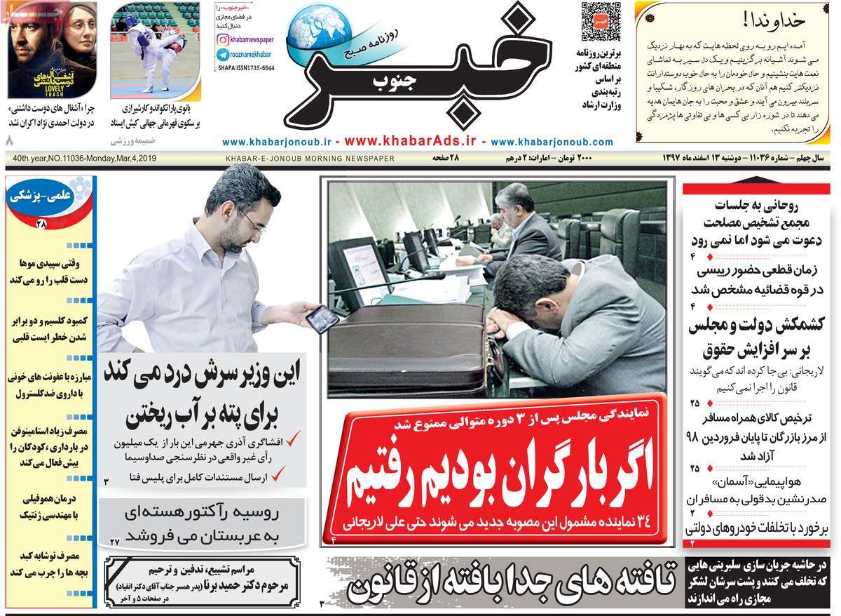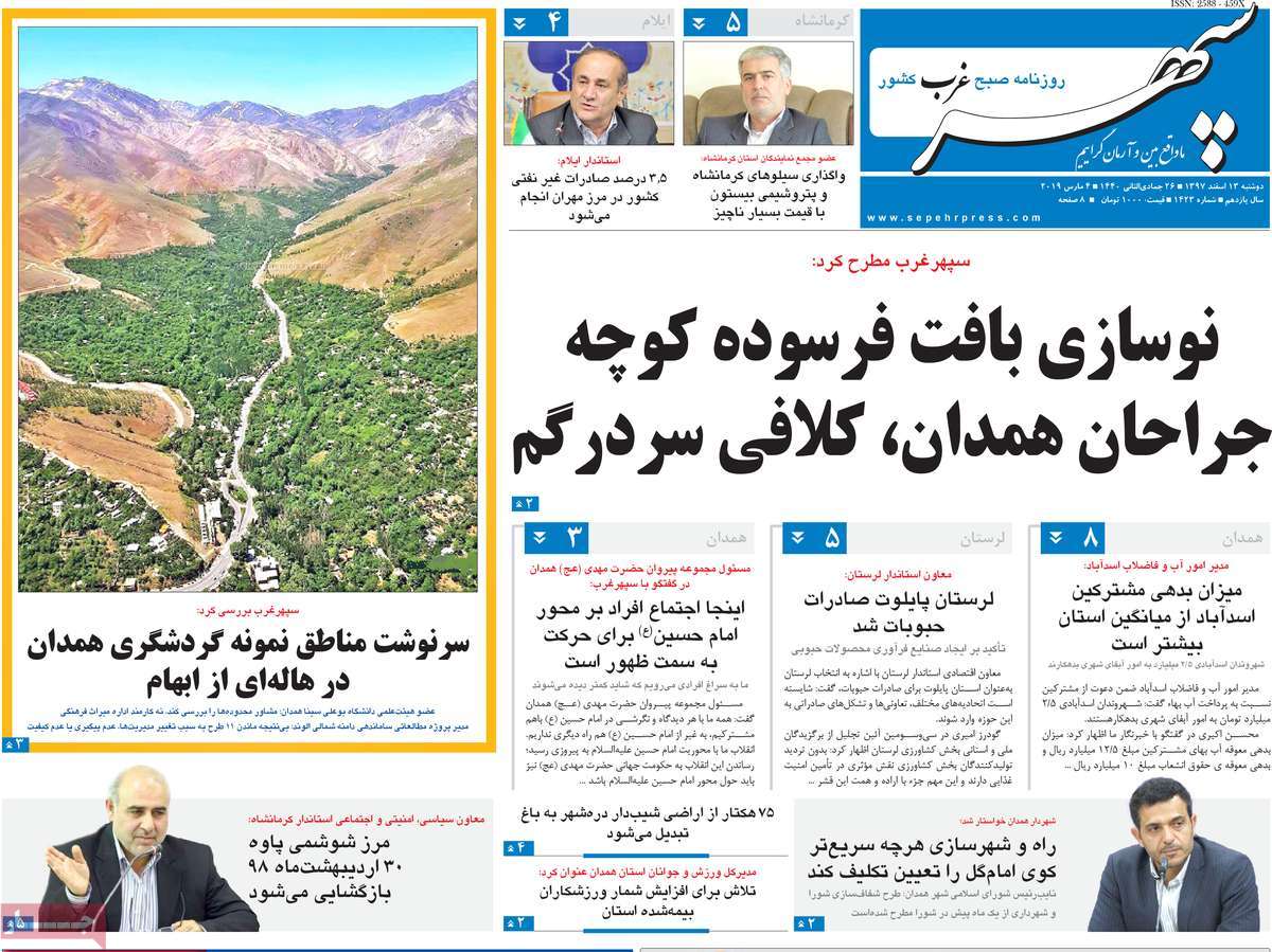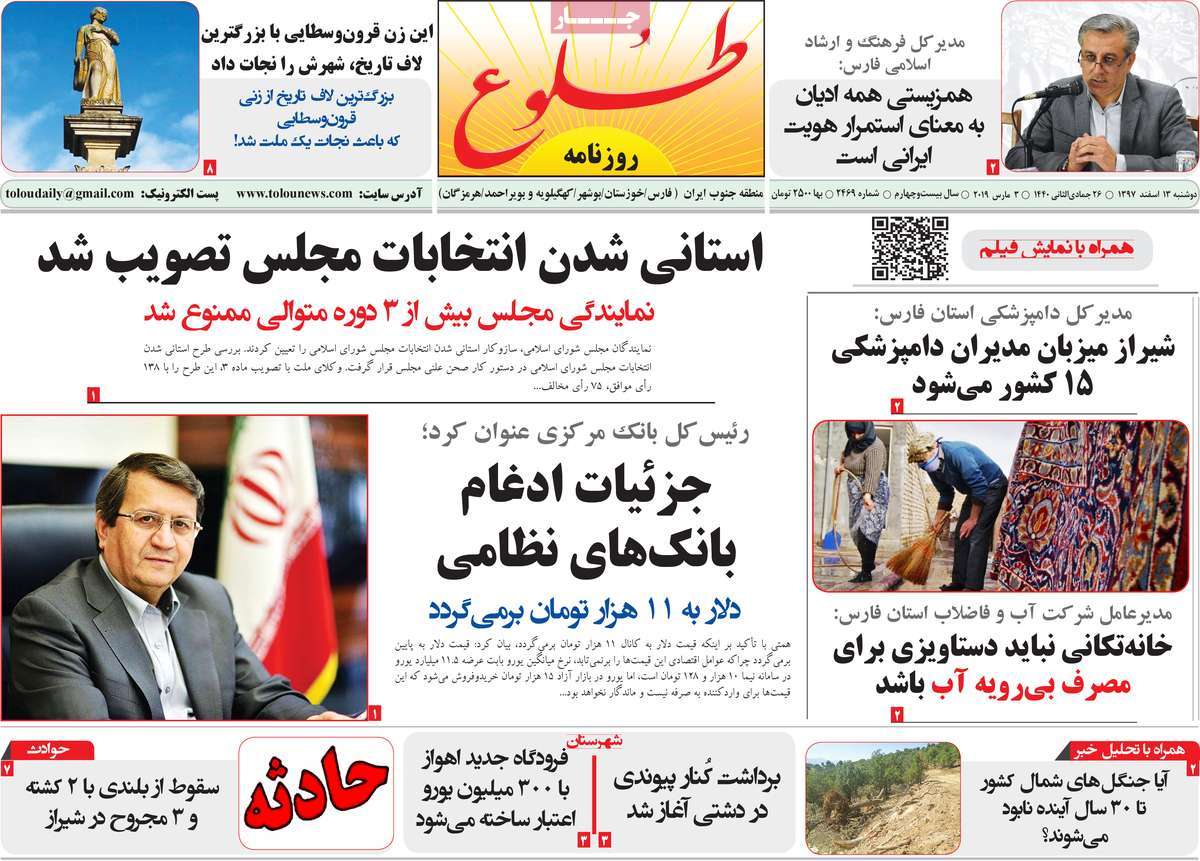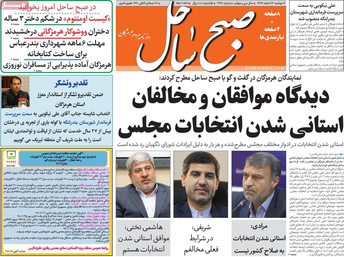 صفحه اول روزنامه های کشوری و استانی؛ دوشنبه ۱۳ اسفند ماه ۱۳۹۷ /تصاویر