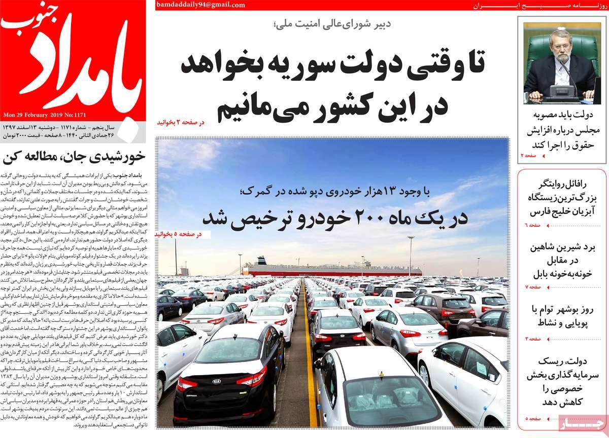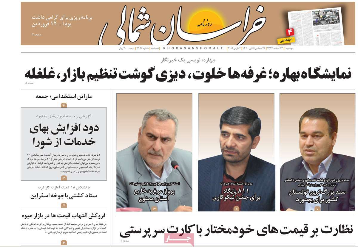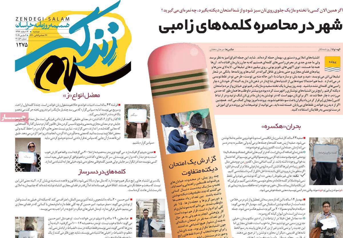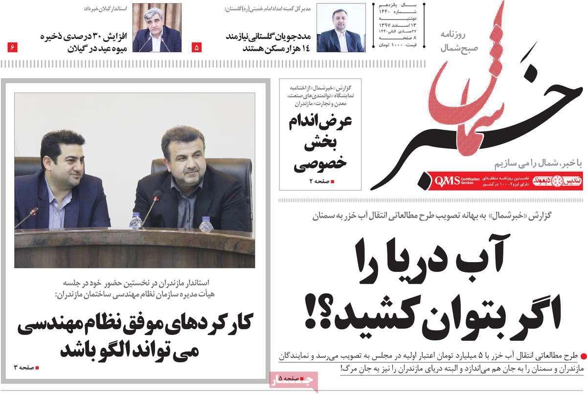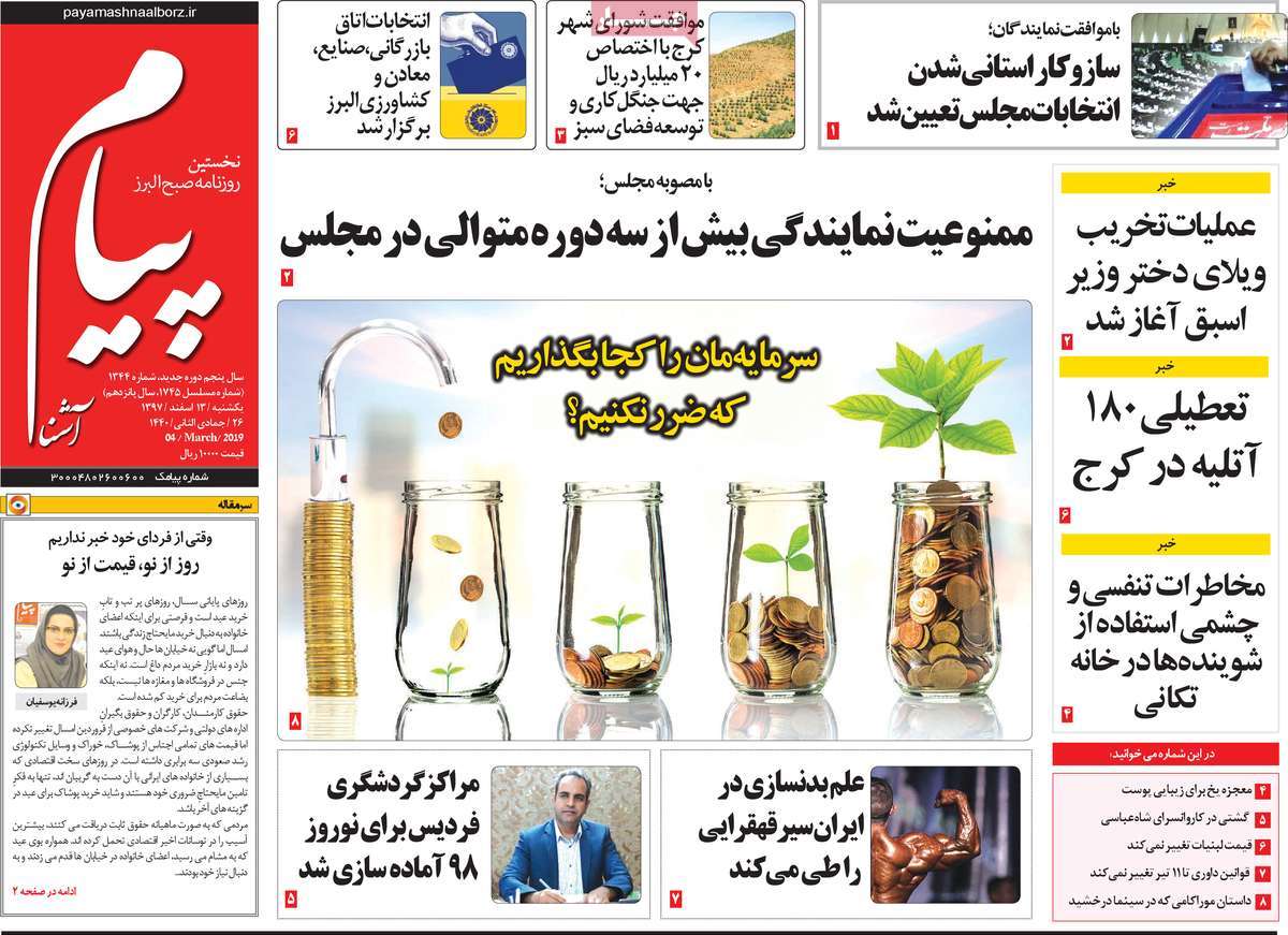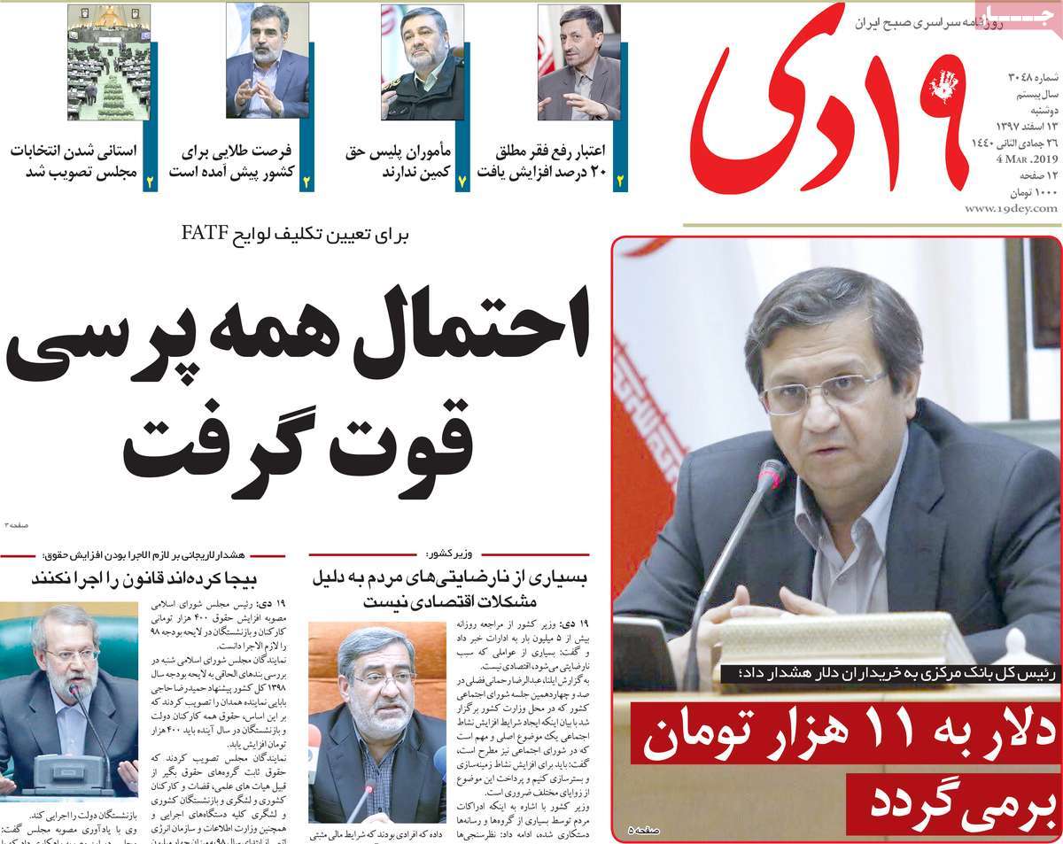 صفحه اول روزنامه های کشوری و استانی؛ دوشنبه ۱۳ اسفند ماه ۱۳۹۷ /تصاویر