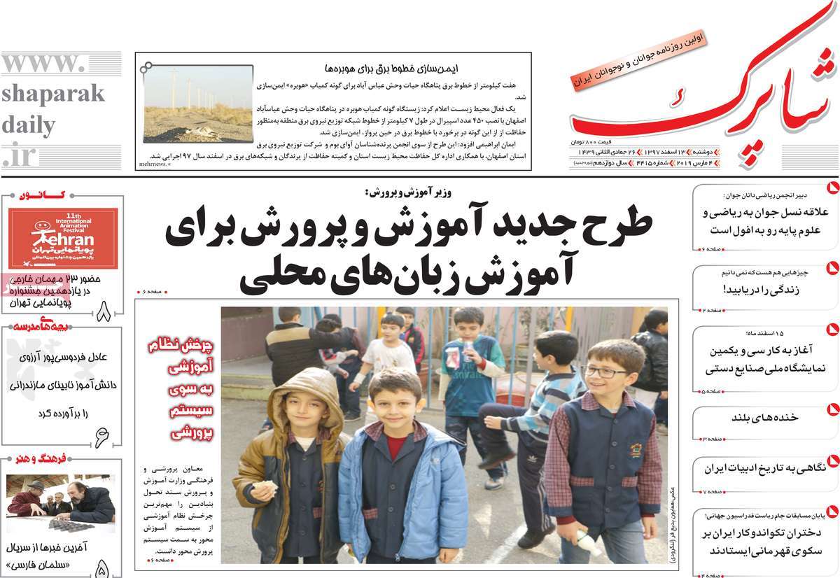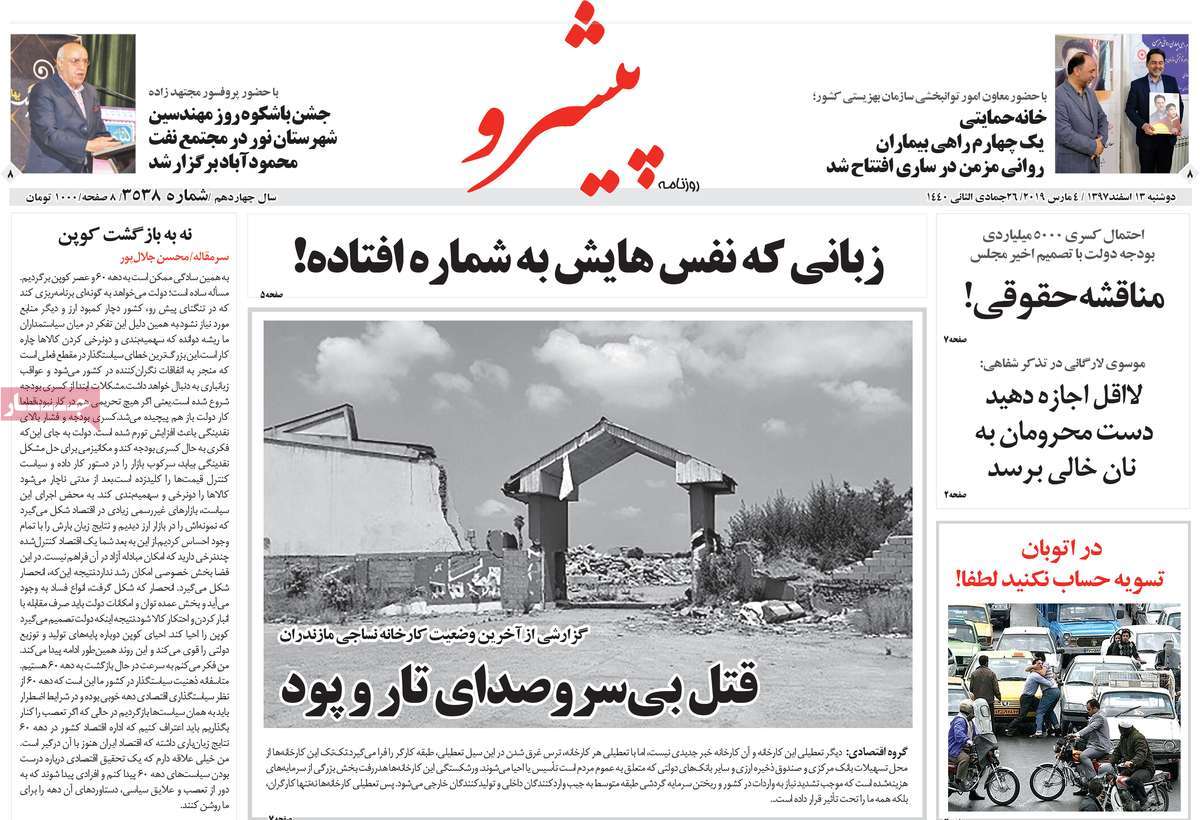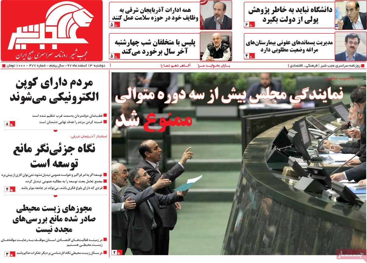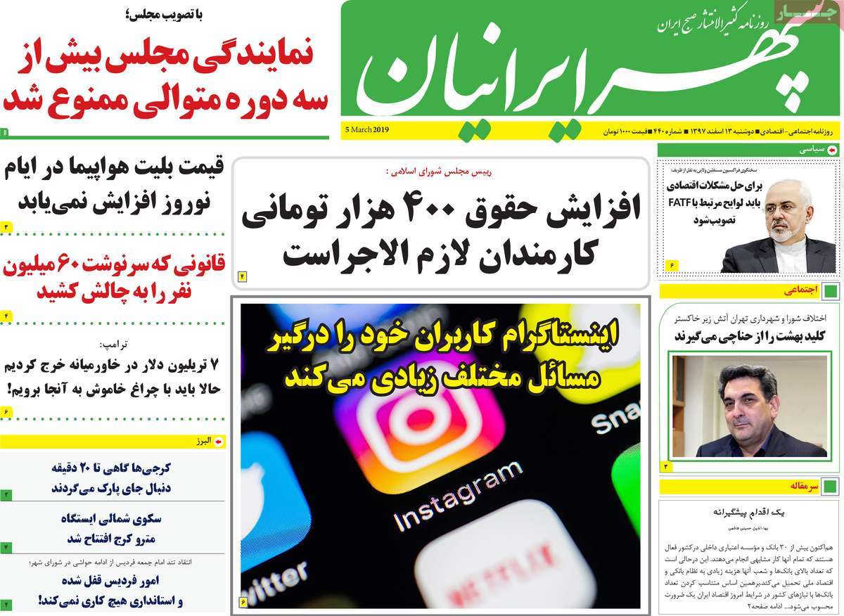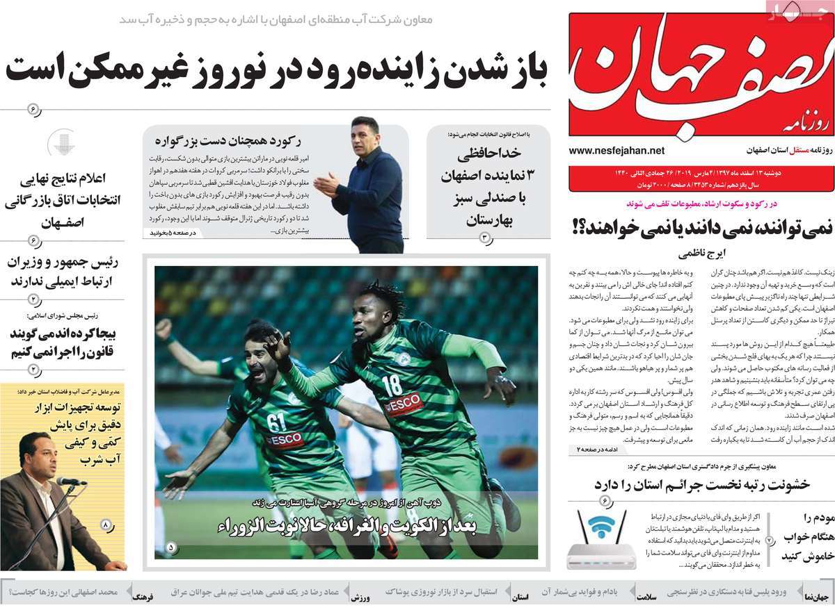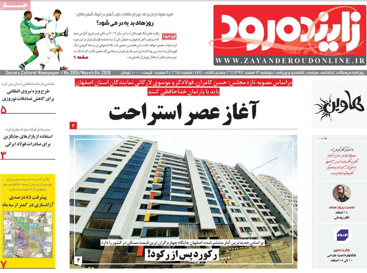 صفحه اول روزنامه های کشوری و استانی؛ دوشنبه ۱۳ اسفند ماه ۱۳۹۷ /تصاویر