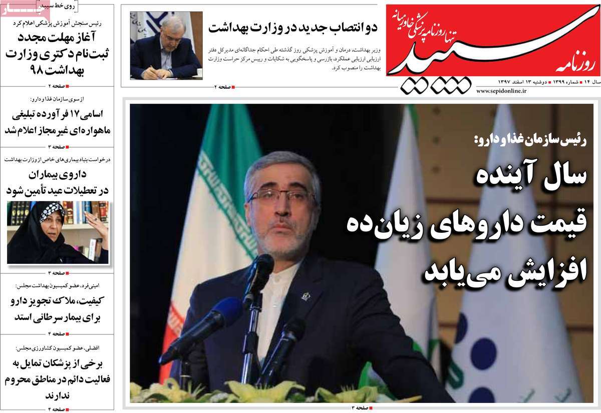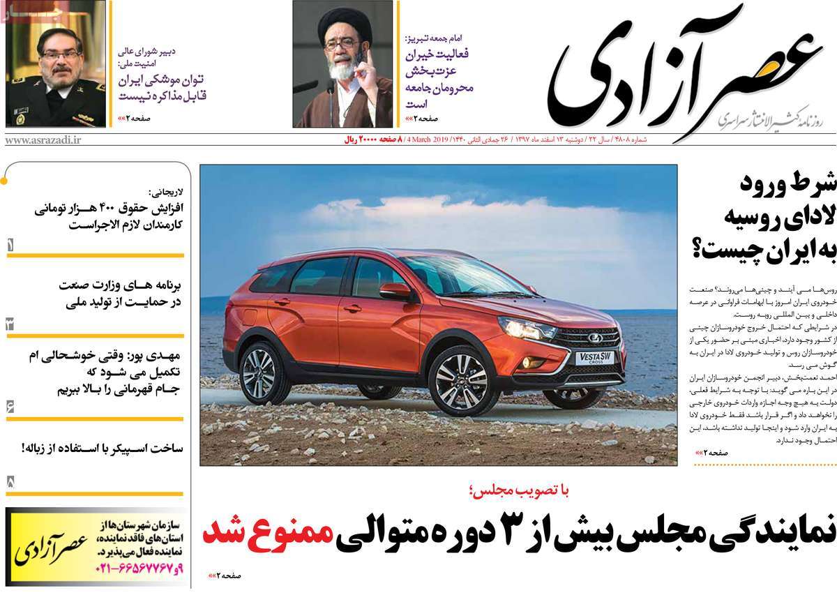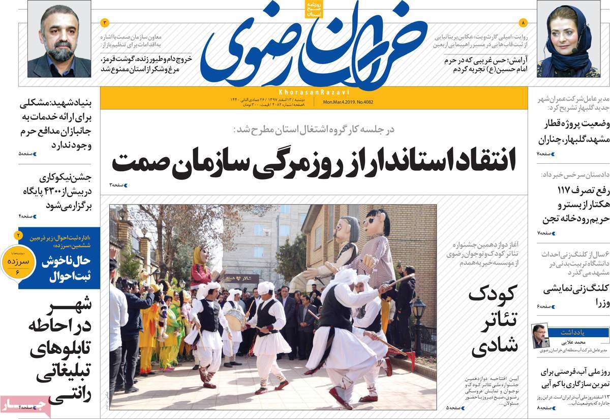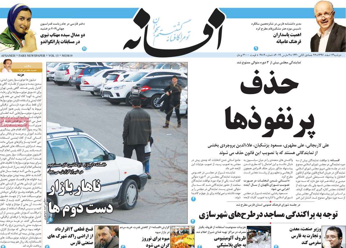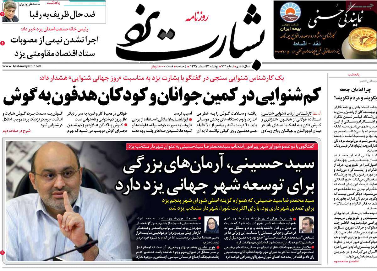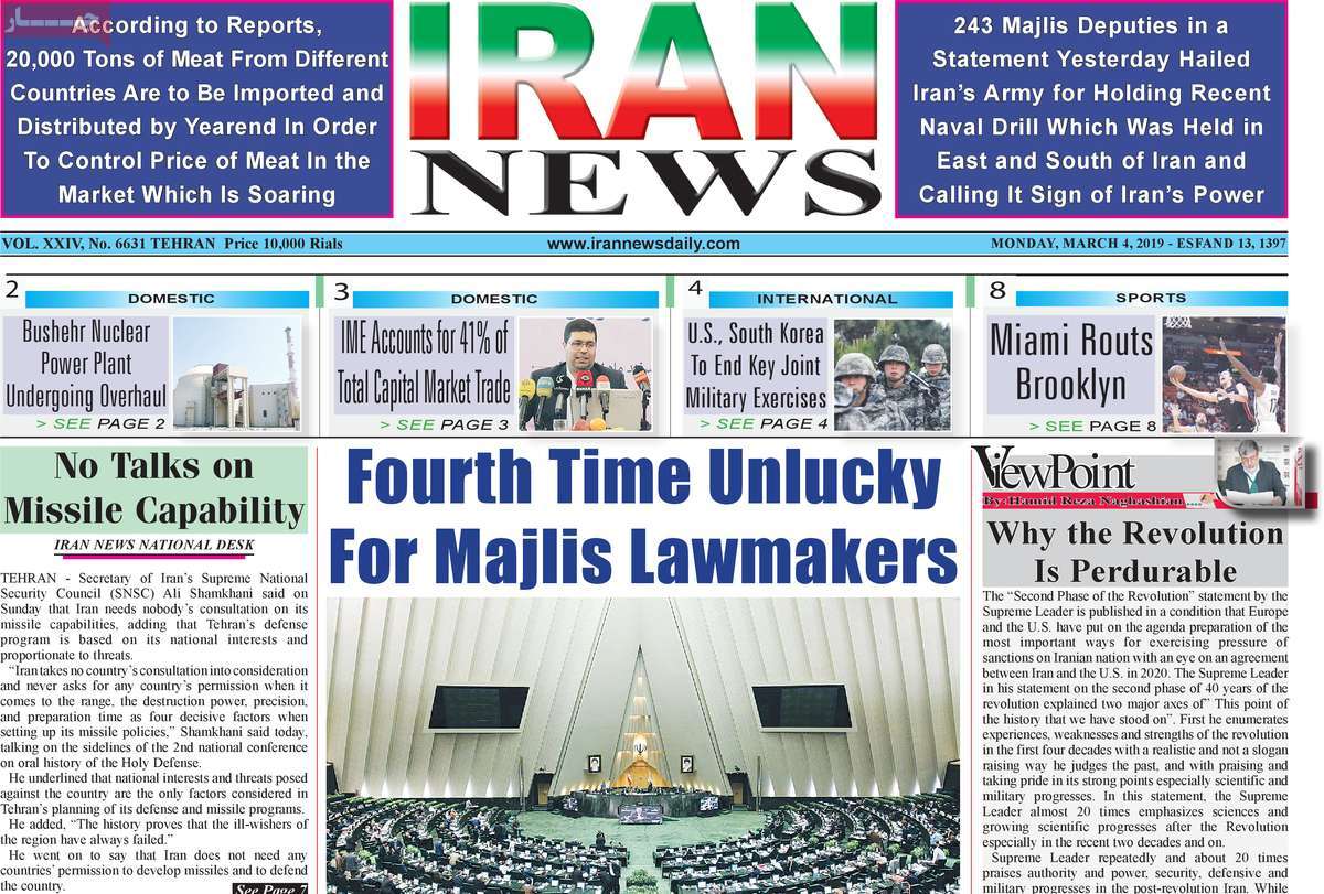 صفحه اول روزنامه های کشوری و استانی؛ دوشنبه ۱۳ اسفند ماه ۱۳۹۷ /تصاویر
