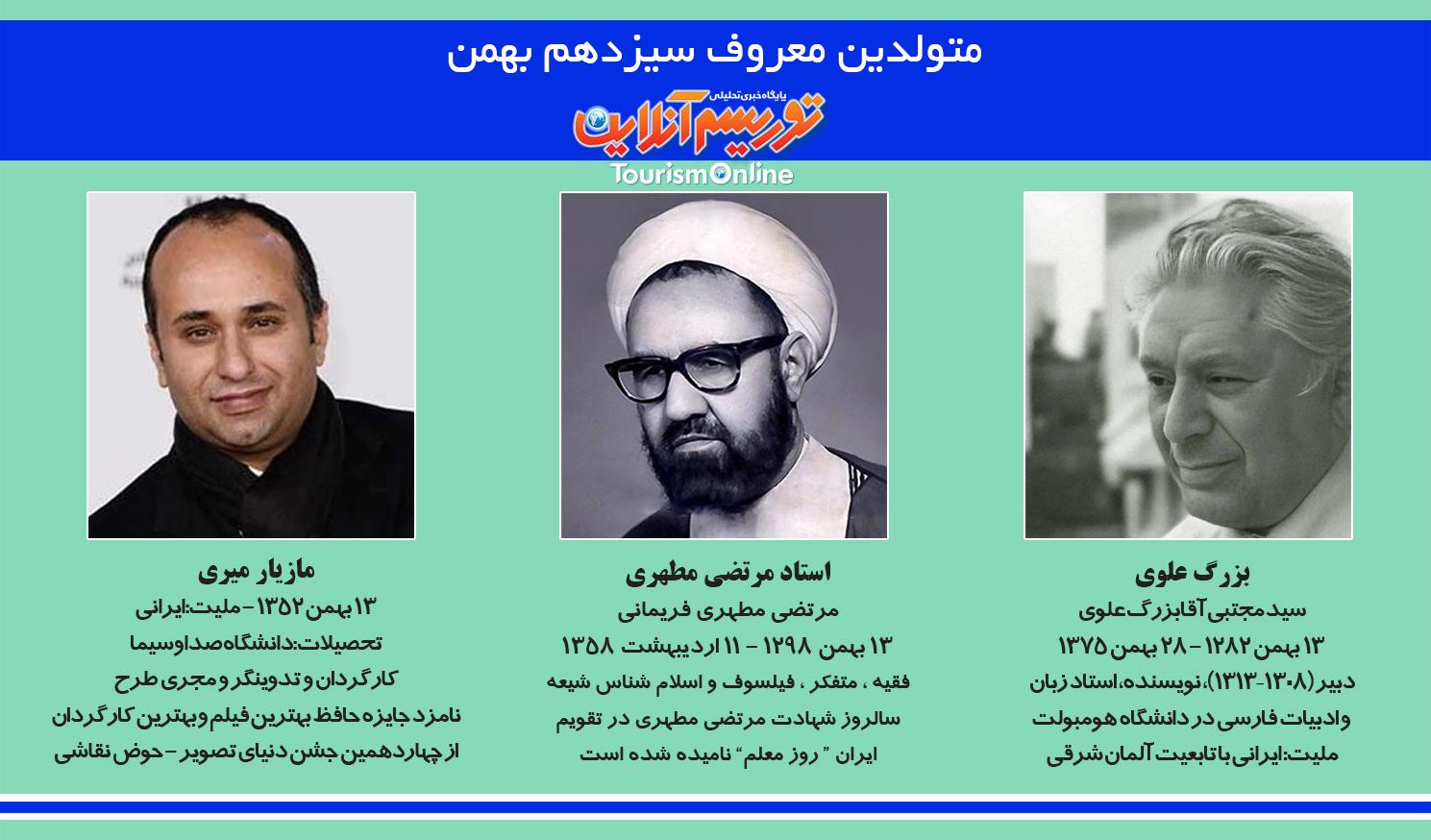 توریسم آنلاین: در روز سیزده بهمن افراد معروفی دیده به جهان گشودند که در عکس نوشته بالا ملاحظه می نمایید.
