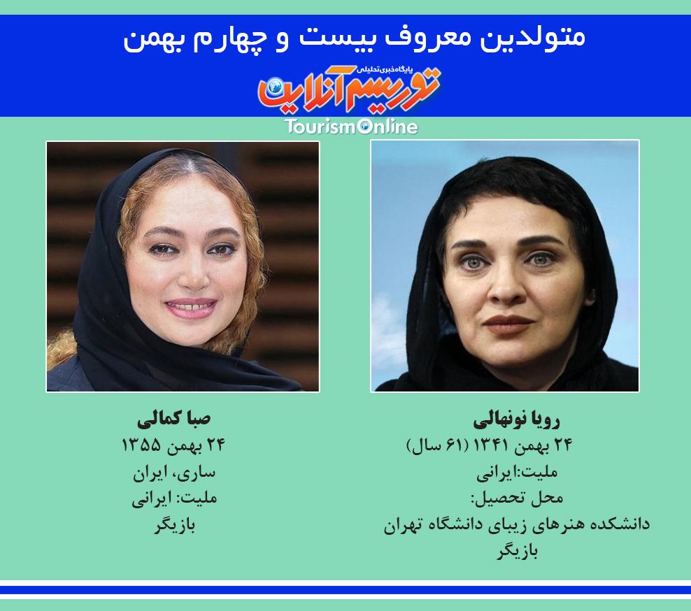 توریسم آنلاین: امروز تولد رویا نو نهالی و صبا کمالی بازیگران سینما و تلویزیون است.
