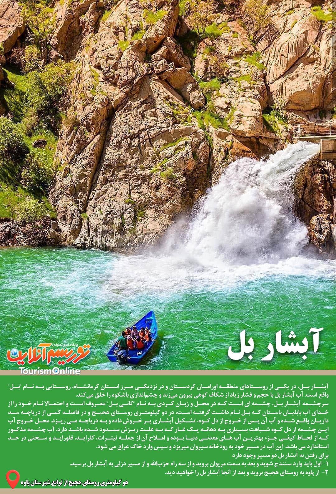 توریسم آنلاین: آبشار بل، در یکی از روستاهای منطقه اورامان کردستان و در نزدیکی مرز استان کرمانشاه، روستایی به نام “بل” واقع است. آب آبشار بل با حجم و فشار زیاد از شکاف کوهی بیرون می‌زند و چشم‌اندازی باشکوه را خلق می‌کند.