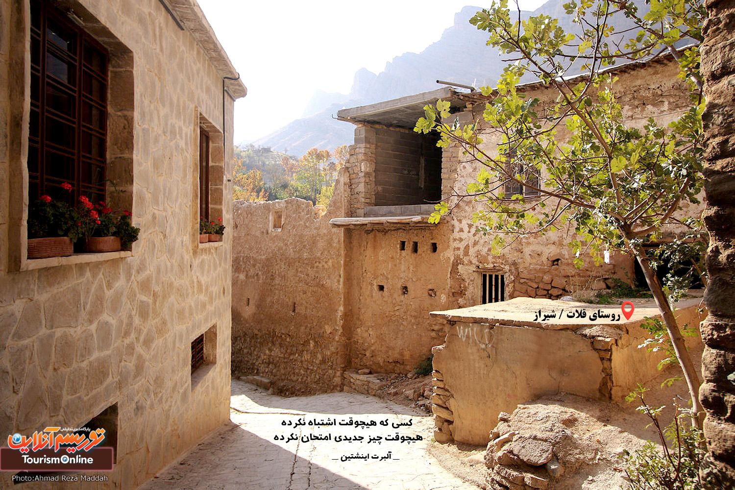 توریسم آنلاین: روستای قلات در ۳۶کیلومتری شمال غربی شیراز قرار دارد. این روستا آبوهوای خنک و مطبوعی دارد، بهطوریکه در این منطقه حتی در گرمترین ماههای سال هم گرما چندان حس نمیشود.
