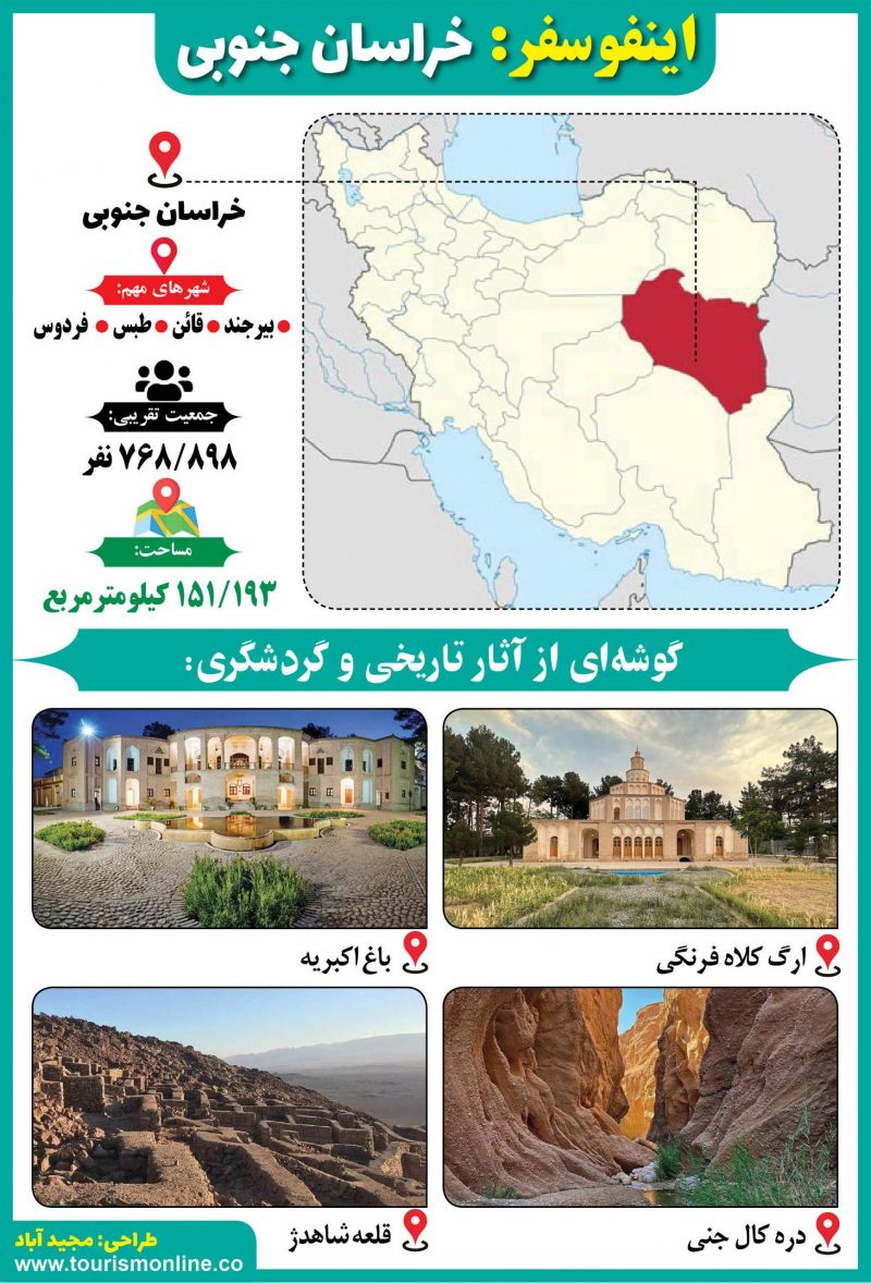 توریسم آنلاین: گلچینی از زیبایی های خراسان جنوبی را در اینفوگرافیک توریسم آنلاین مشاهده کنید. طراح: مجید آباد