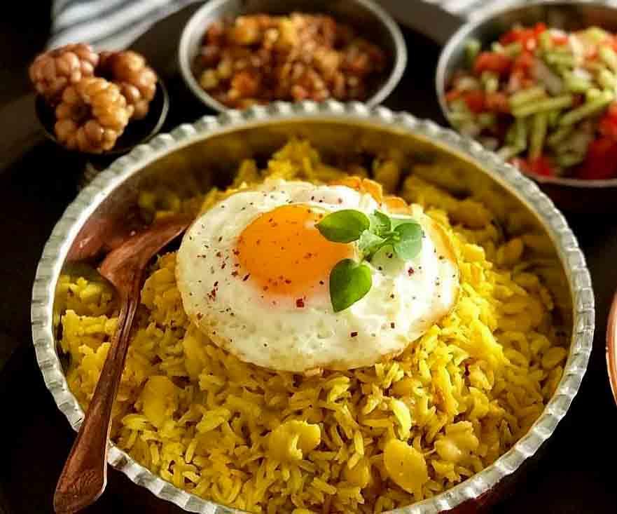 معمولاً در این شب برنج را با کدوی حلوایی دم می کنند که به آن «کَئی پلا» می گویند و با گوشت قورمه میل می کنند. البته غذاهای دیگری مانند مرغ یا اردک محلی شکم پر با سبزیجات معطر مانند زِلنگ و انار و ته چین نیز سرو می شود.