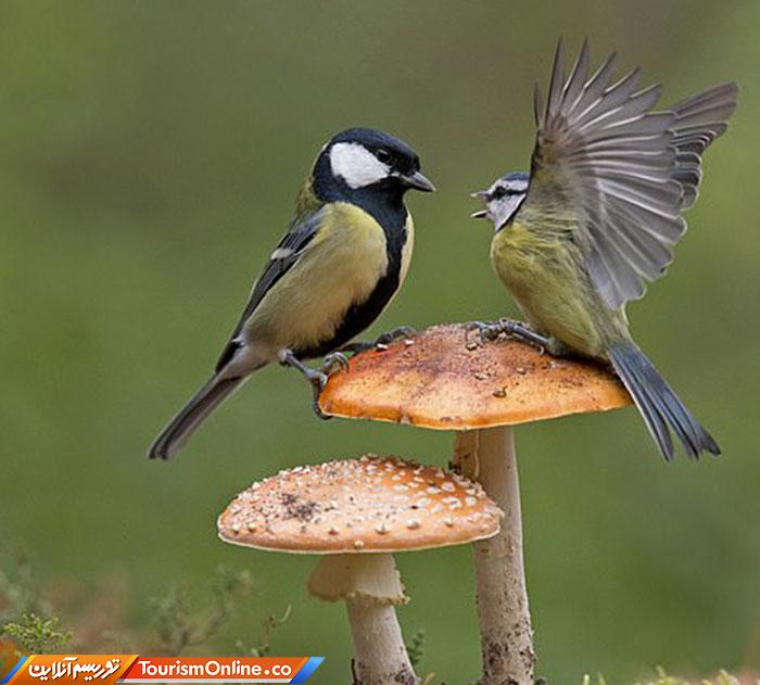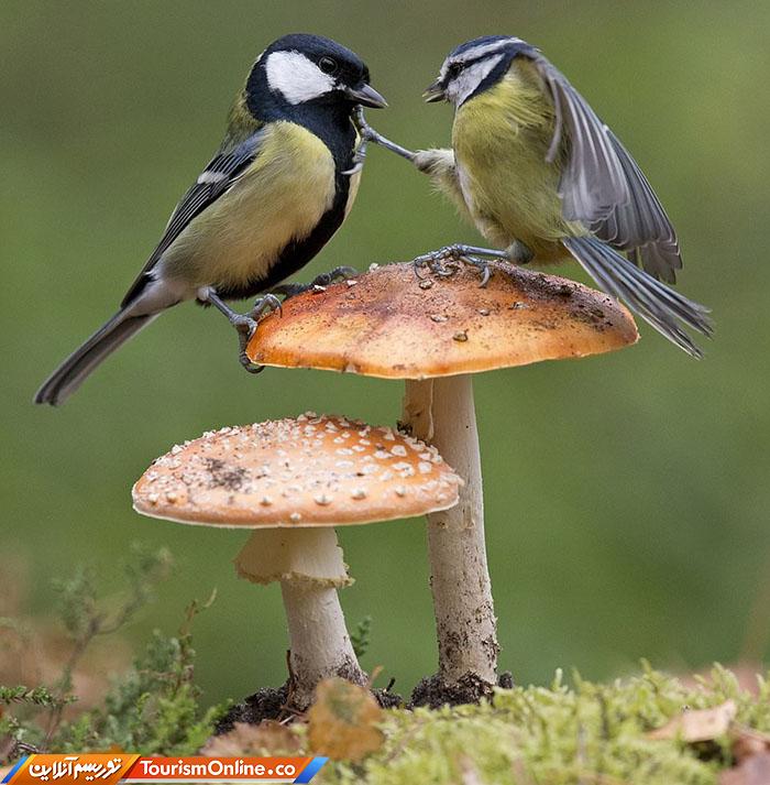 «پال ساور» عکاس 46 ساله بریتانیایی در طبیعت گردی هایش دو چرخ ریسک را دیده که روی قارچ های وحشی کمی با هم مشاجره می کنند!