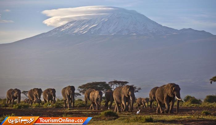 کاروان فیل ها در کنار کوه کلیمانجارو/عکس