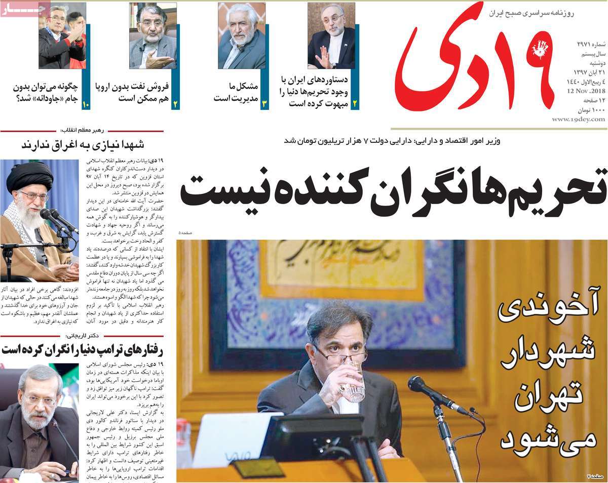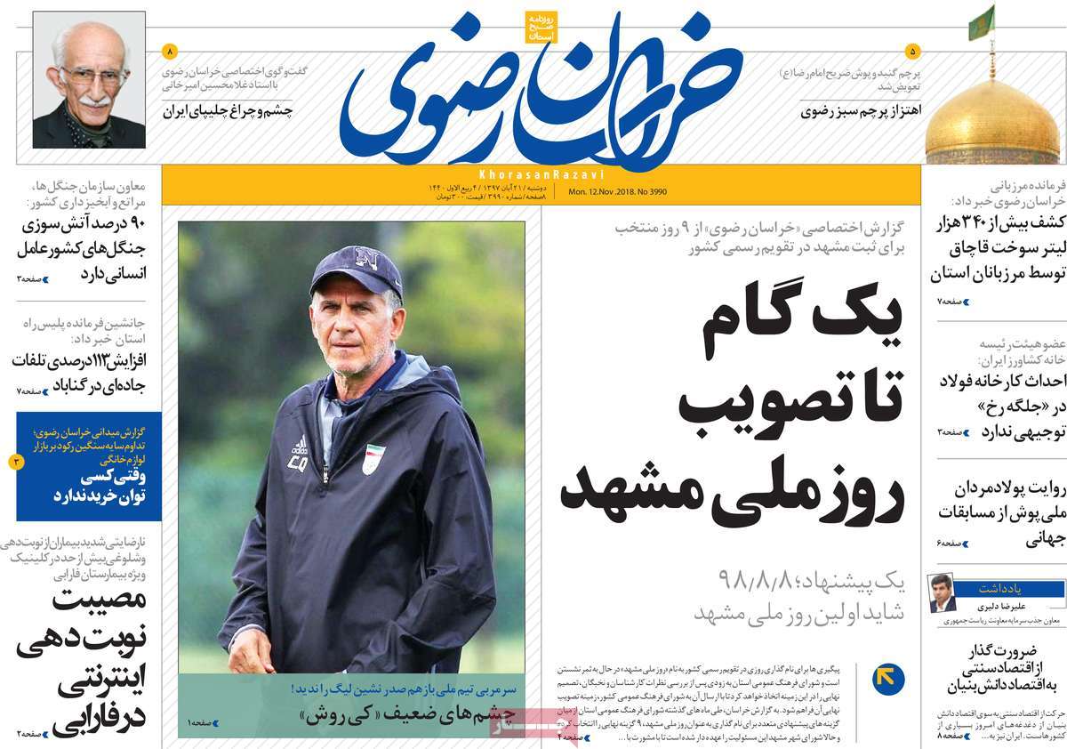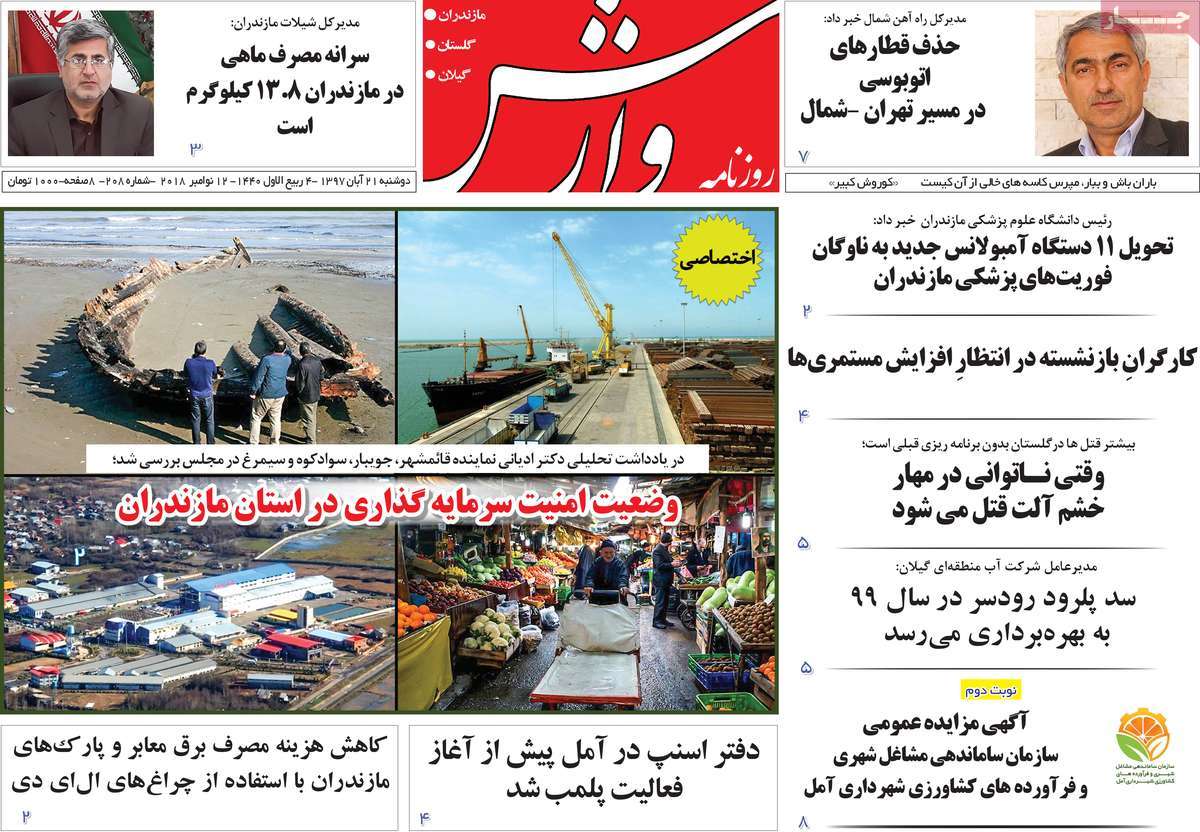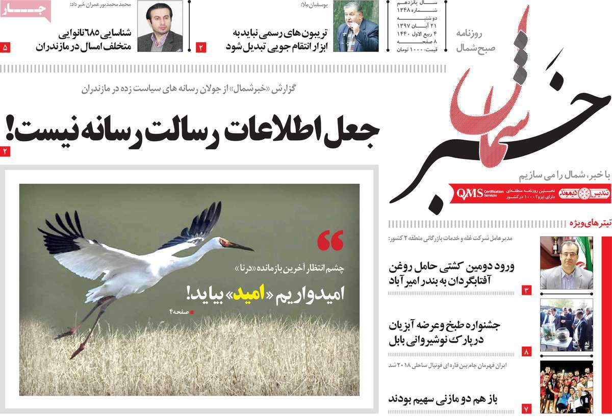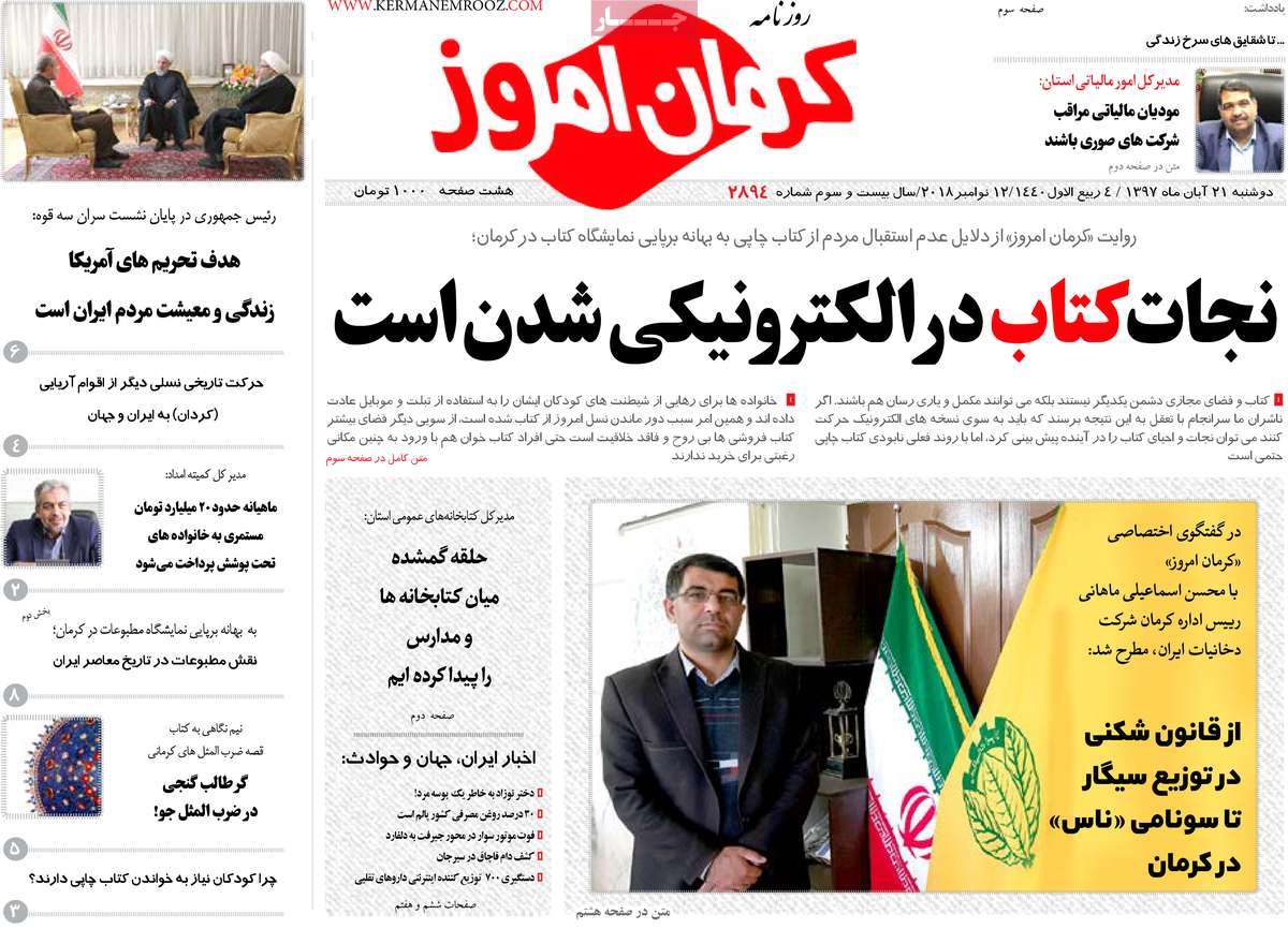 صفحه اول روزنامه های کشوری و استانی؛ دوشنبه 21 آبان ماه 1397 /تصاویر