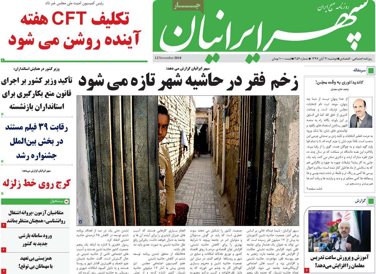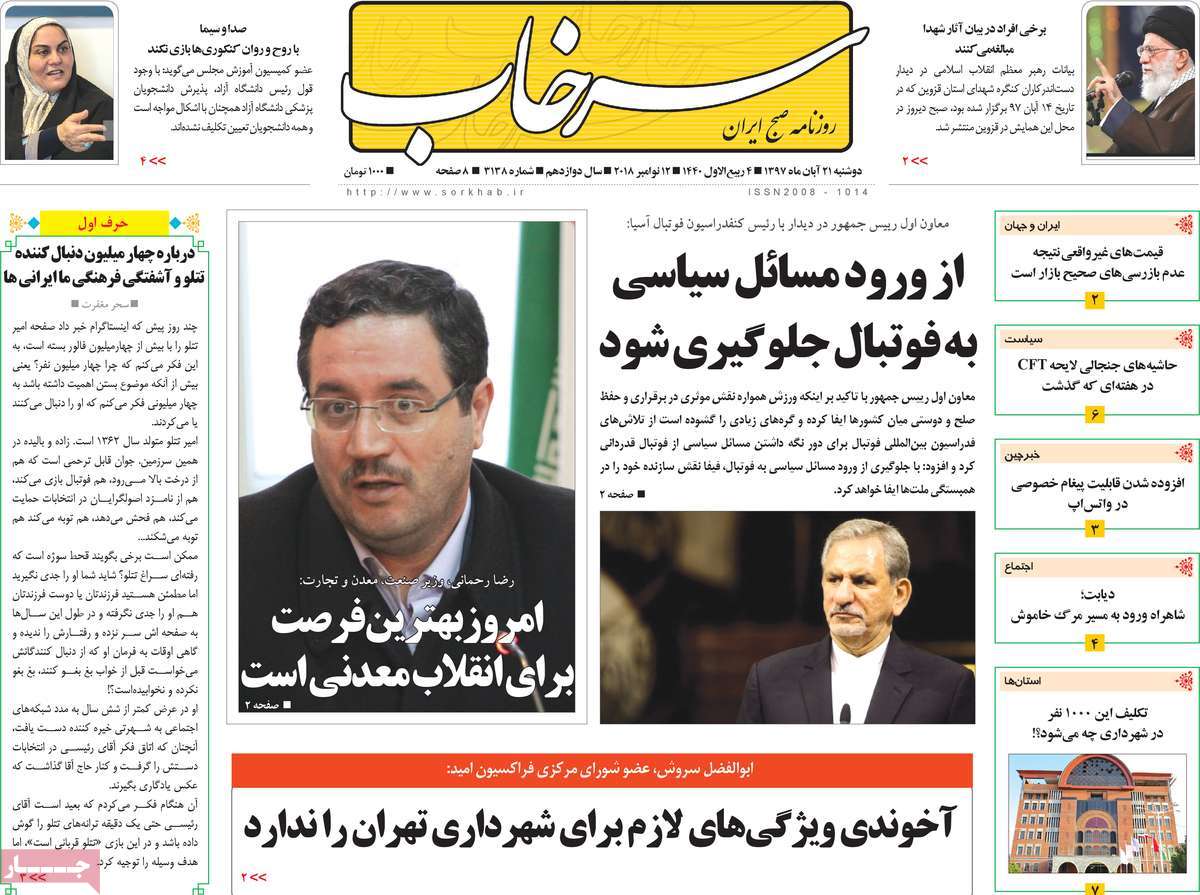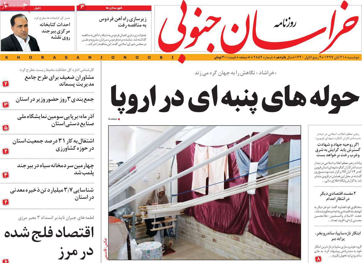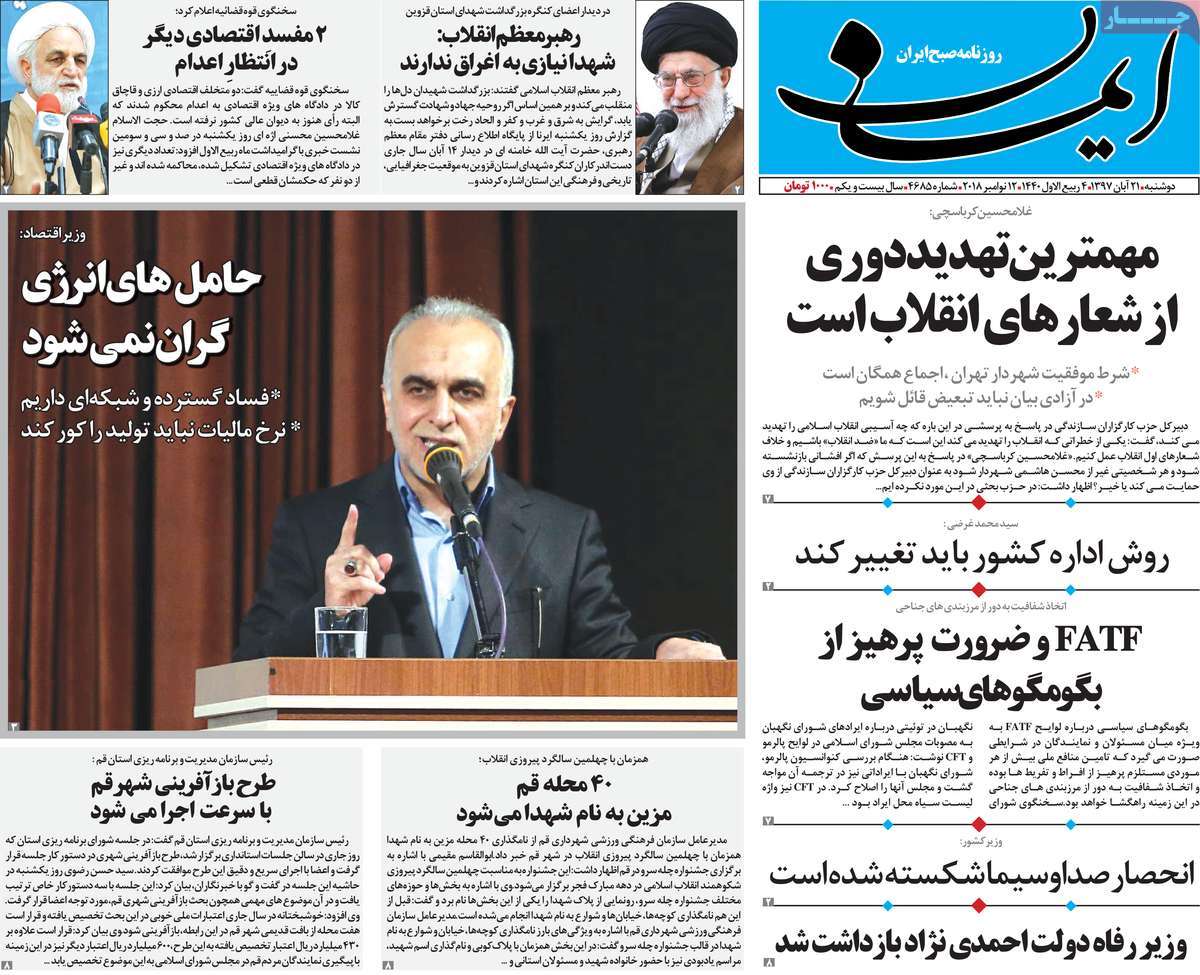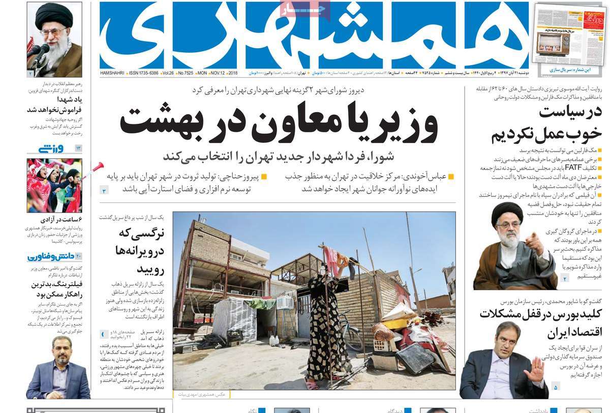 صفحه اول روزنامه های کشوری و استانی؛ دوشنبه 21 آبان ماه 1397 /تصاویر