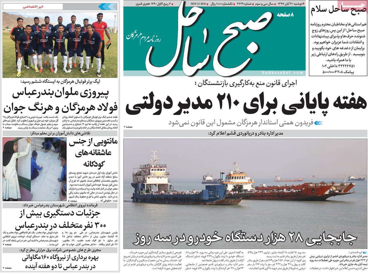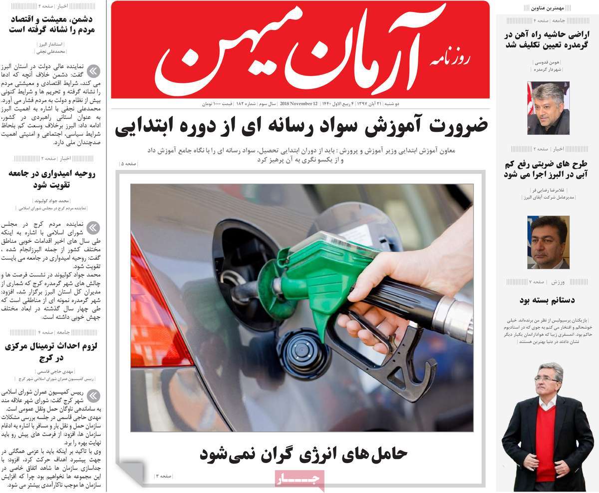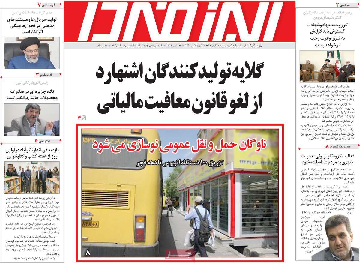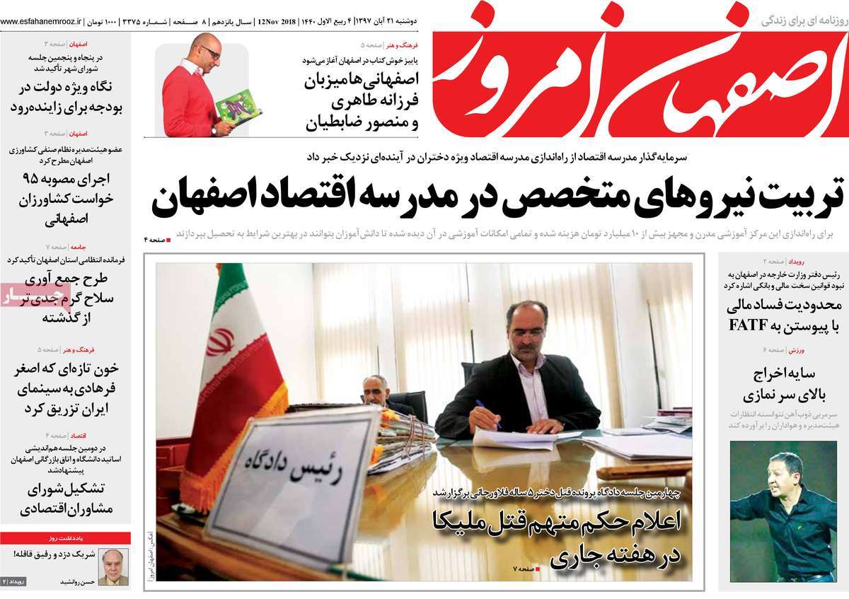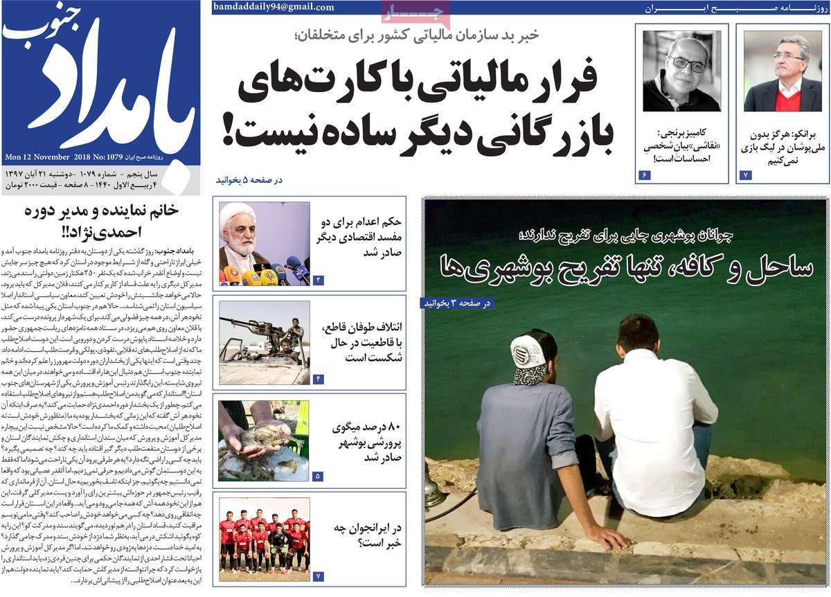 صفحه اول روزنامه های کشوری و استانی؛ دوشنبه 21 آبان ماه 1397 /تصاویر