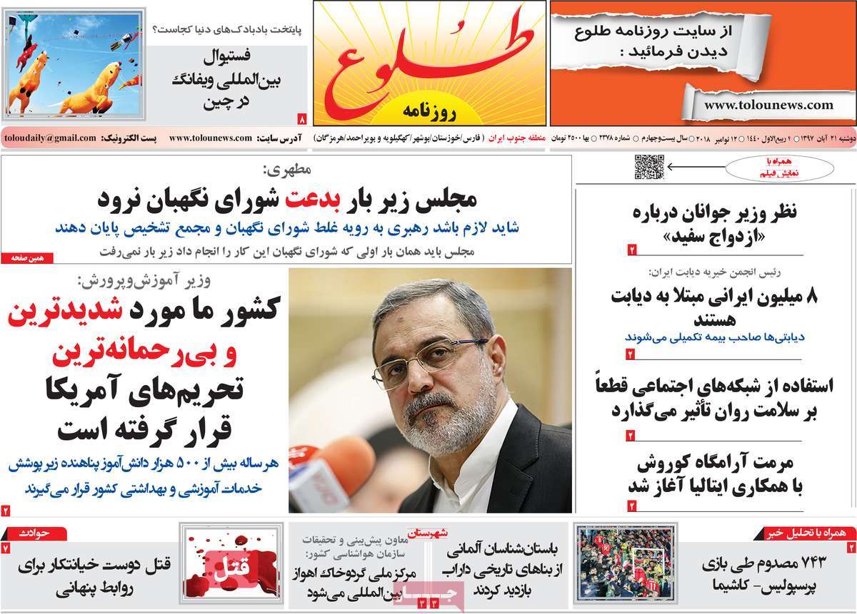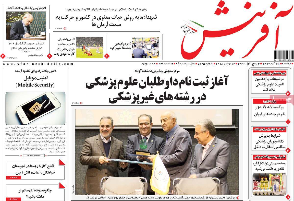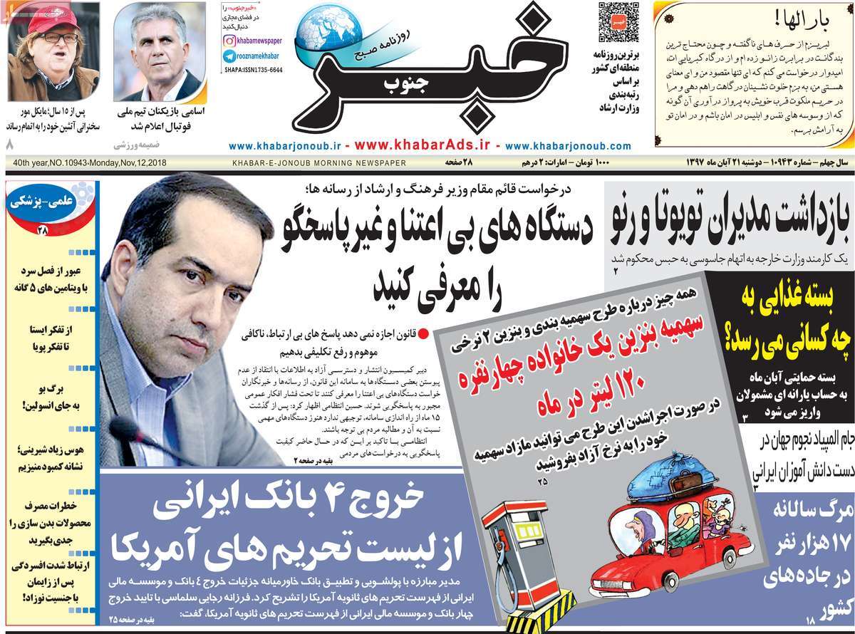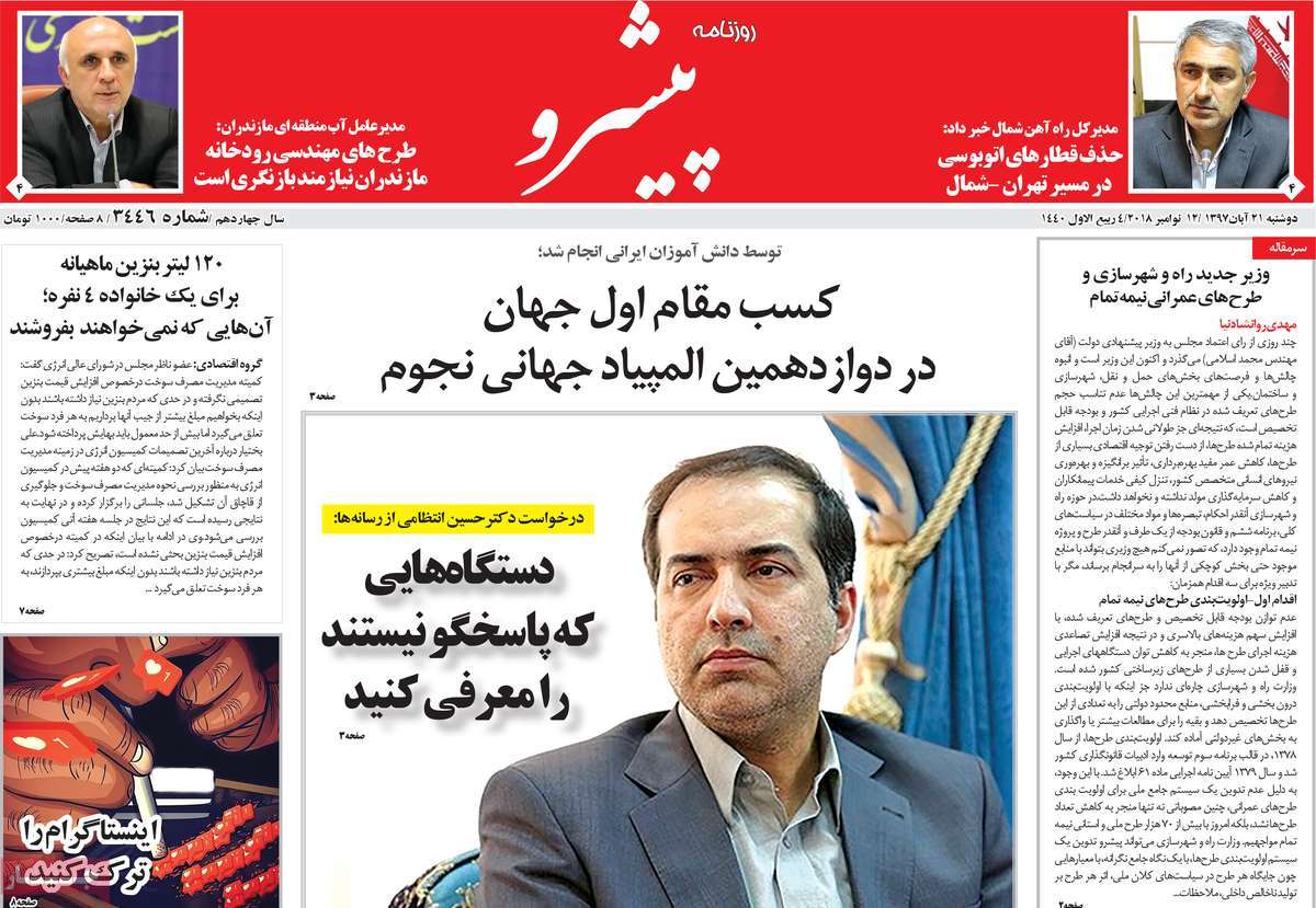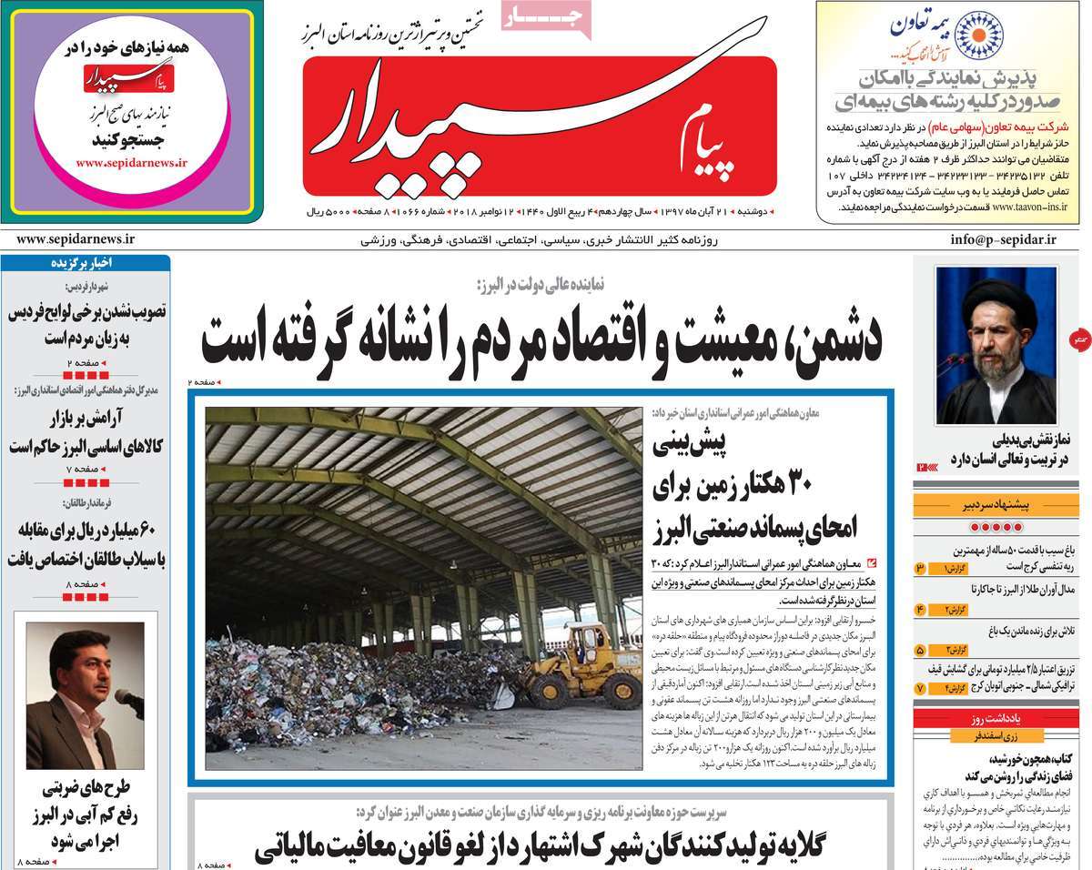 صفحه اول روزنامه های کشوری و استانی؛ دوشنبه 21 آبان ماه 1397 /تصاویر