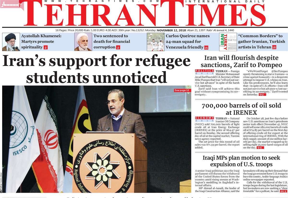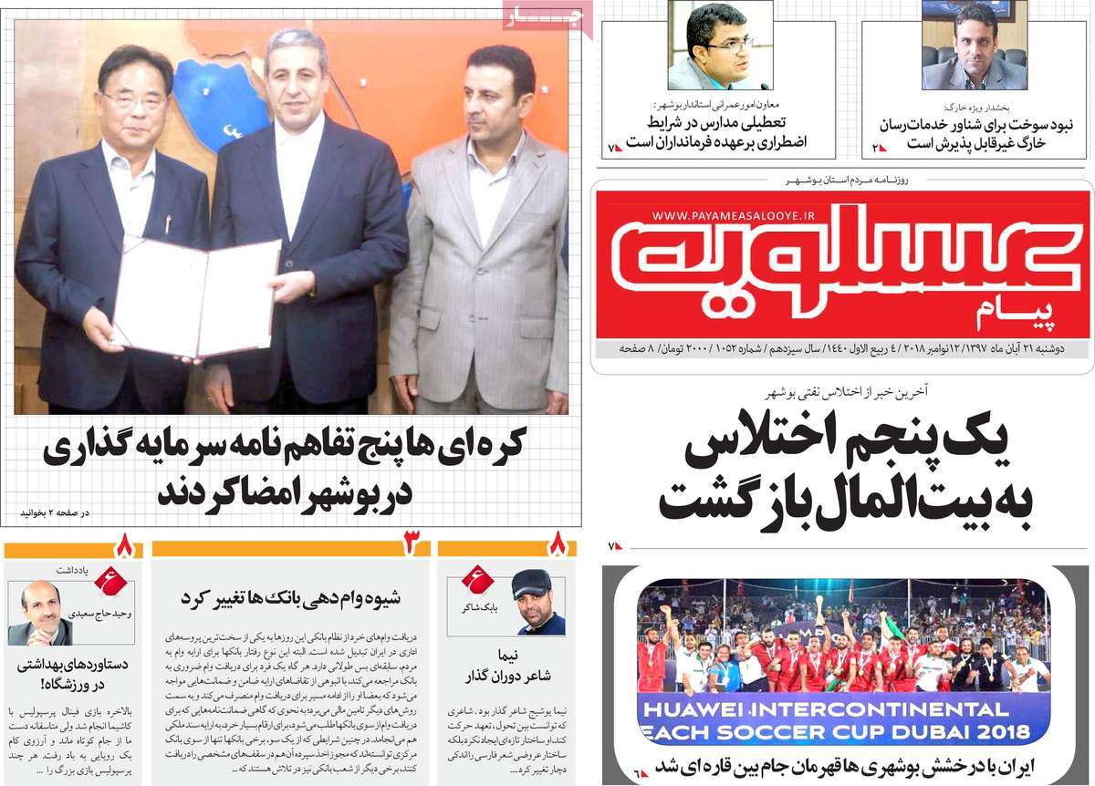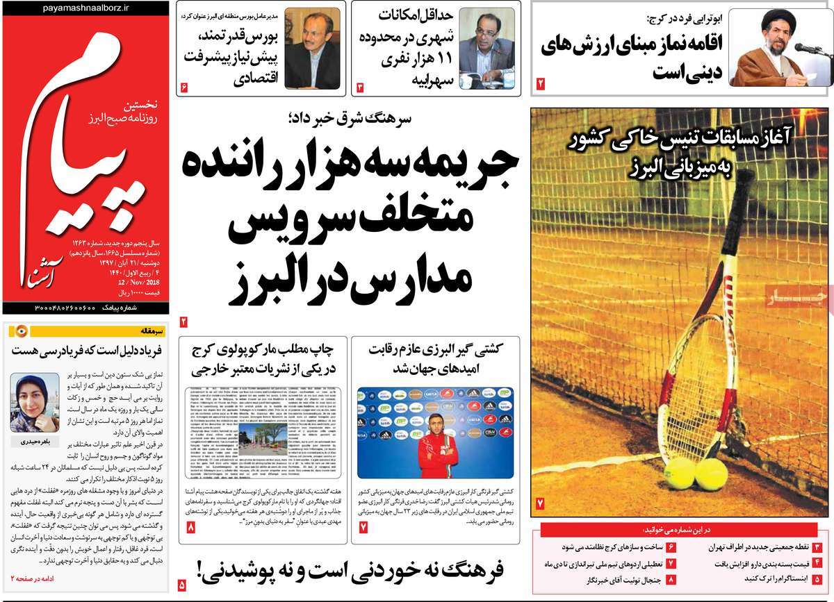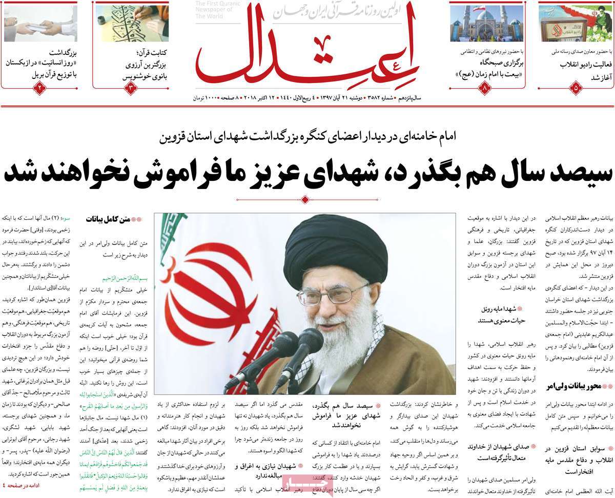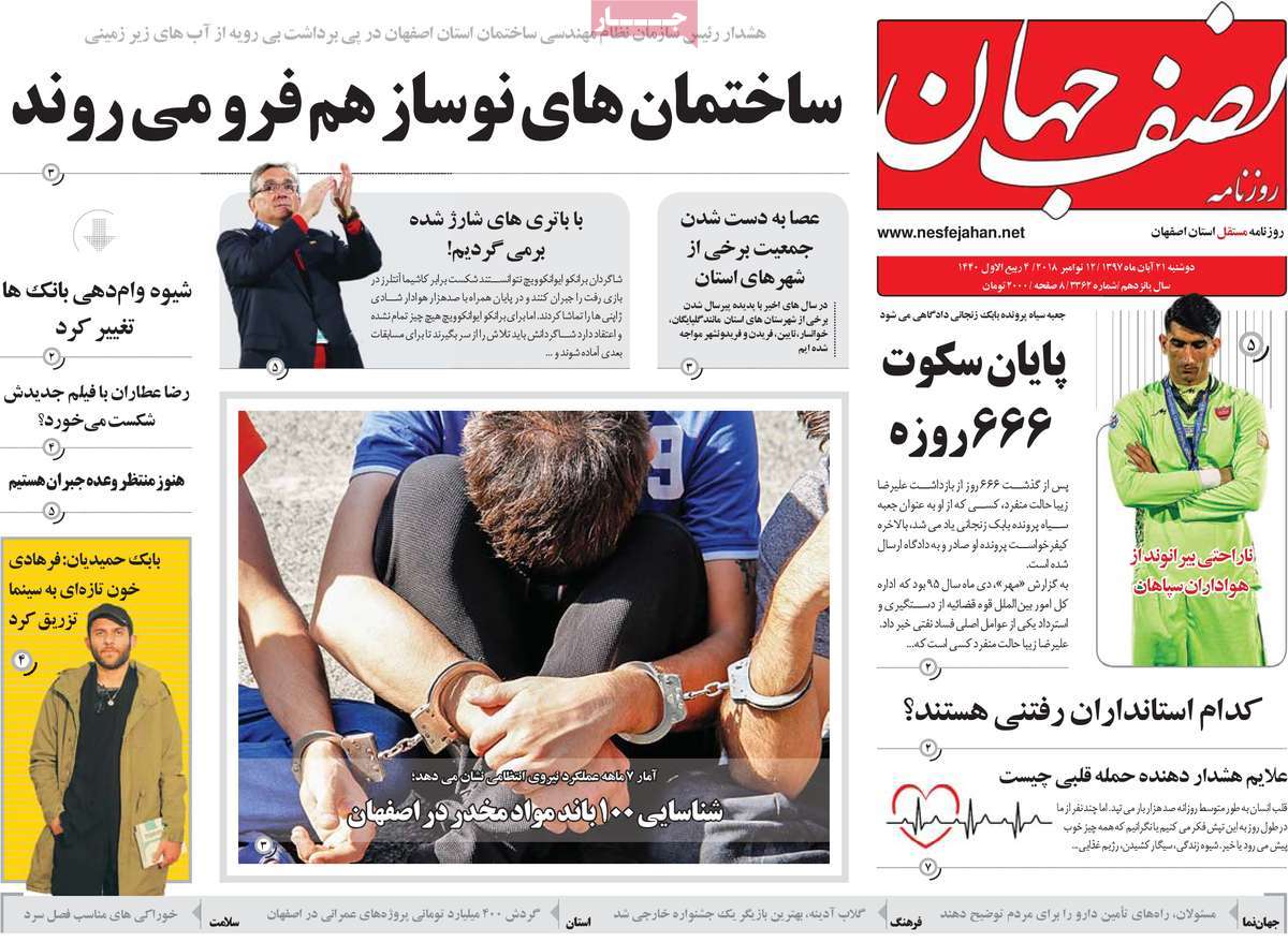 صفحه اول روزنامه های کشوری و استانی؛ دوشنبه 21 آبان ماه 1397 /تصاویر